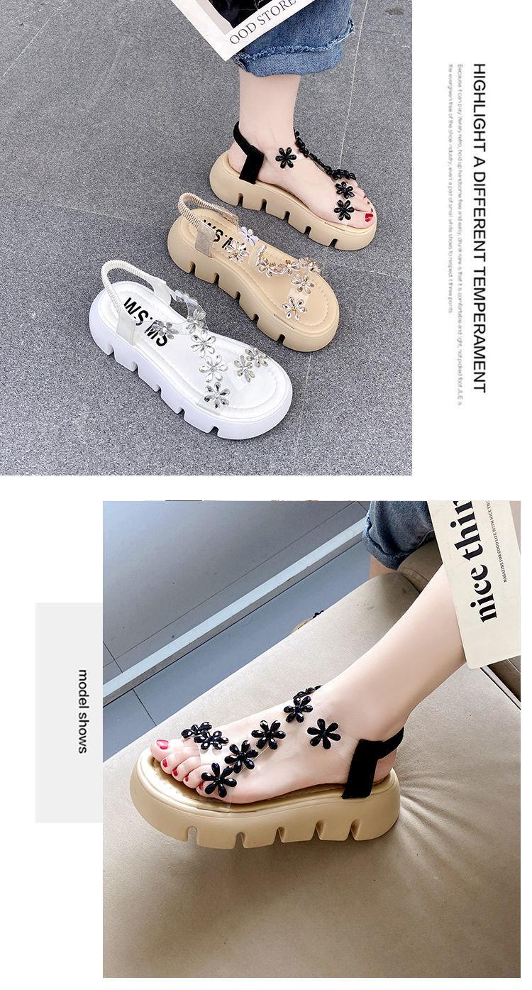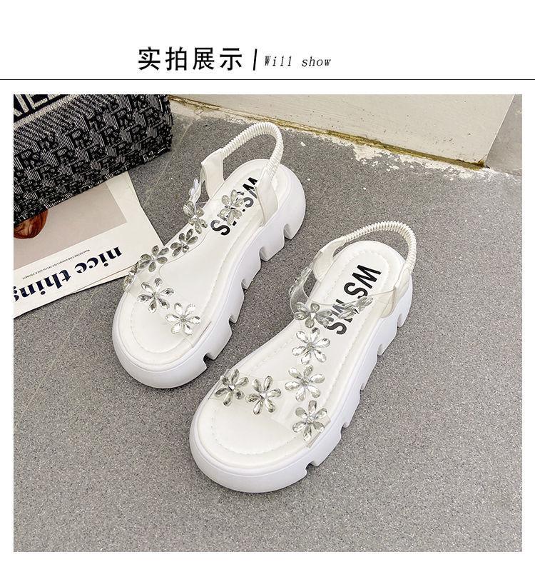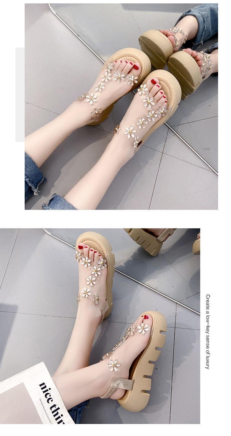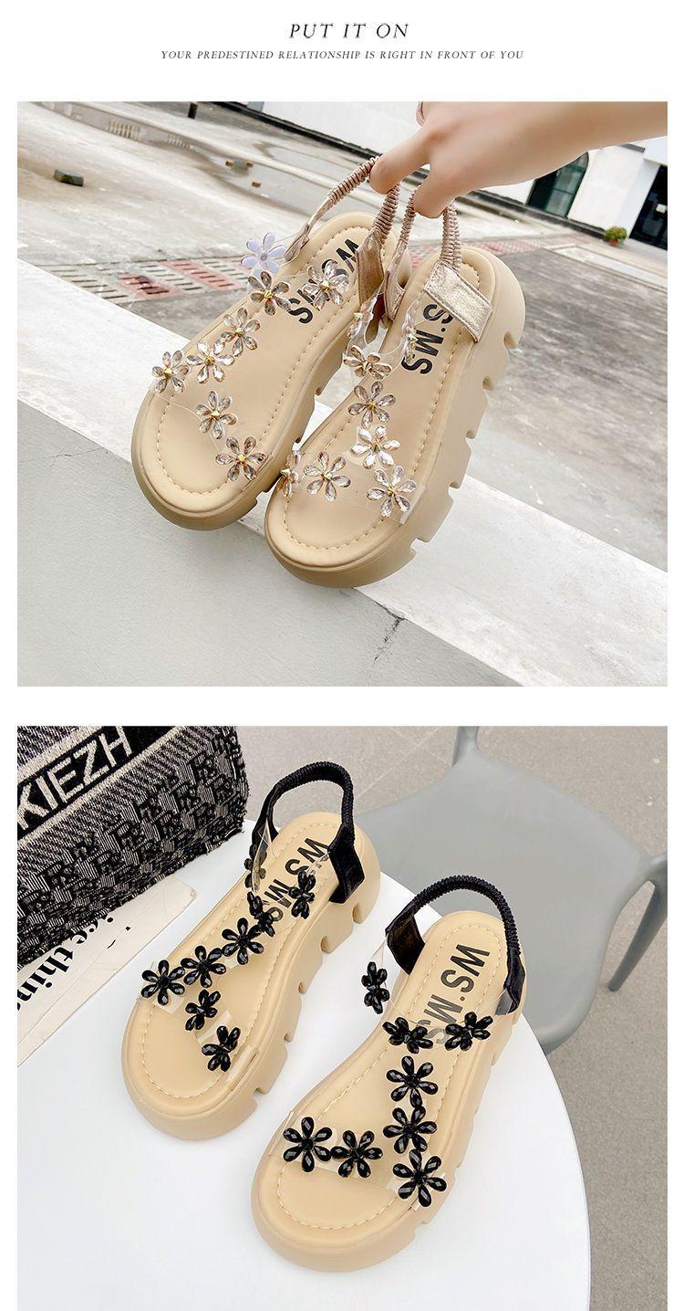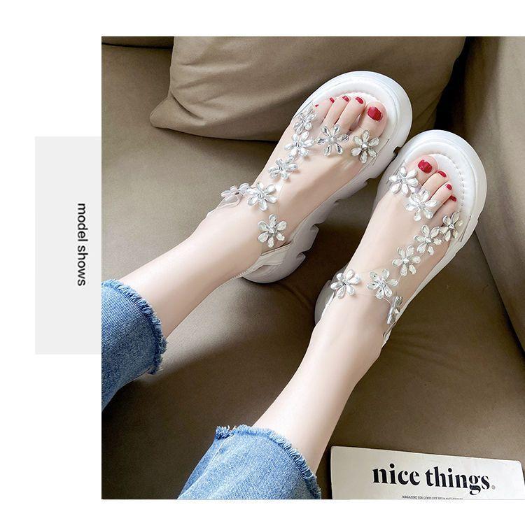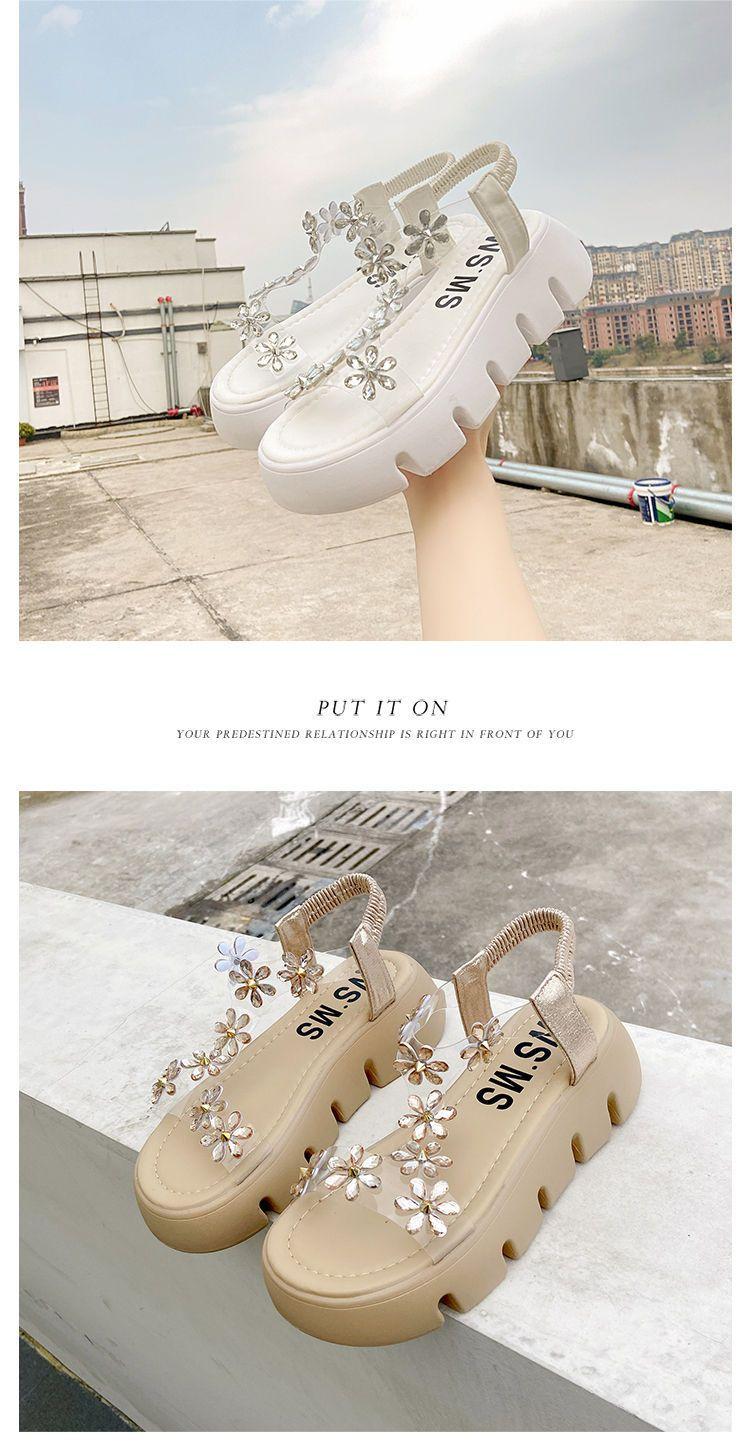Compra Sandalias de plataforma para mujer, novedad de verano 2024, estilo coreano, adelgazantes, combinables, estilo hada, playa, tacón medio, flores de diamantes de imitación, moda al por mayor en Joom.pro