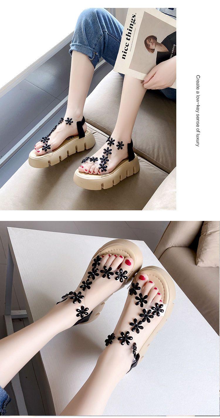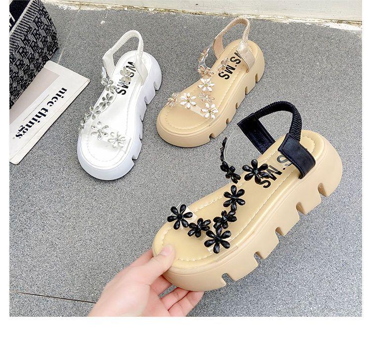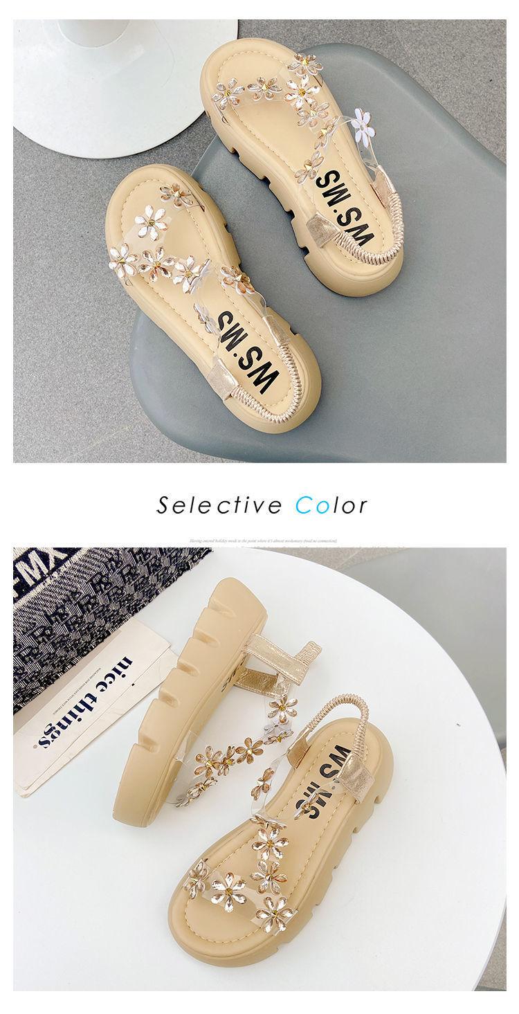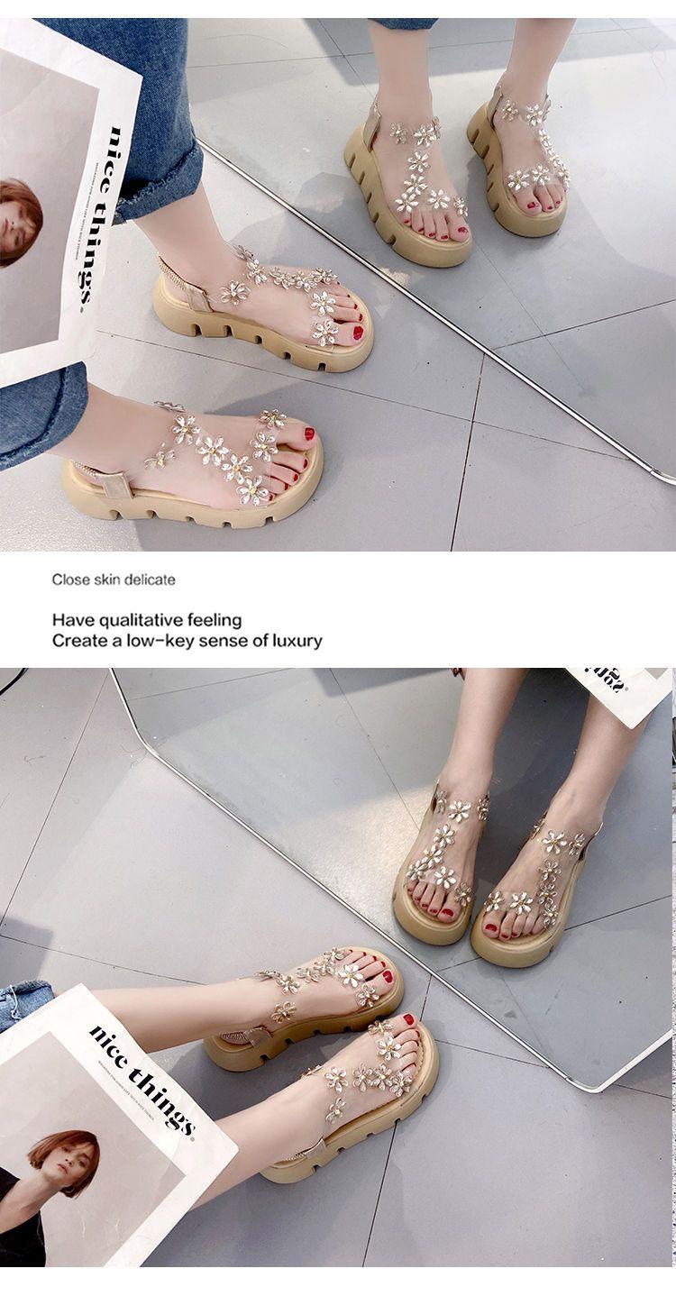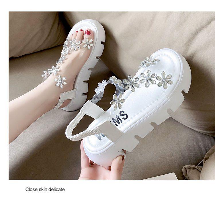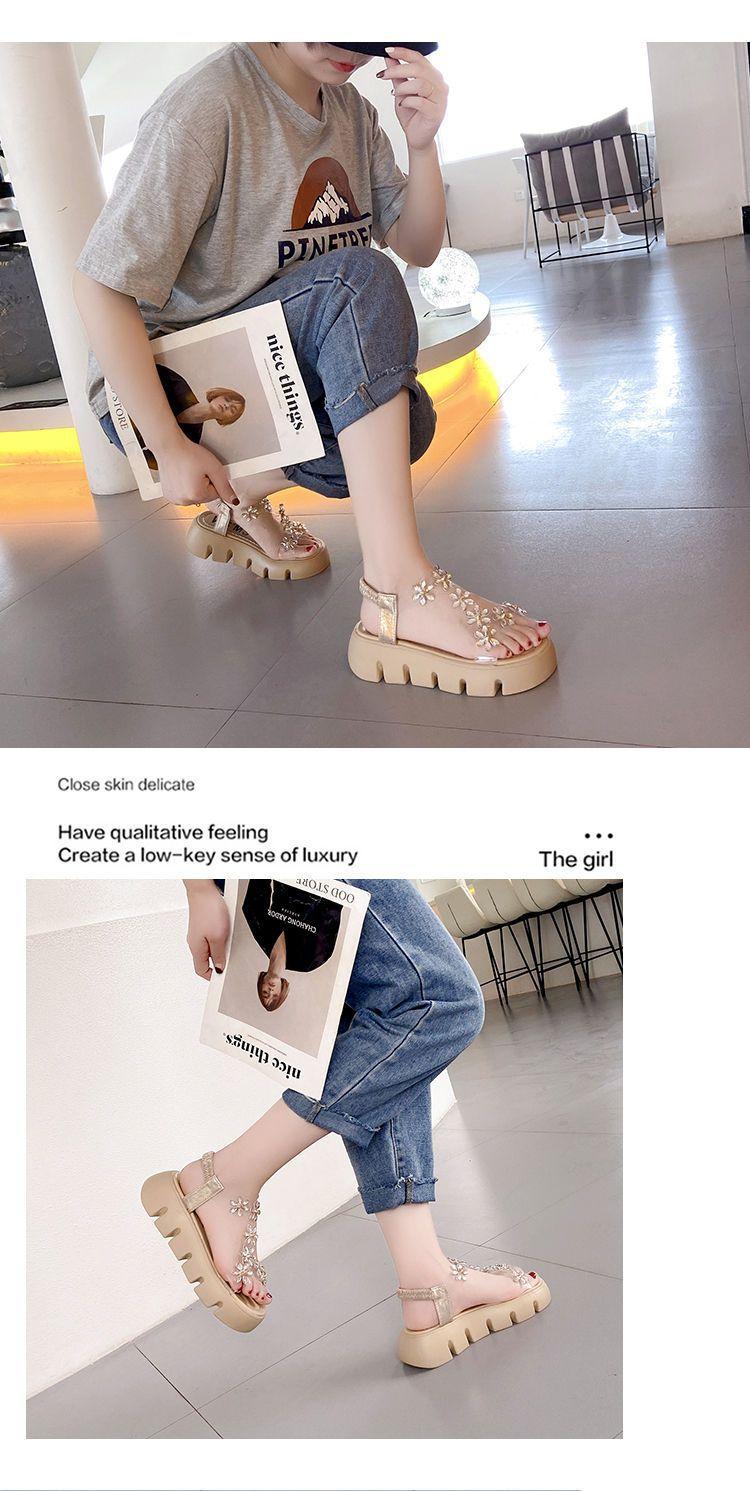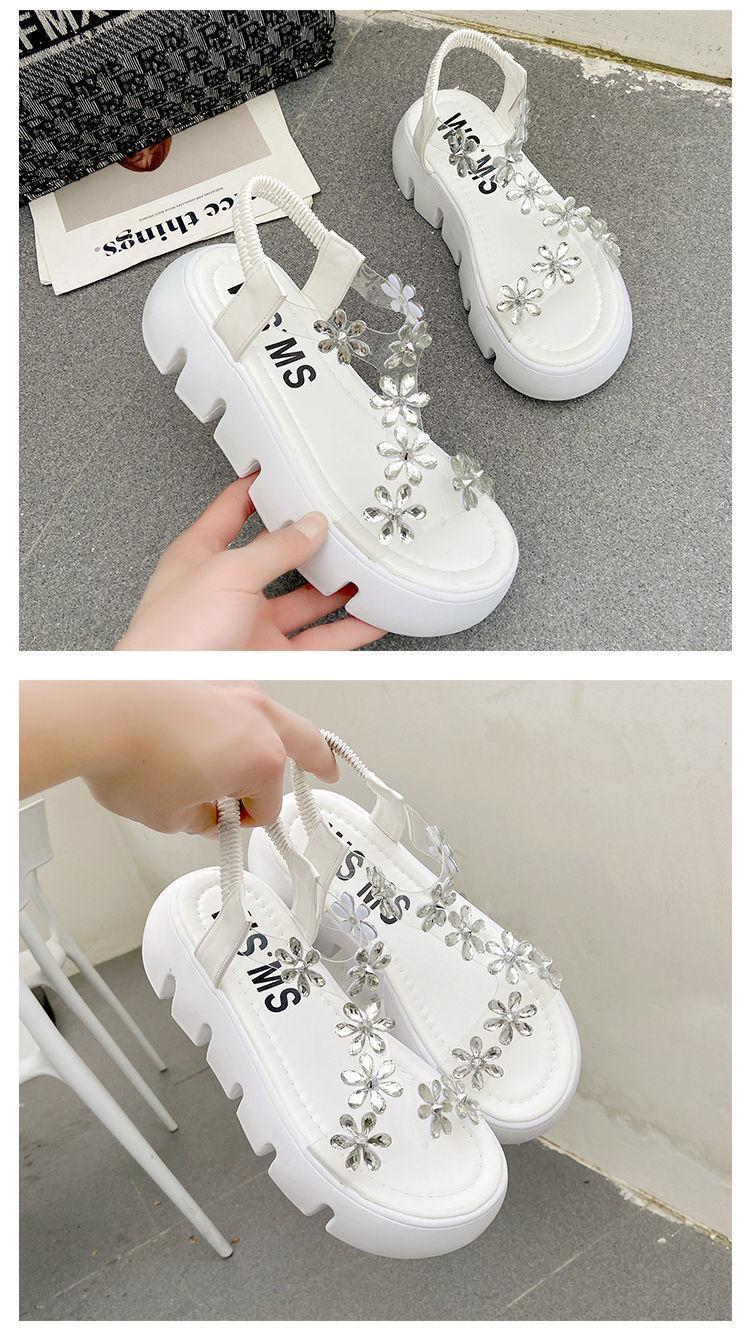 Compra Sandalias de plataforma para mujer, novedad de verano 2024, estilo coreano, adelgazantes, combinables, estilo hada, playa, tacón medio, flores de diamantes de imitación, moda al por mayor en Joom.pro
