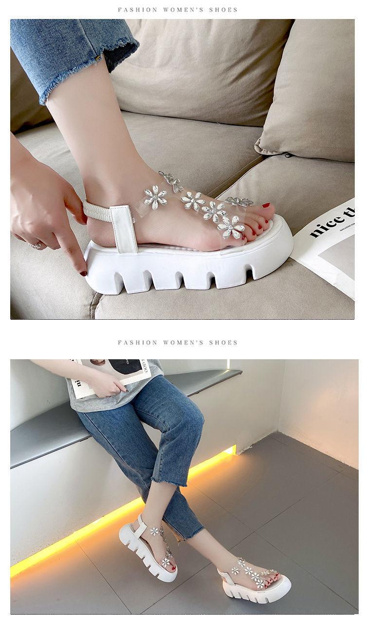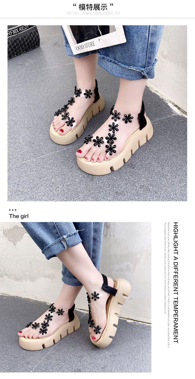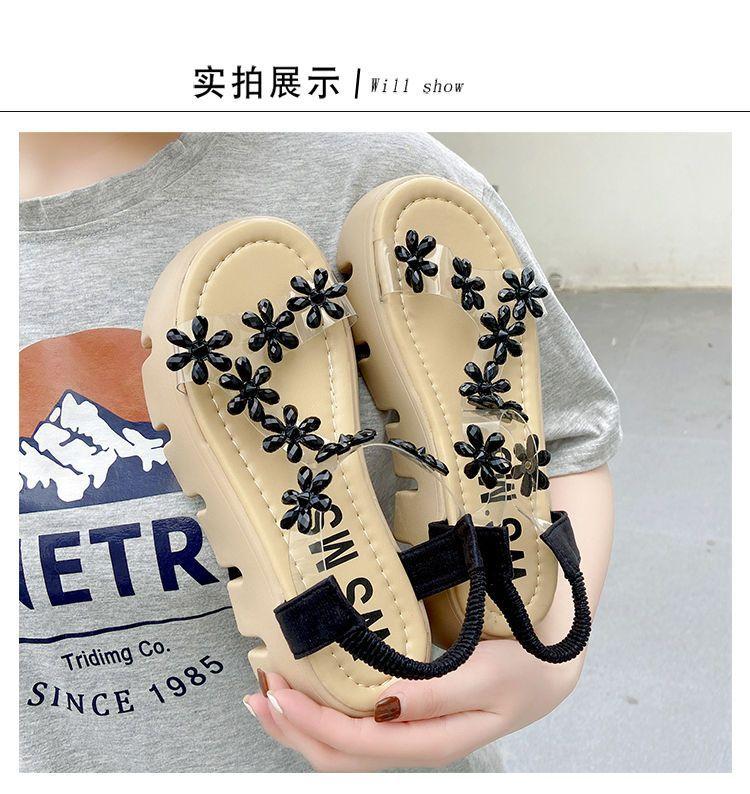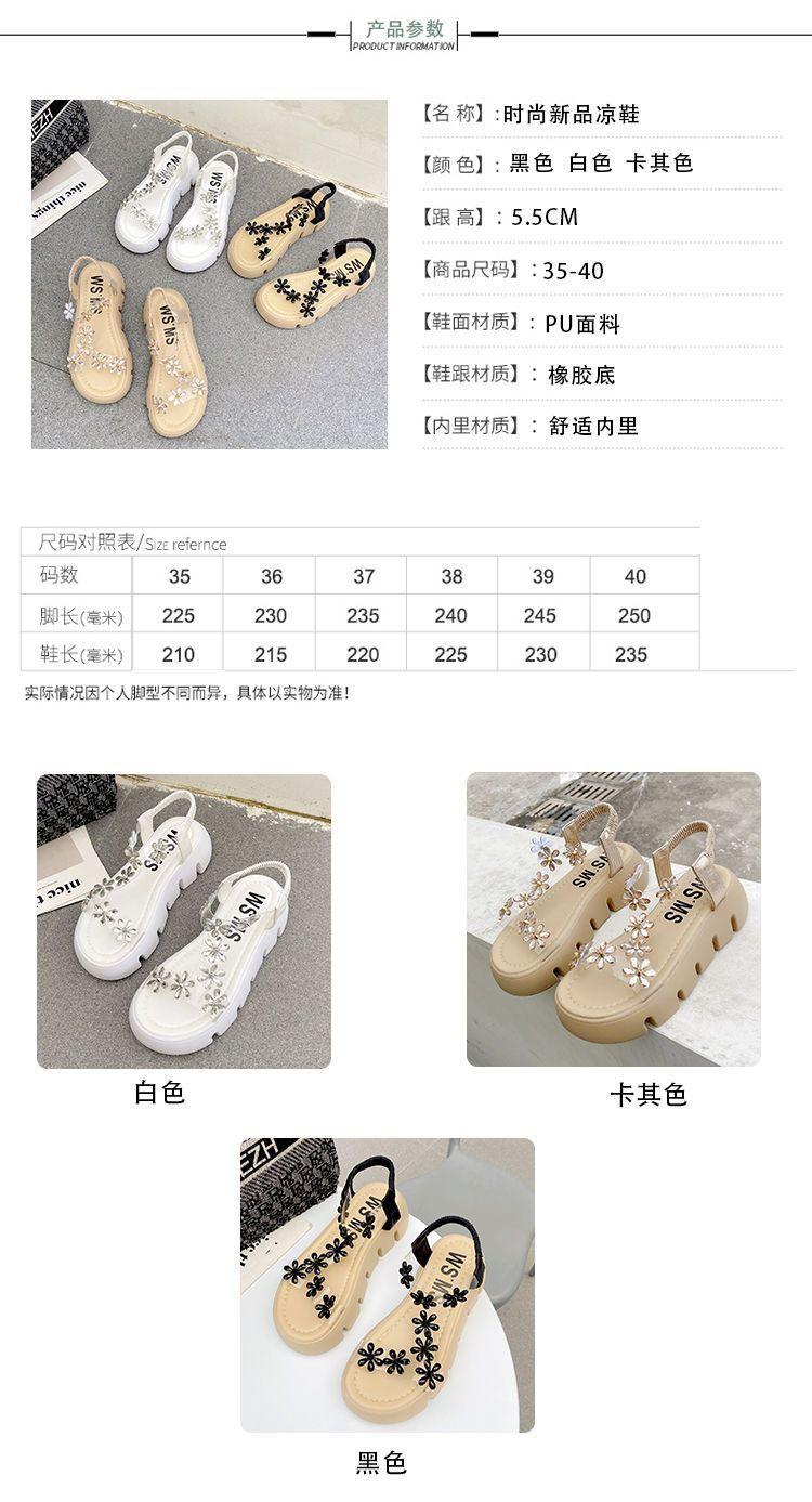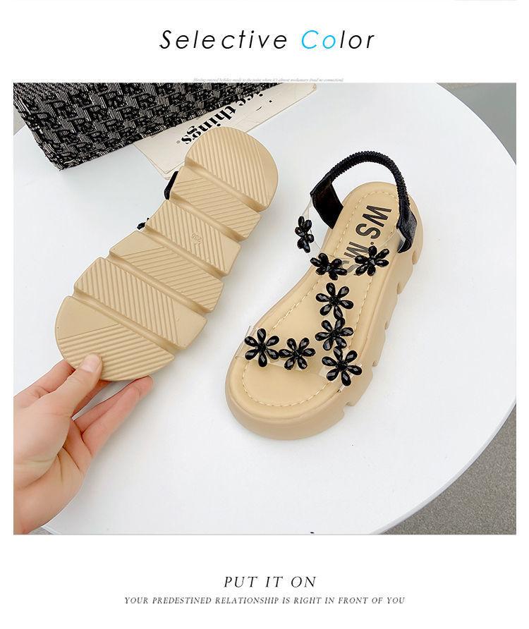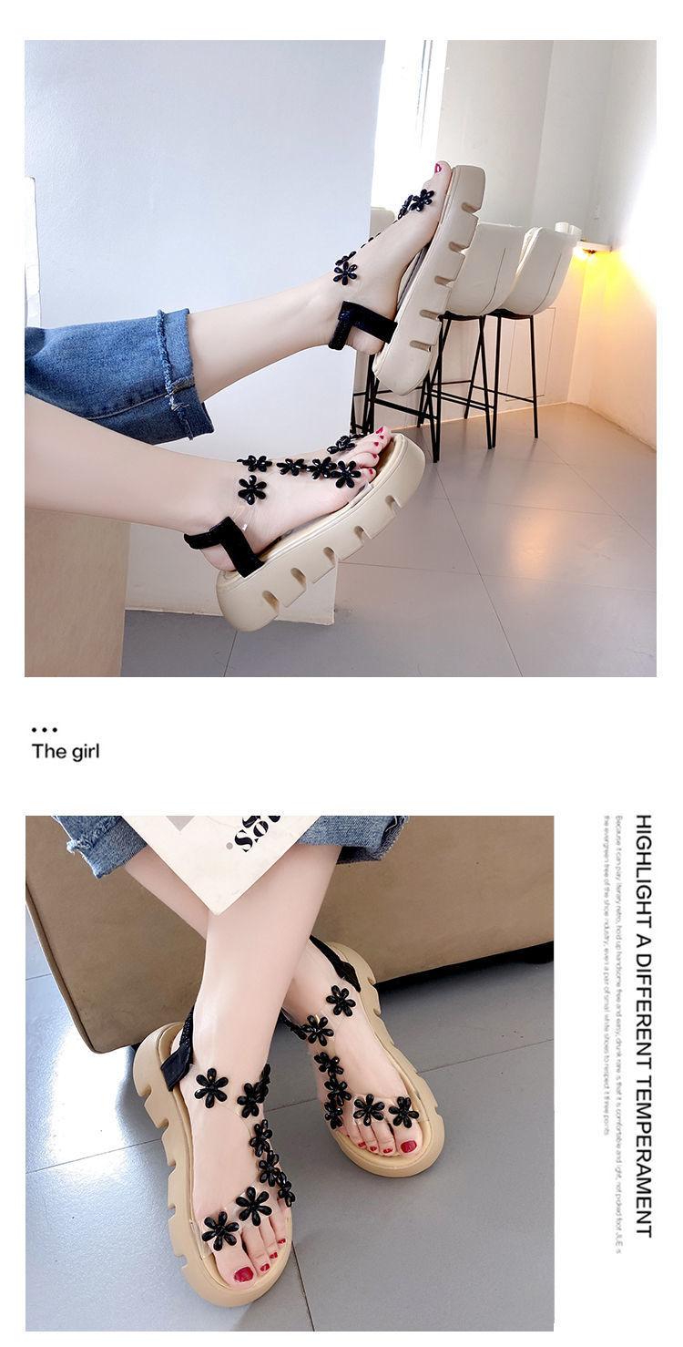 Compra Sandalias de plataforma para mujer, novedad de verano 2024, estilo coreano, adelgazantes, combinables, estilo hada, playa, tacón medio, flores de diamantes de imitación, moda al por mayor en Joom.pro