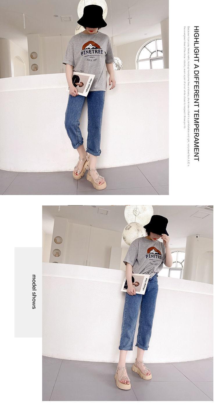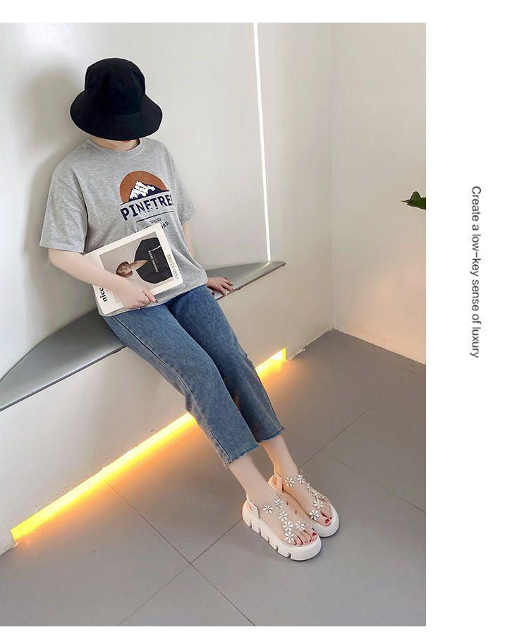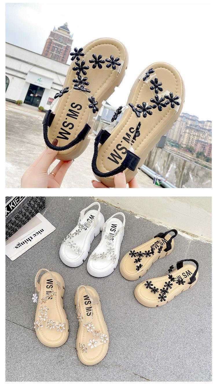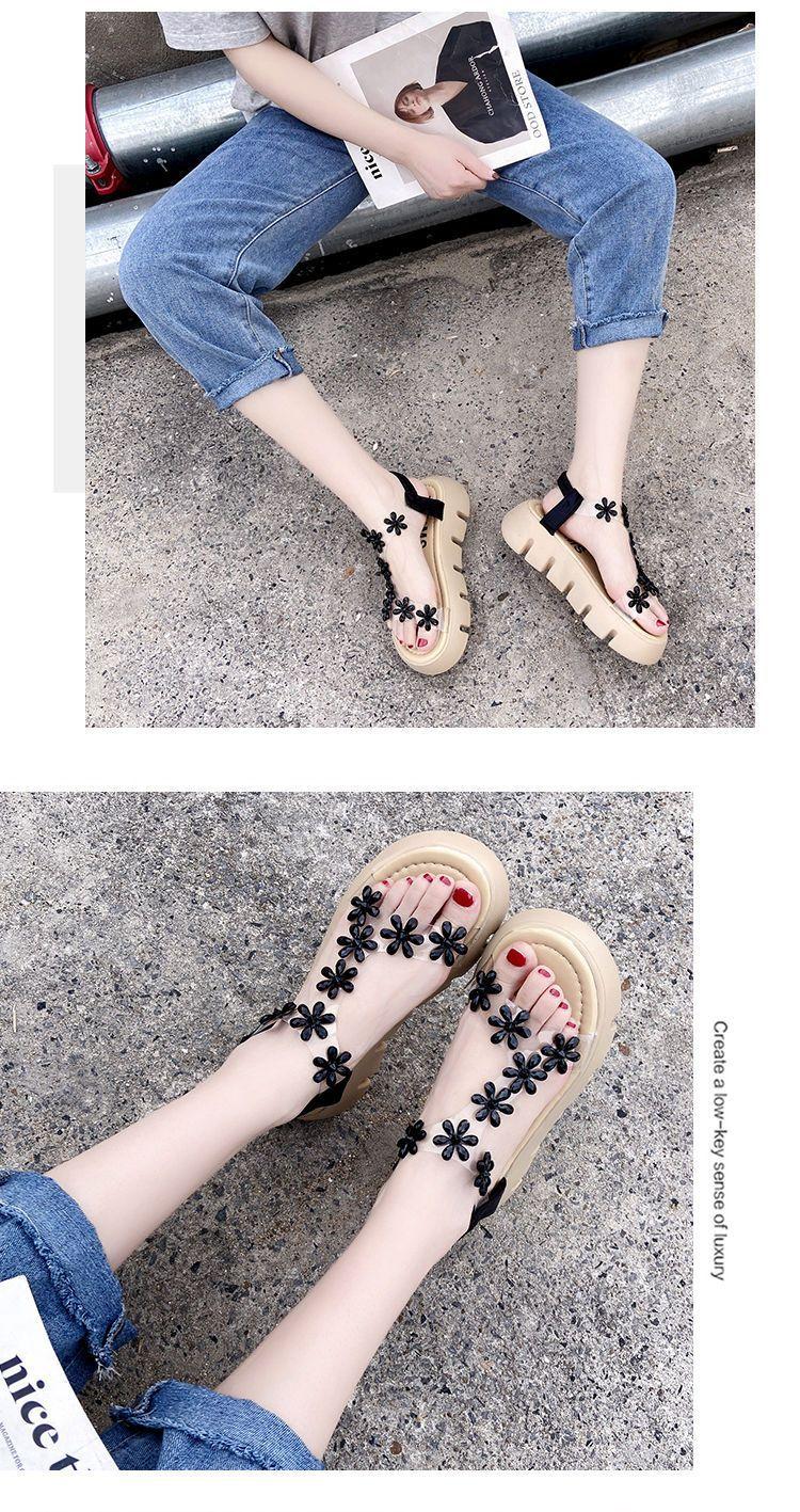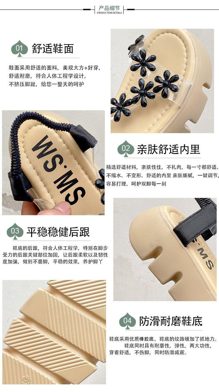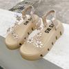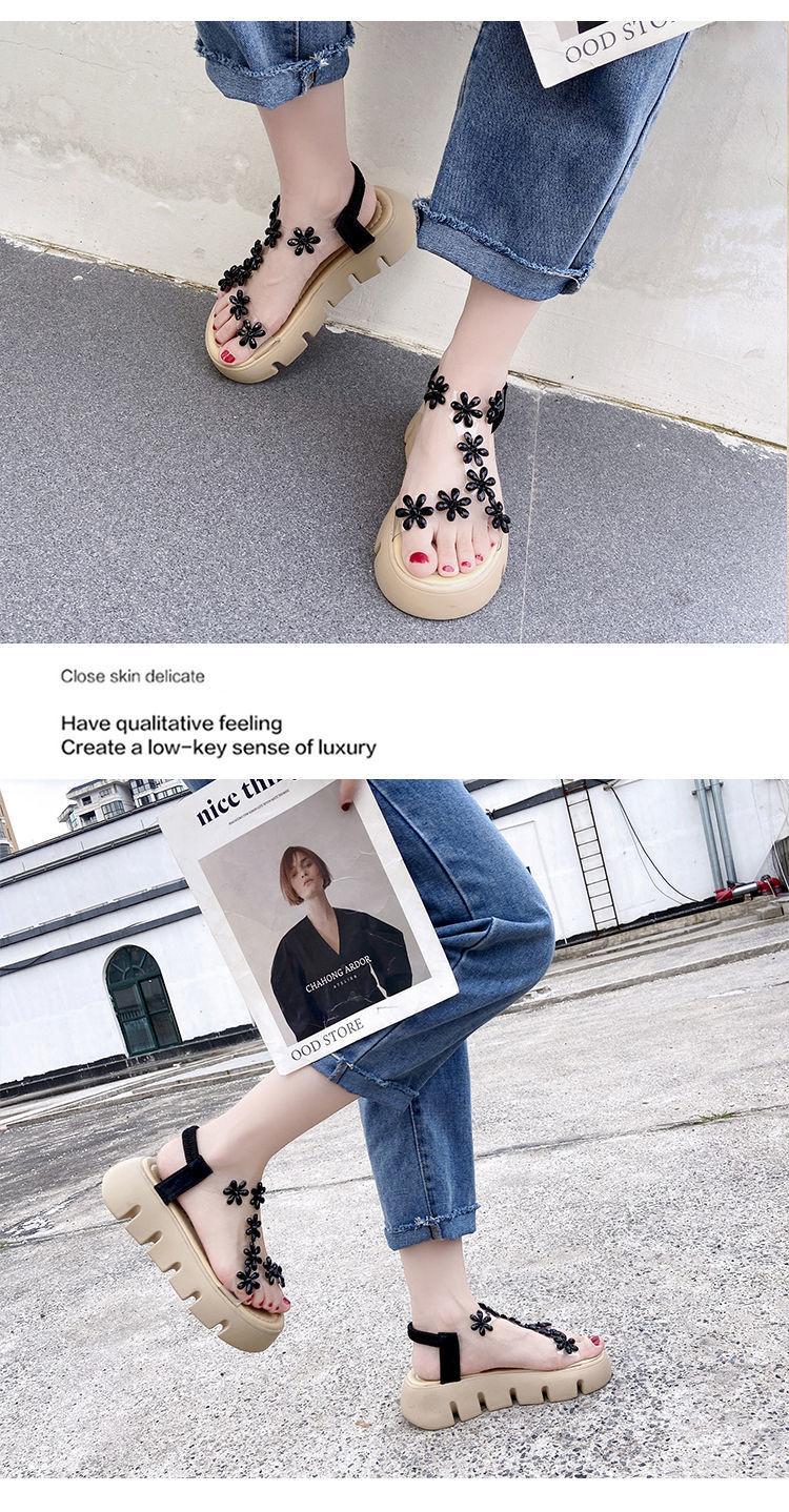 Compra Sandalias de plataforma para mujer, novedad de verano 2024, estilo coreano, adelgazantes, combinables, estilo hada, playa, tacón medio, flores de diamantes de imitación, moda al por mayor en Joom.pro