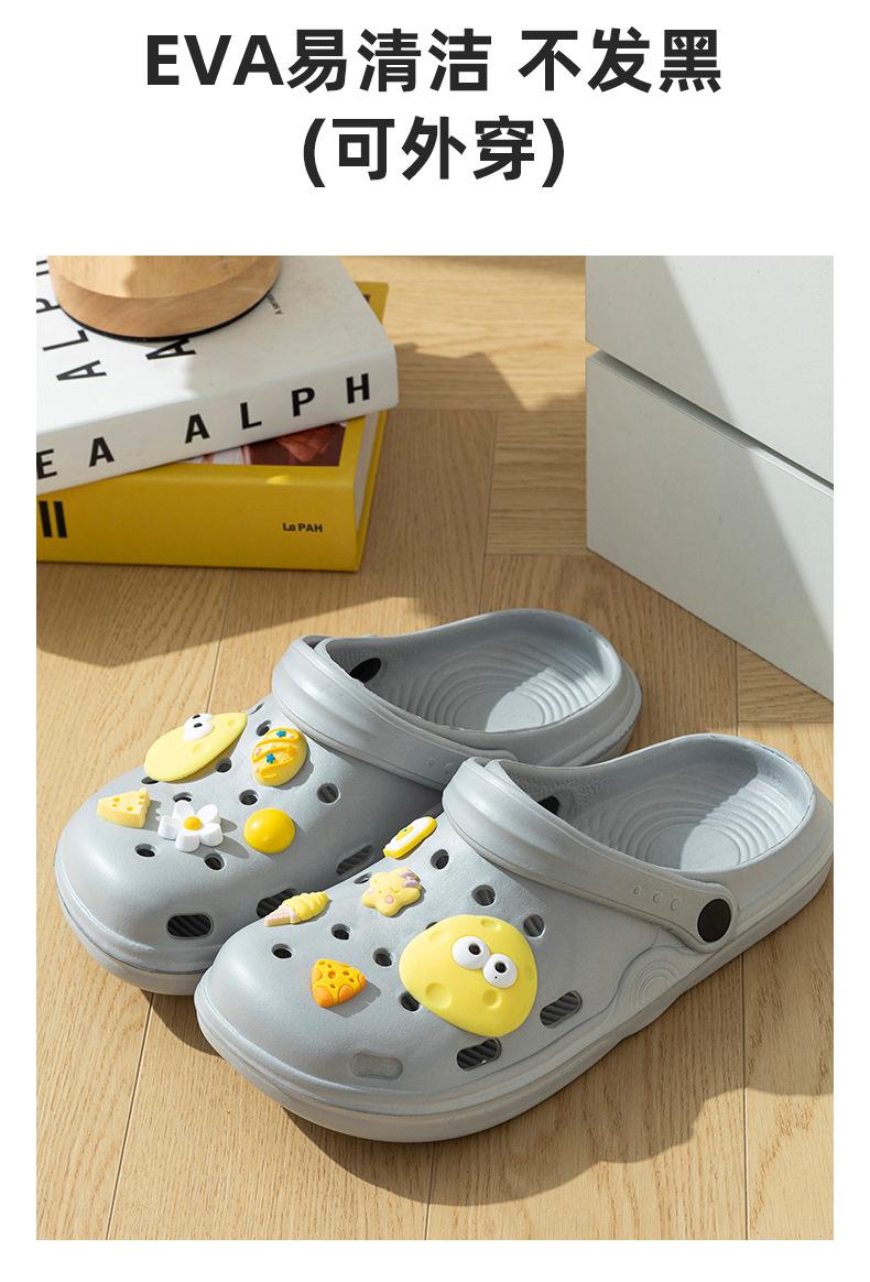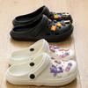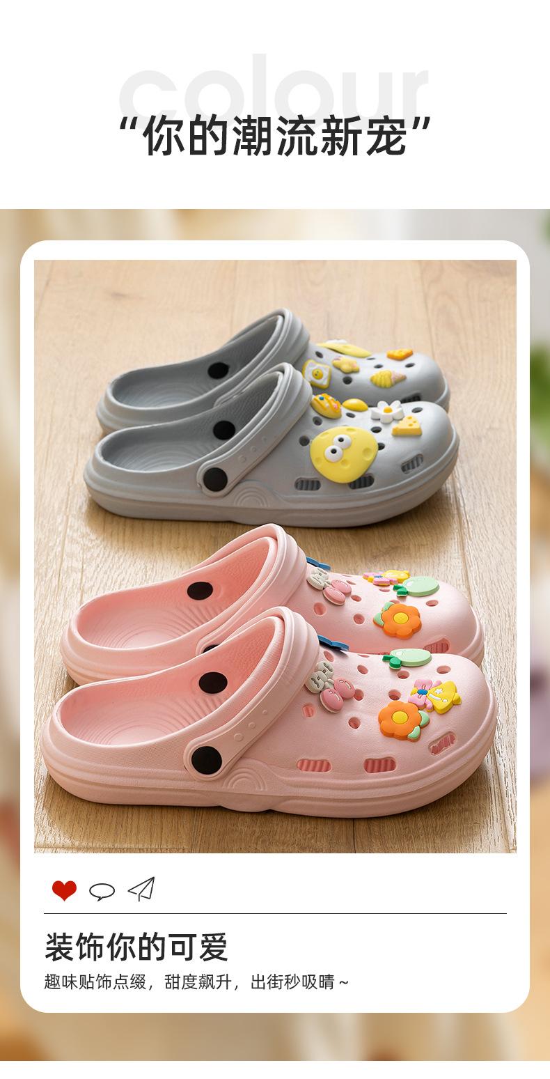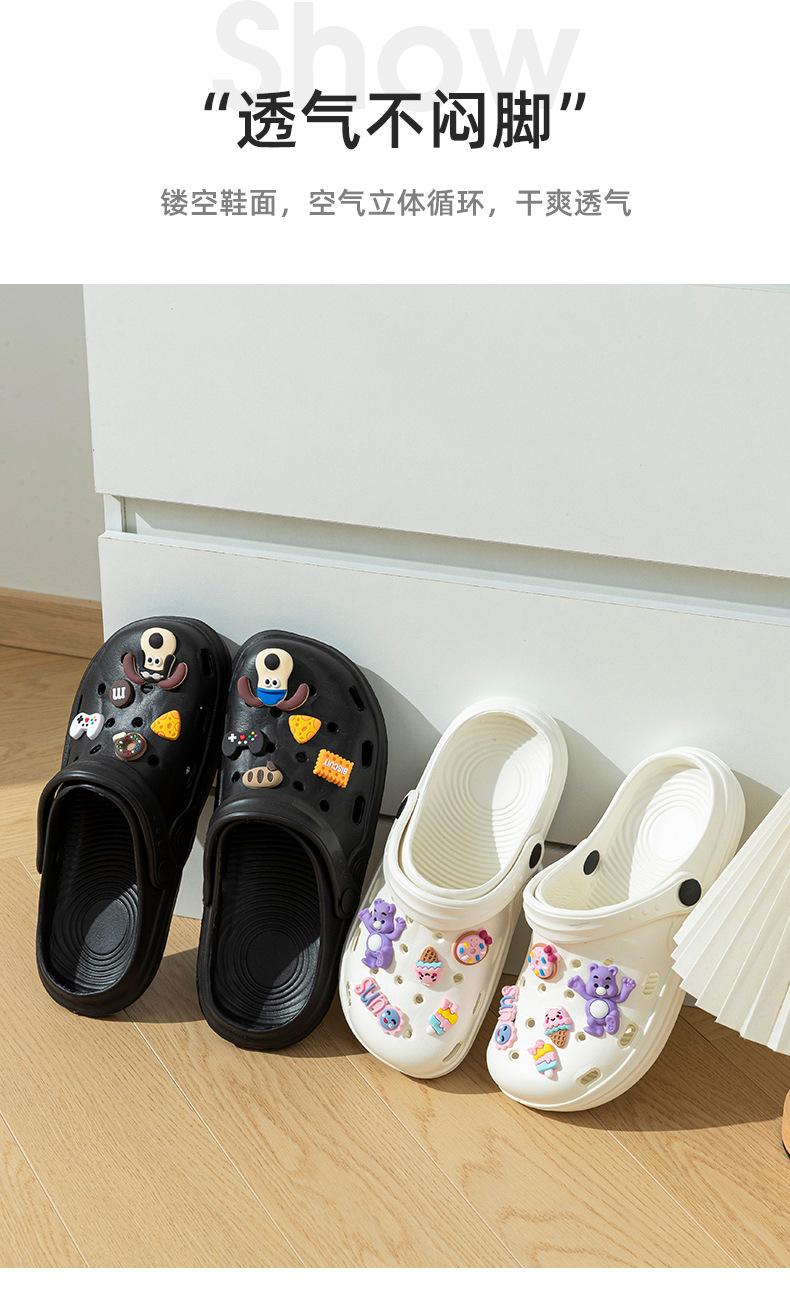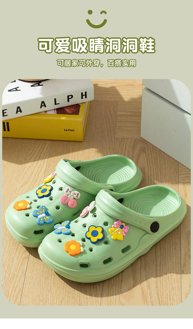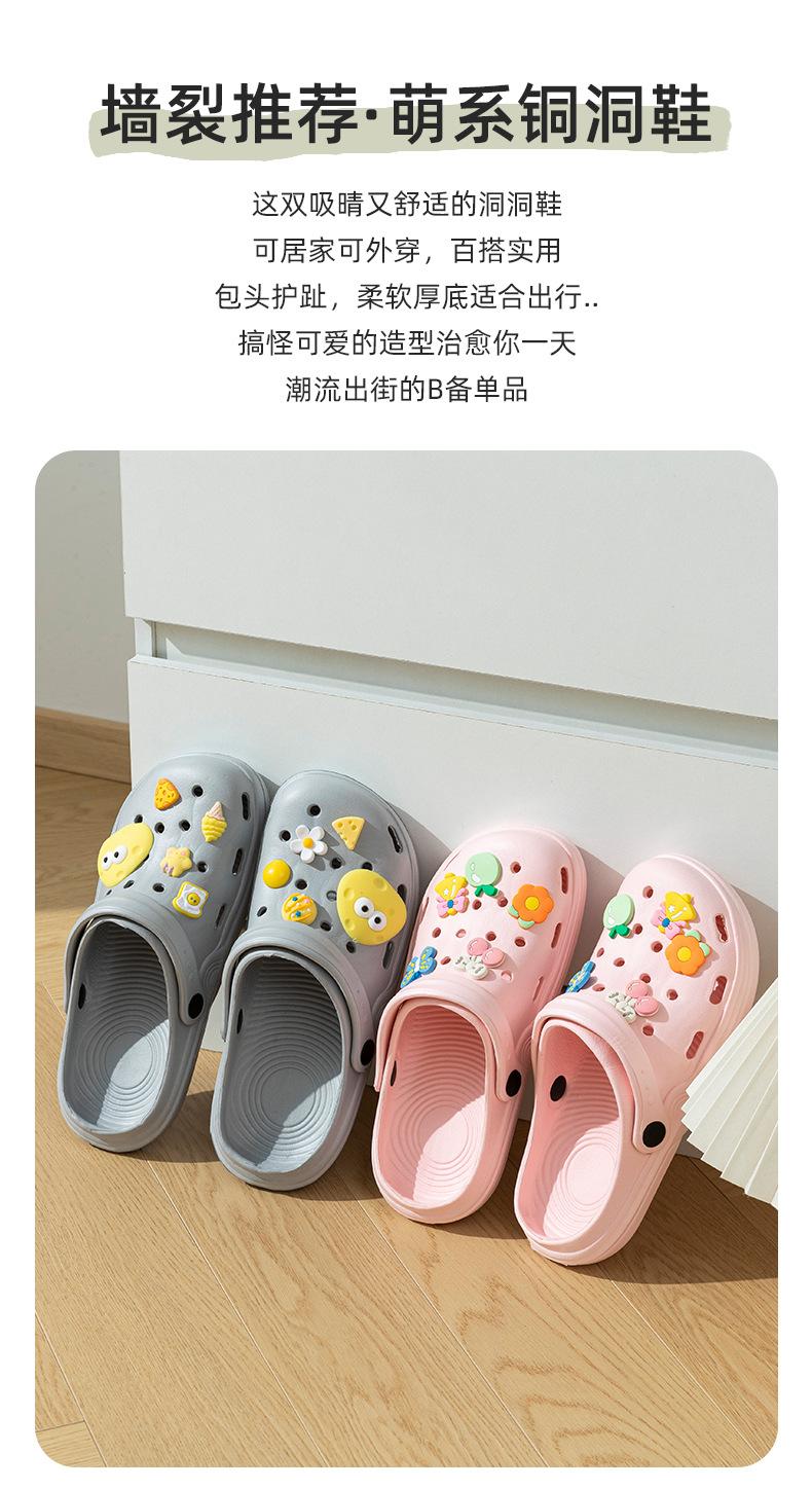 Zapatos de agujeros para mujer verano suela gruesa 2024 nuevo estilo con accesorios celebridad de internet playa sandalias de punta cerrada tacón alto plano