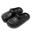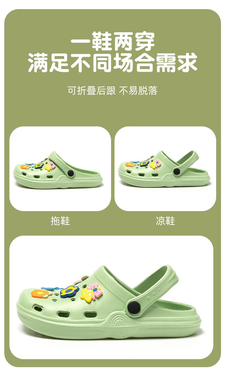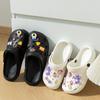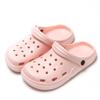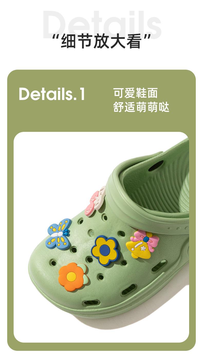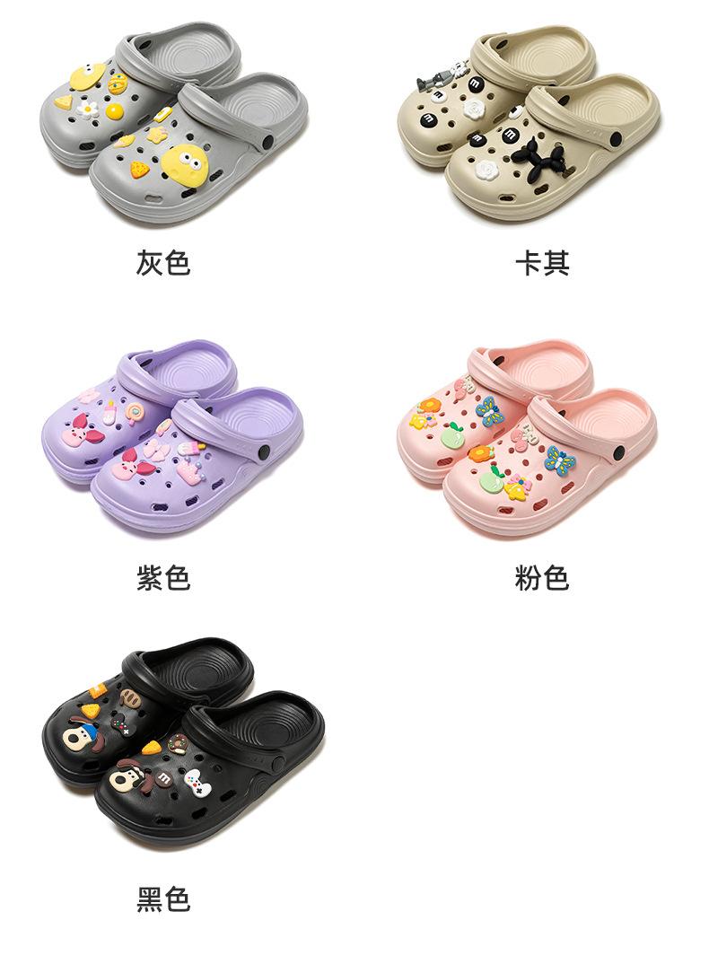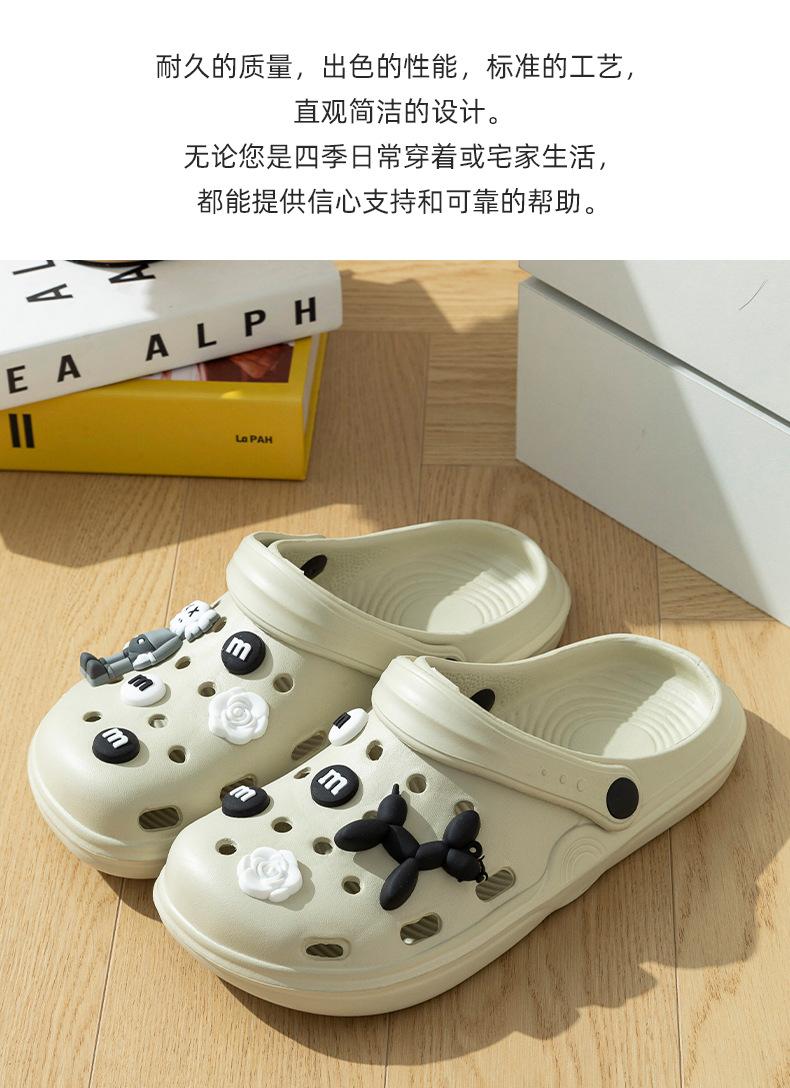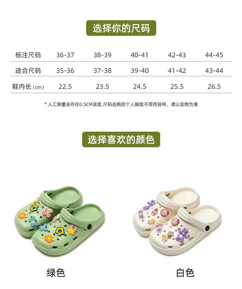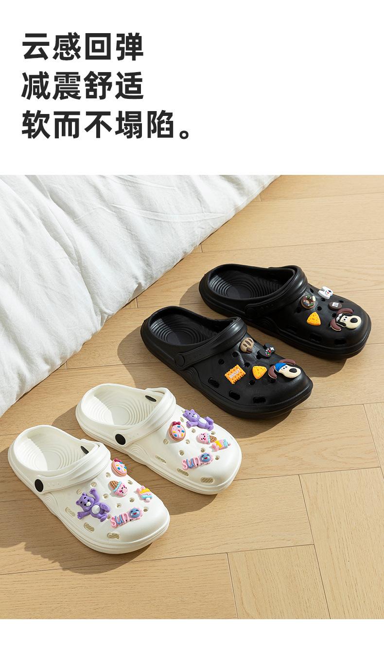 Zapatos de agujeros para mujer verano suela gruesa 2024 nuevo estilo con accesorios celebridad de internet playa sandalias de punta cerrada tacón alto plano