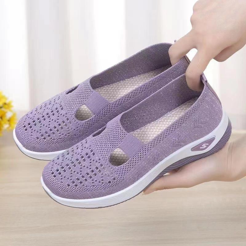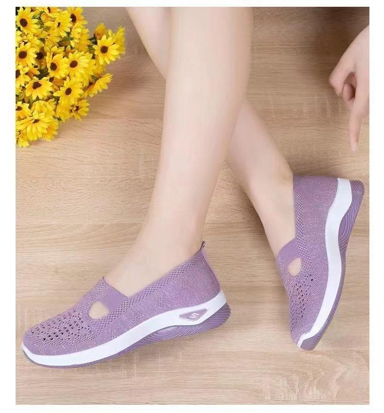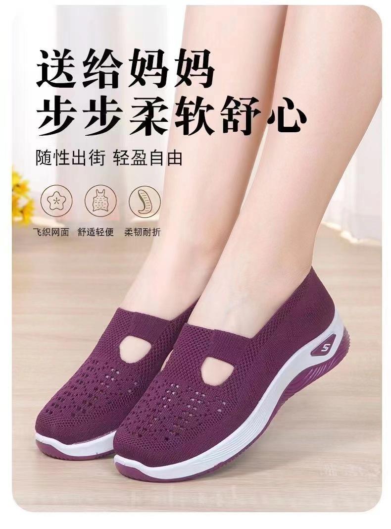 Nuevos zapatos de tela de Beijing de verano para mujer, cómodos, transpirables, de suela suave, sin cordones, informales, planos, de malla hueca