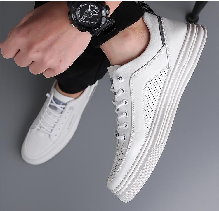 Zapatos Blancos 2025 Verano Nuevo Versátil Moderno Casual Hueco Transpirable Slip-On Suela Blanda Antideslizante Tenis para Hombre