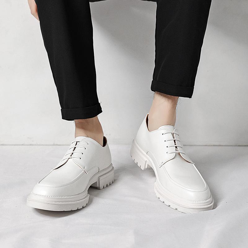 Zapatos Formales de Negocios para Hombre Zapatos de Cuero Británicos Zapatos de Cuero de Suela Gruesa Comercio Exterior Zapatos de Cuero Blanco con Cordones Zapatos de Boda para el Novio