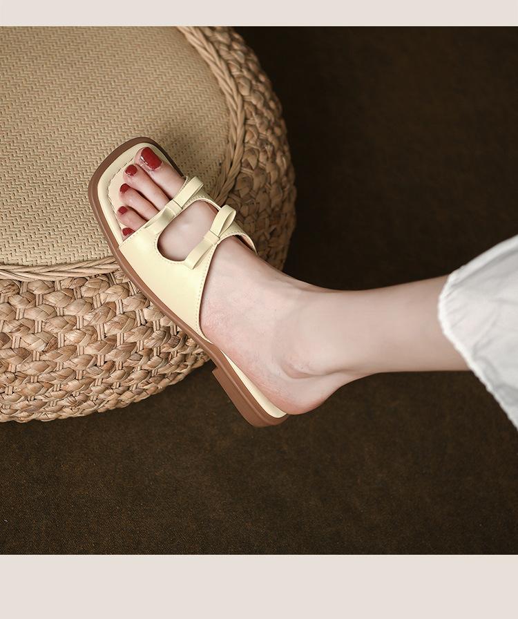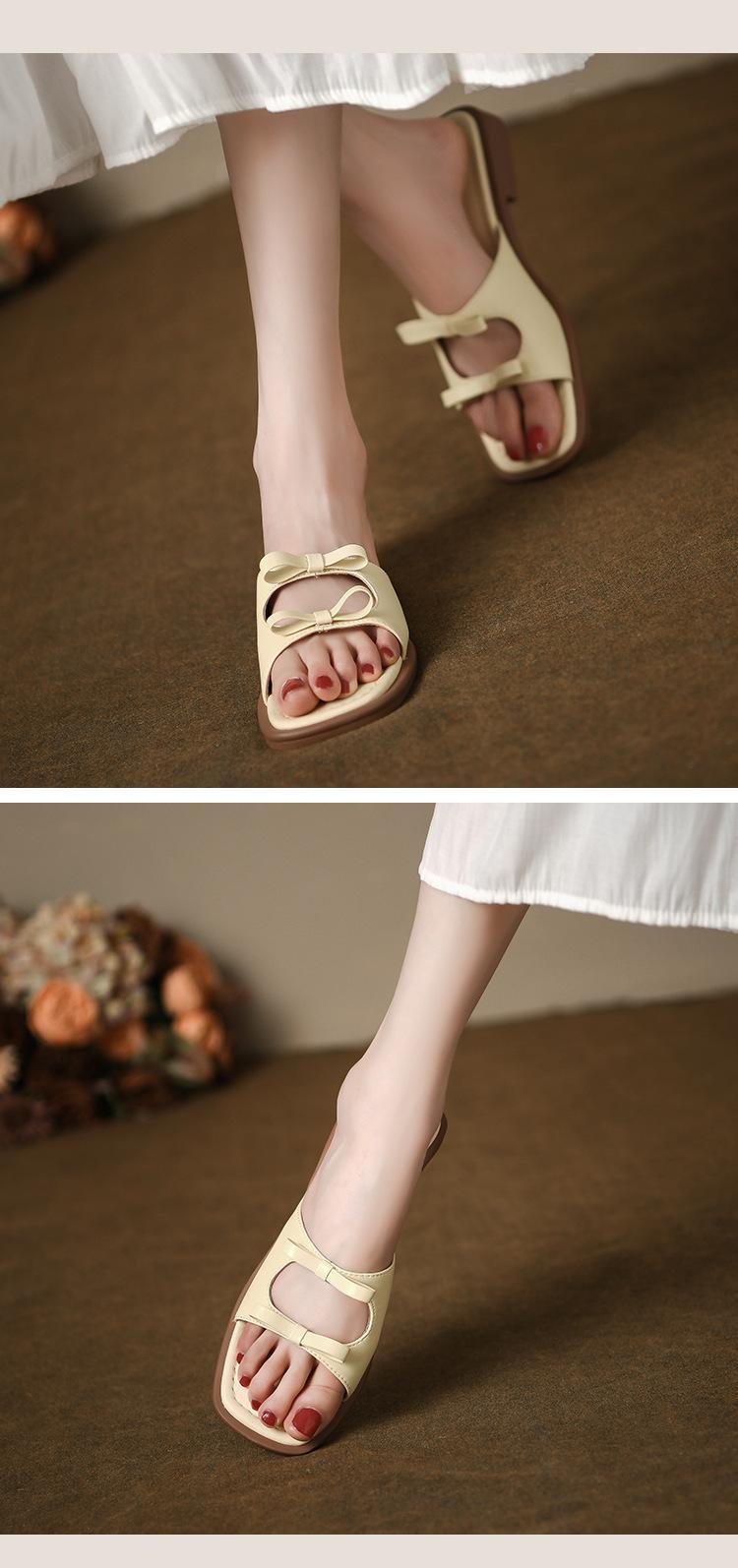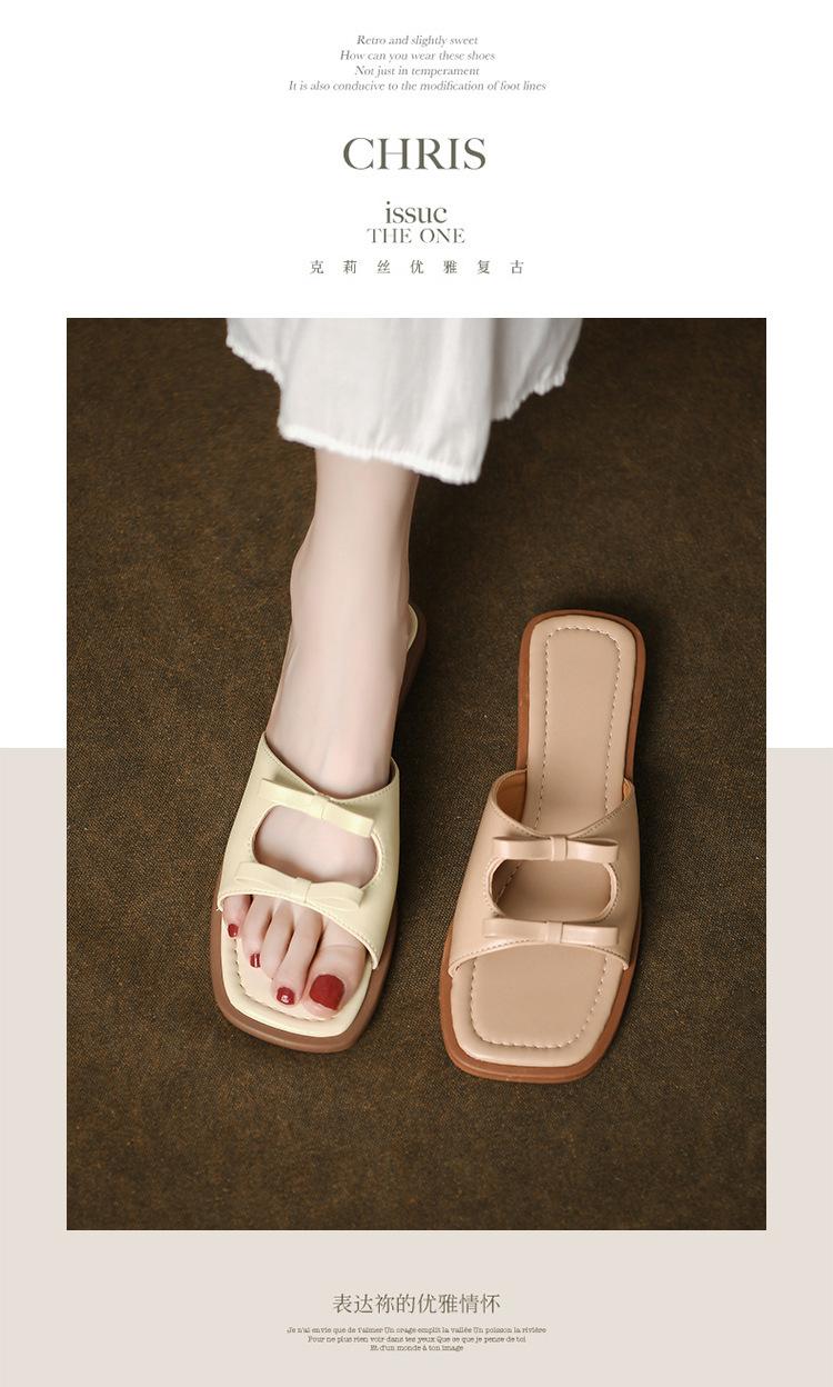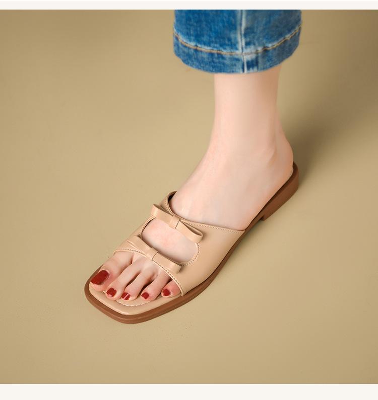 2023 Nuevo Estilo de Verano Zapatos Planos de Punta Cuadrada para Mujer Slip-On de Punta Abierta Sandalias Casuales Transpirables y Cómodas