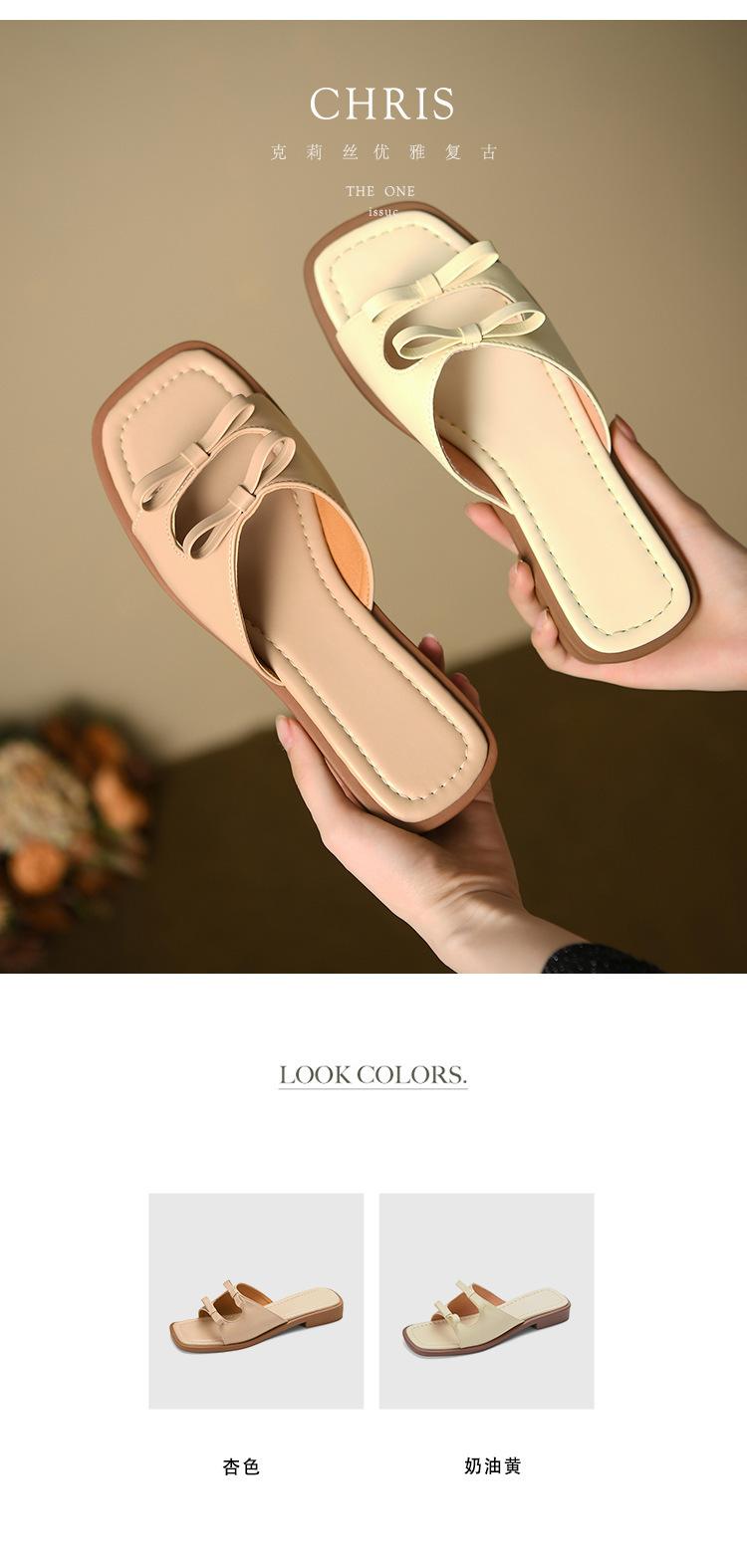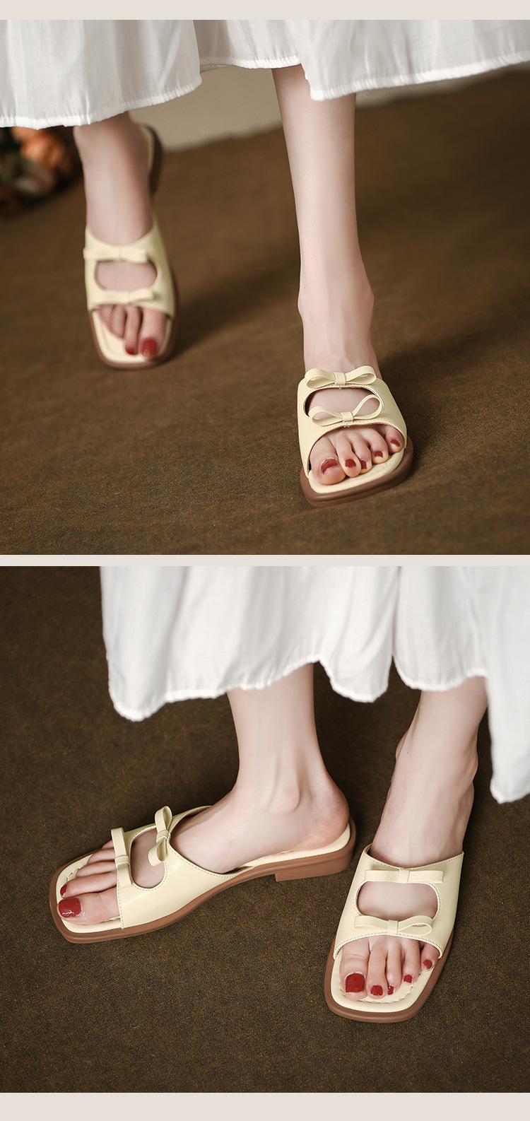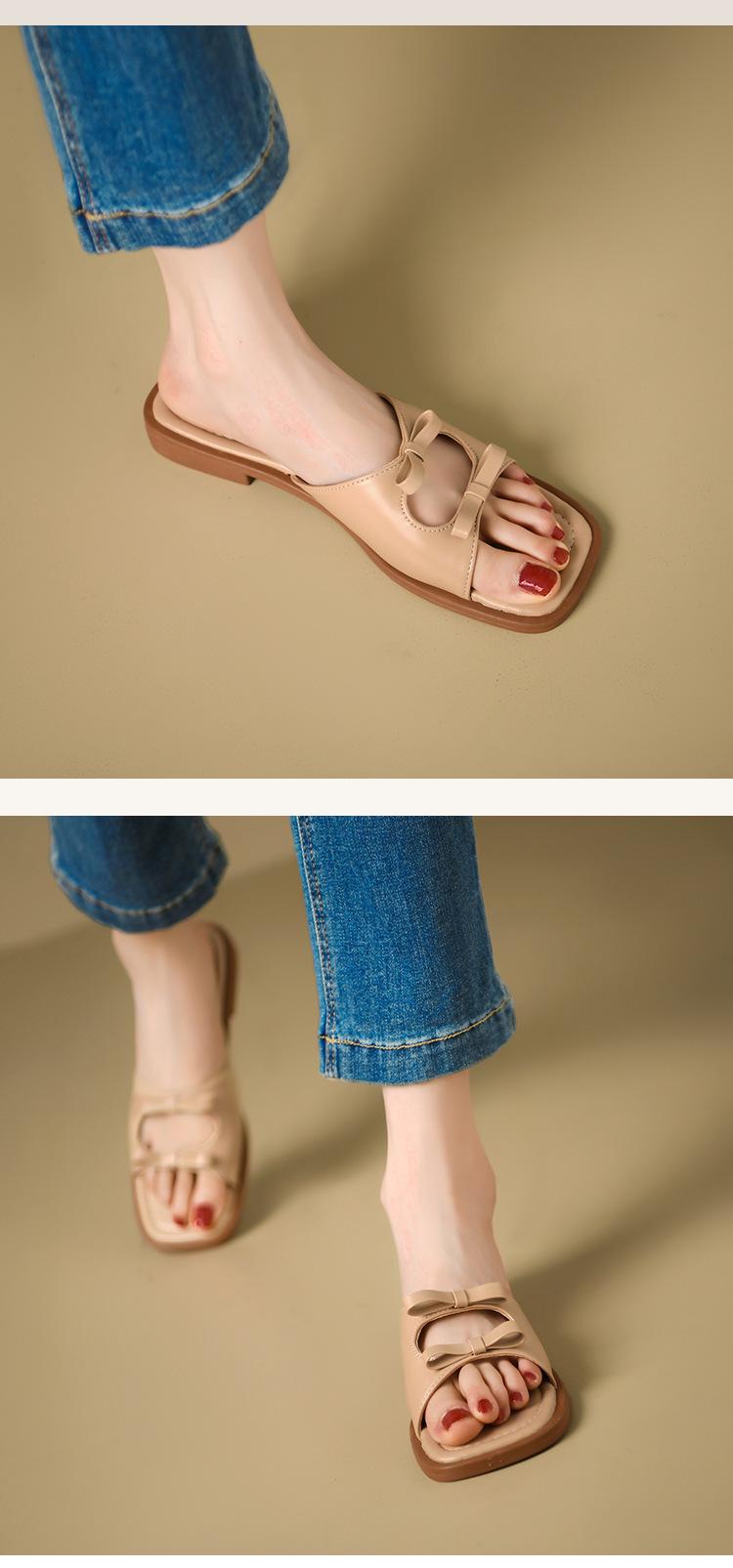 2023 Nuevo Estilo de Verano Zapatos Planos de Punta Cuadrada para Mujer Slip-On de Punta Abierta Sandalias Casuales Transpirables y Cómodas