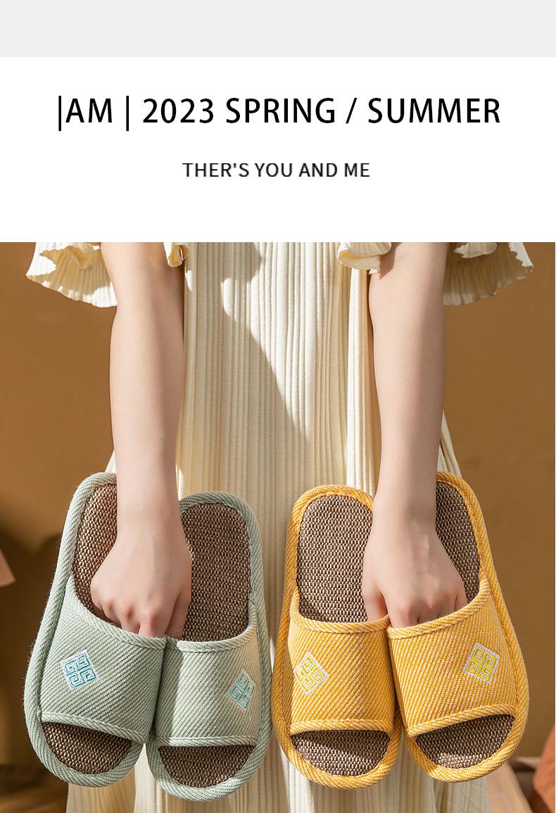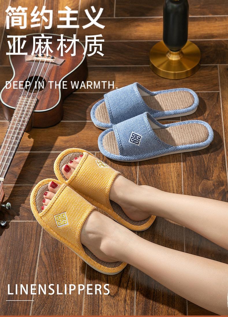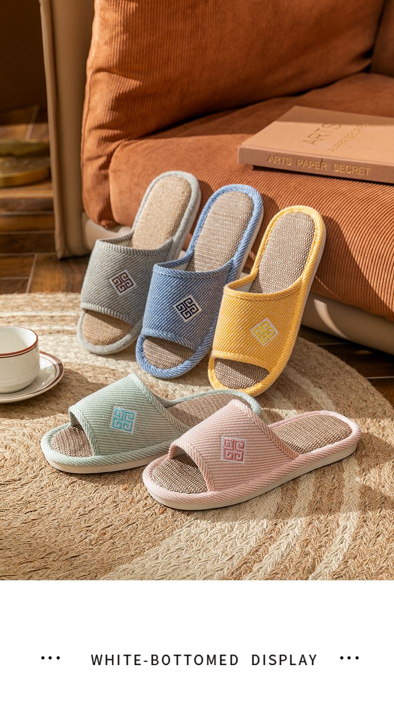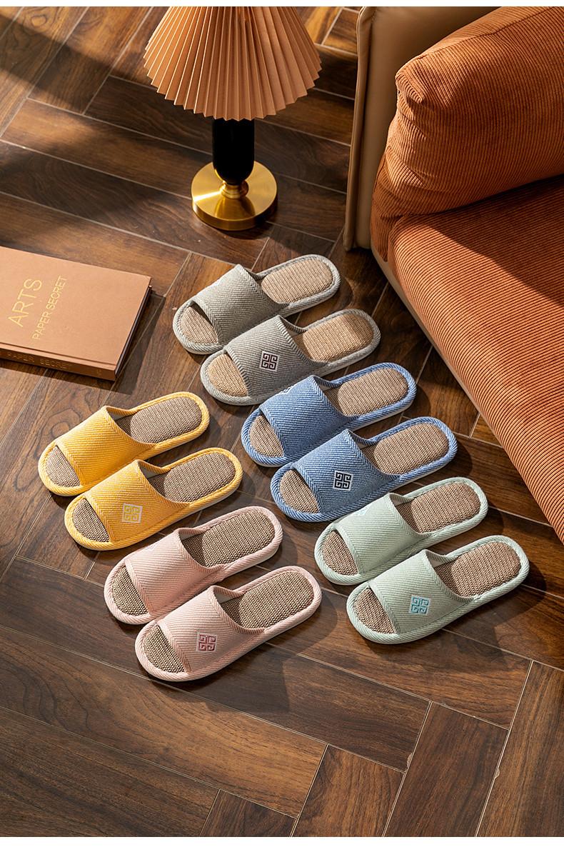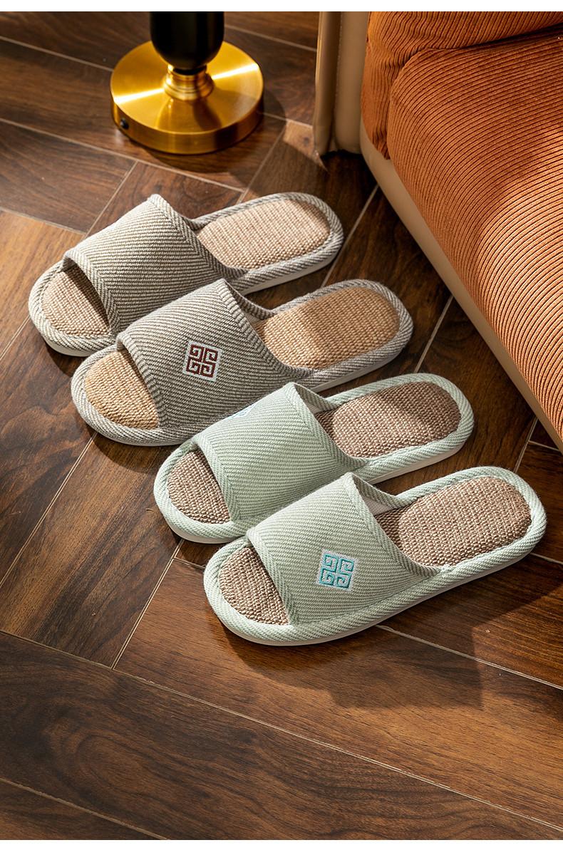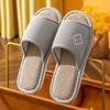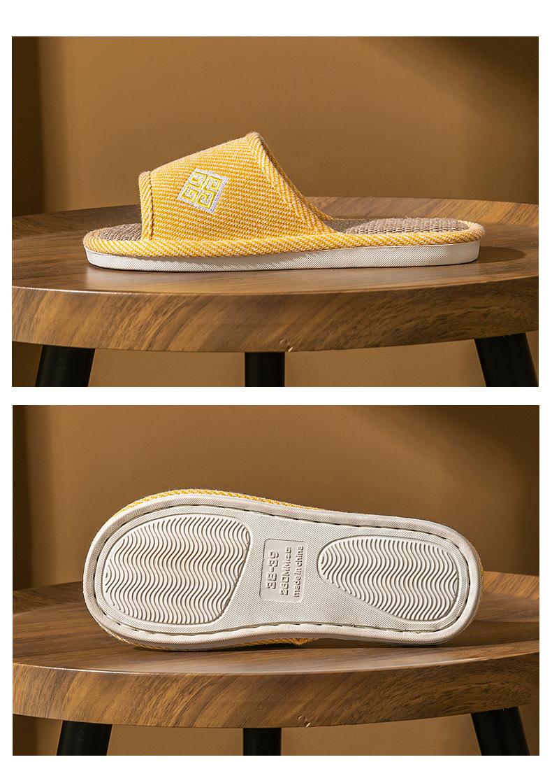 Zapatillas de lino para parejas, de verano, para casa, antideslizantes, de fondo suave, para interior y exterior, absorbentes del sudor, silenciosas, para las cuatro estaciones, con suelo de madera, para primavera y otoño, para mujer