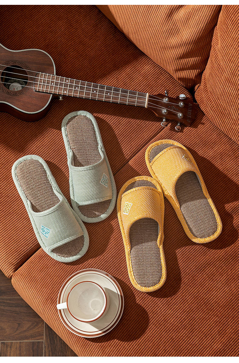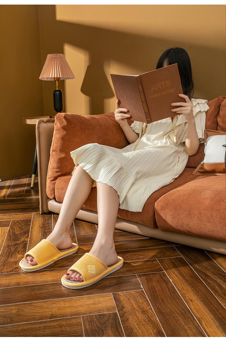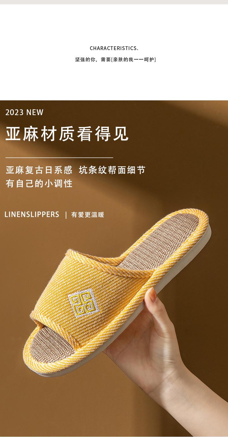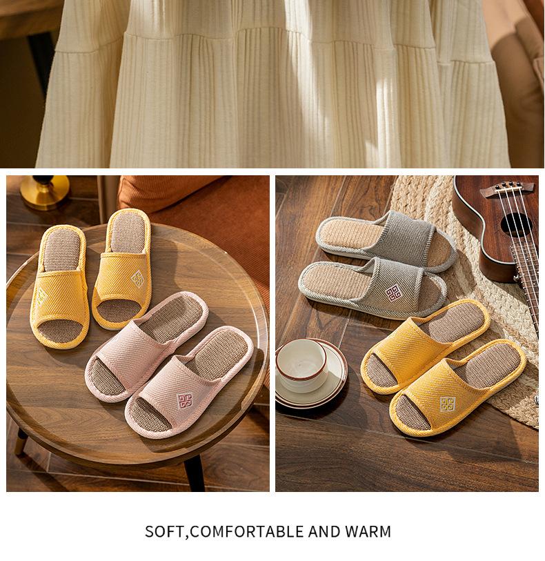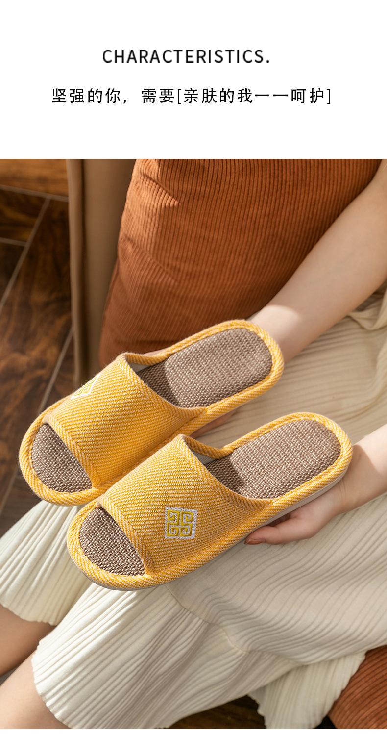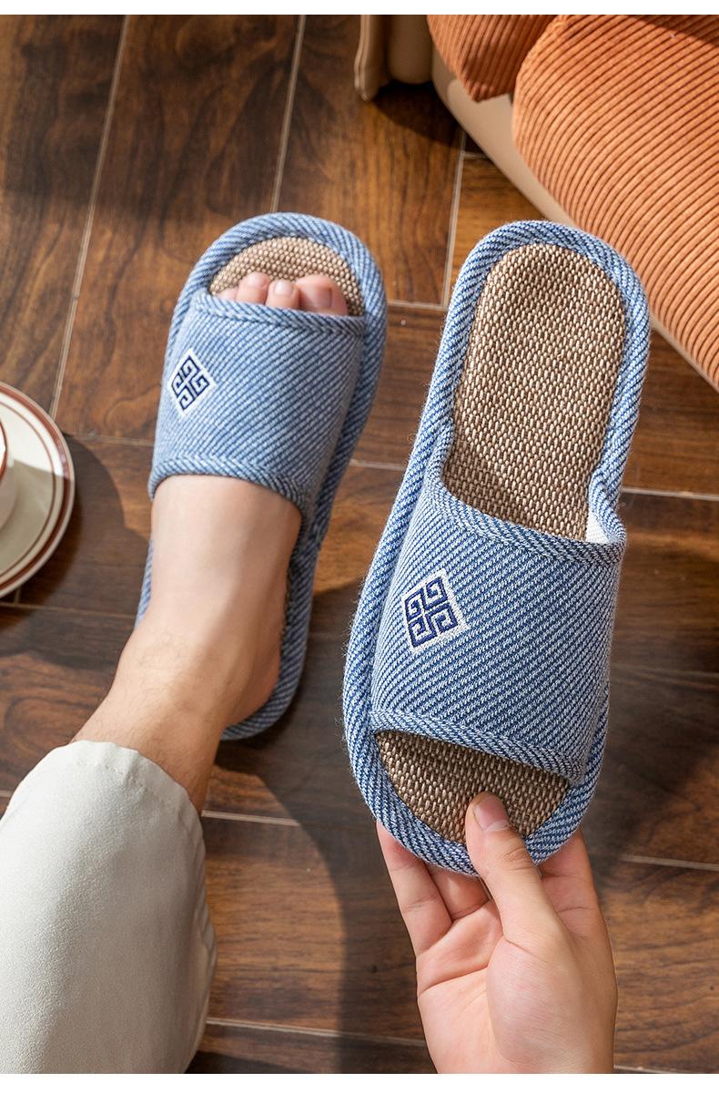 Zapatillas de lino para parejas, de verano, para casa, antideslizantes, de fondo suave, para interior y exterior, absorbentes del sudor, silenciosas, para las cuatro estaciones, con suelo de madera, para primavera y otoño, para mujer