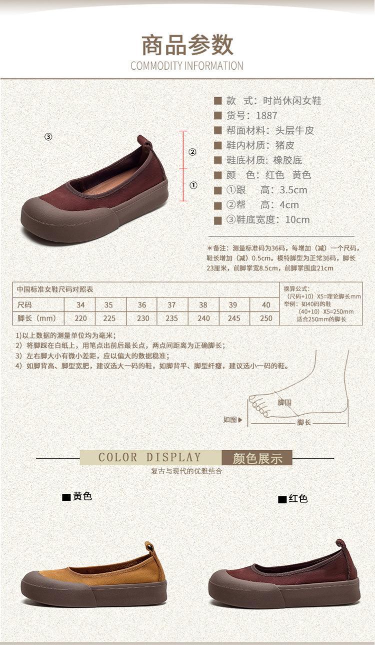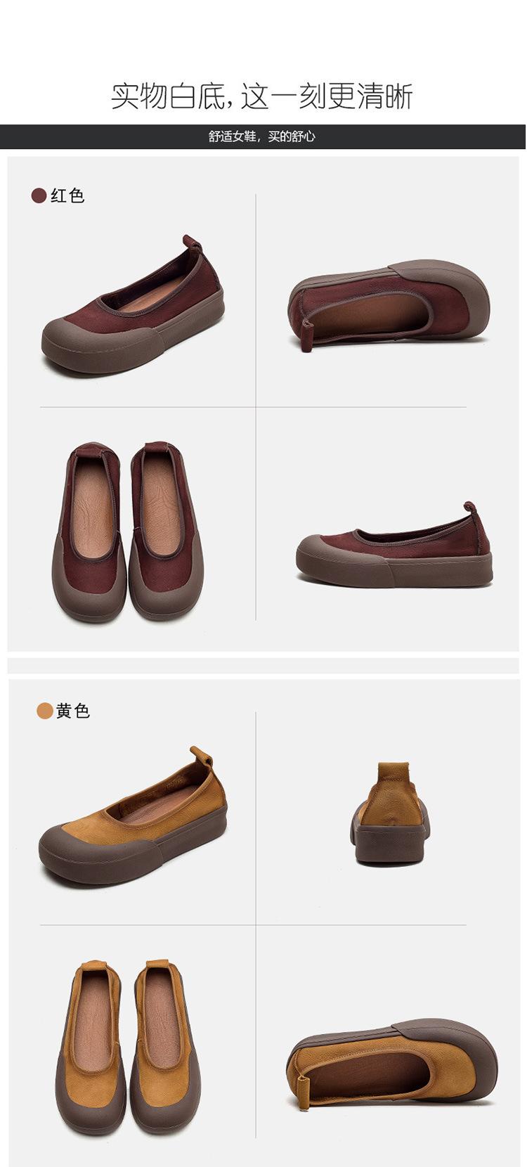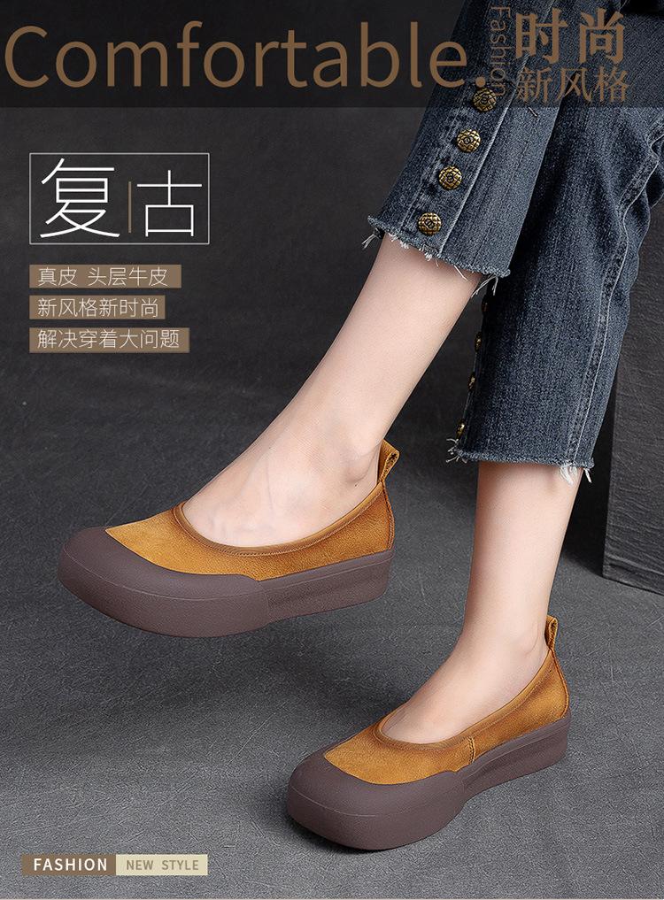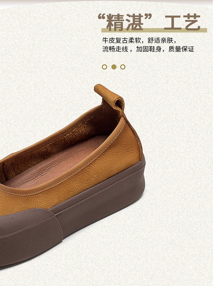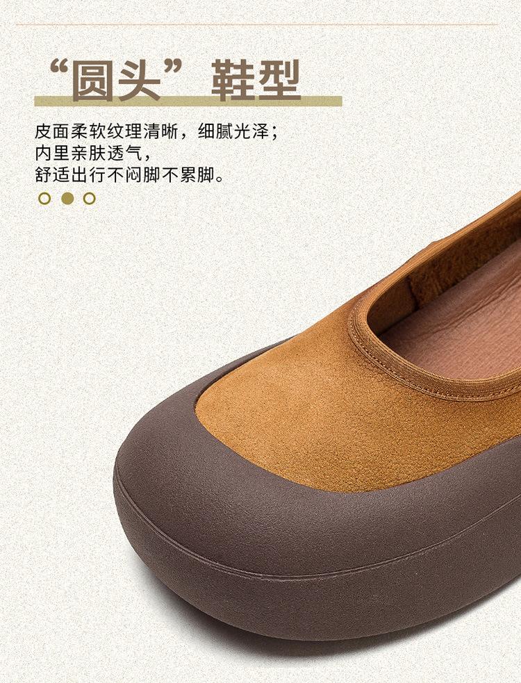 Zapatos de piel de vaca con punta redonda, planos, sin cordones, cómodos, para mujer, de Shanghai Jiedu, para otoño e invierno.