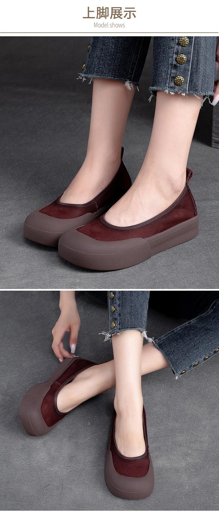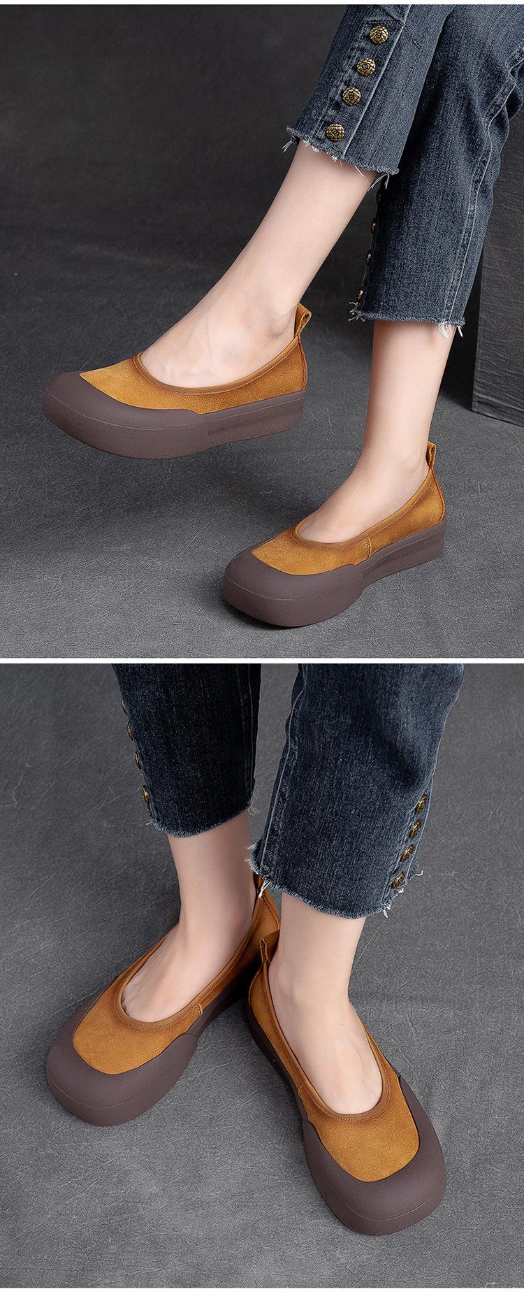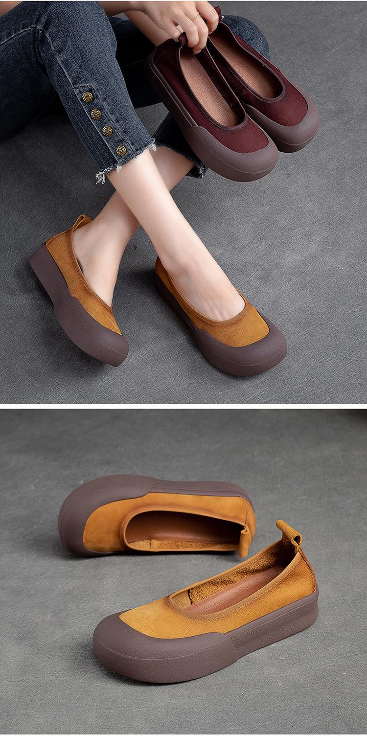 Zapatos de piel de vaca con punta redonda, planos, sin cordones, cómodos, para mujer, de Shanghai Jiedu, para otoño e invierno.