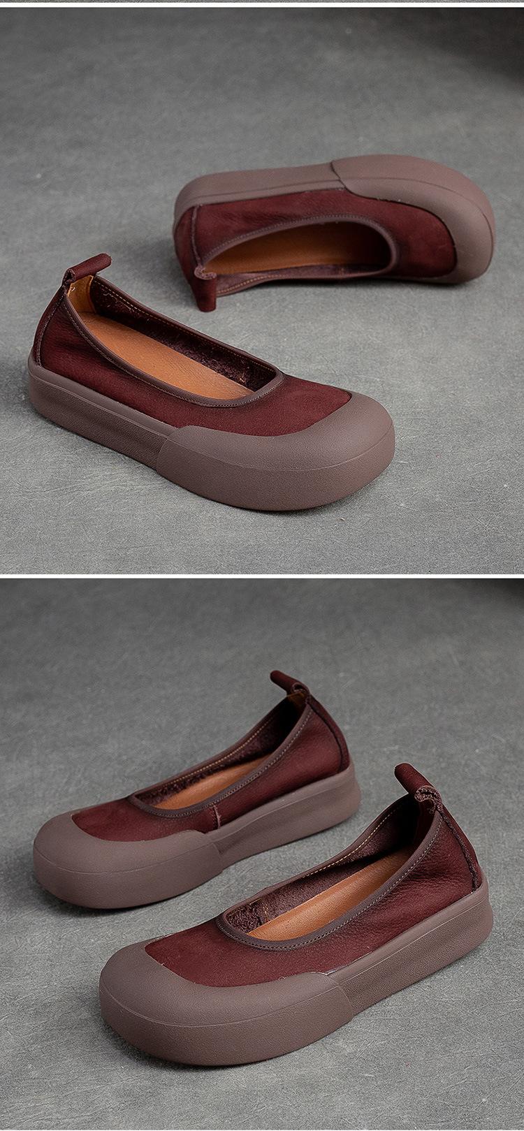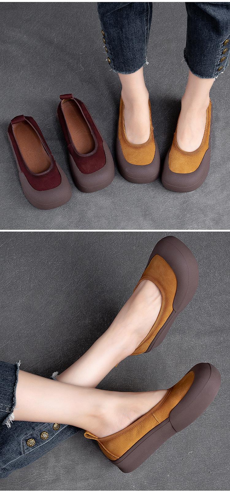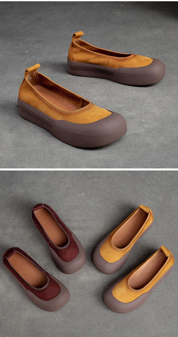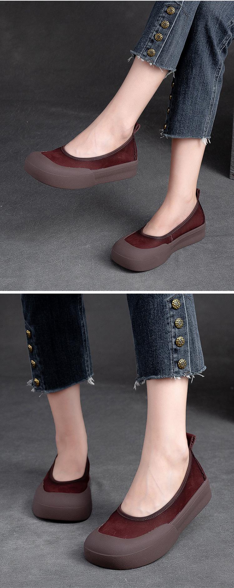 Zapatos de piel de vaca con punta redonda, planos, sin cordones, cómodos, para mujer, de Shanghai Jiedu, para otoño e invierno.