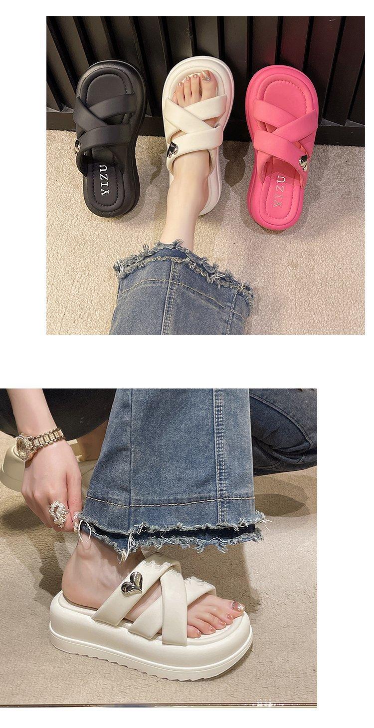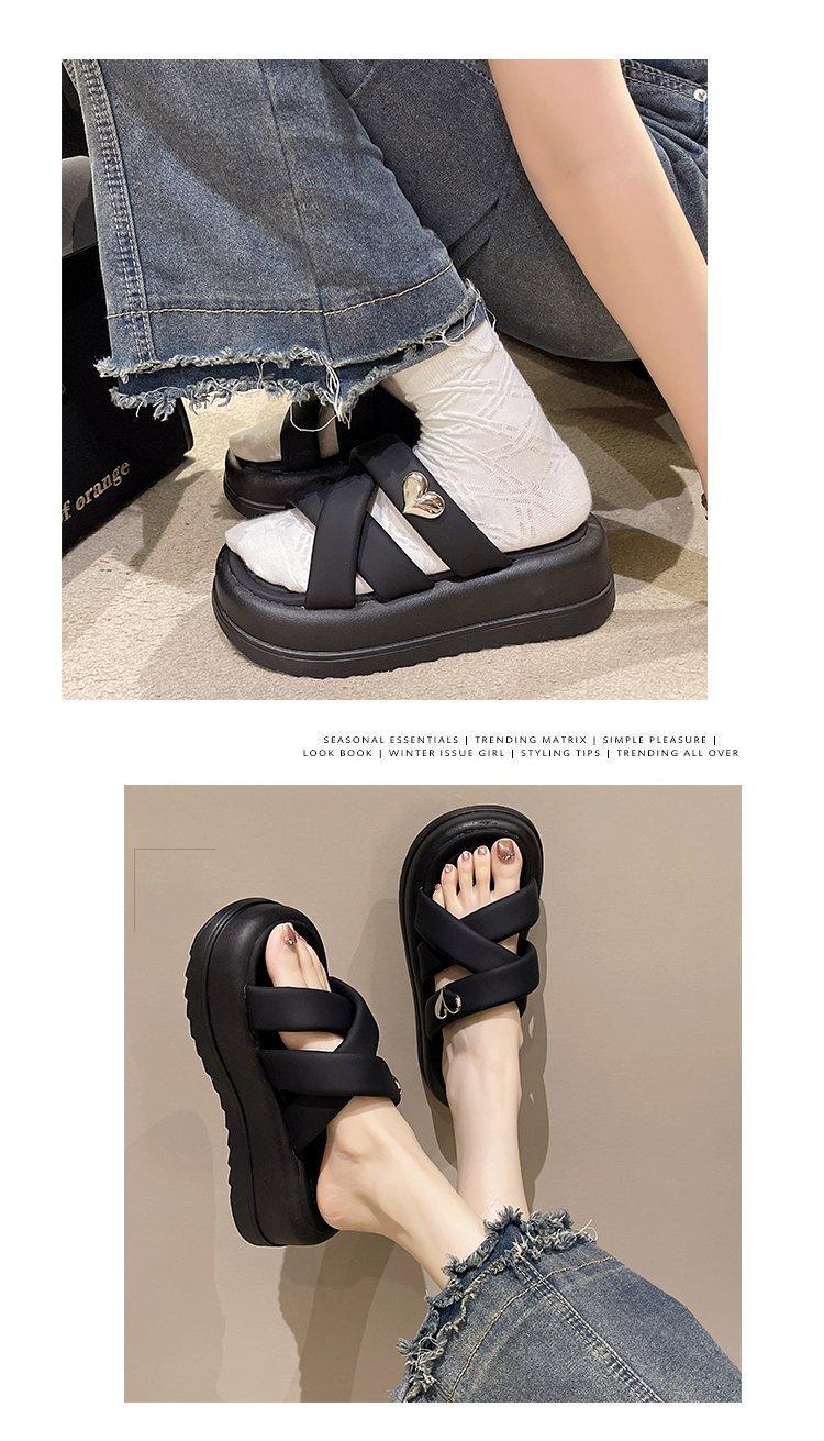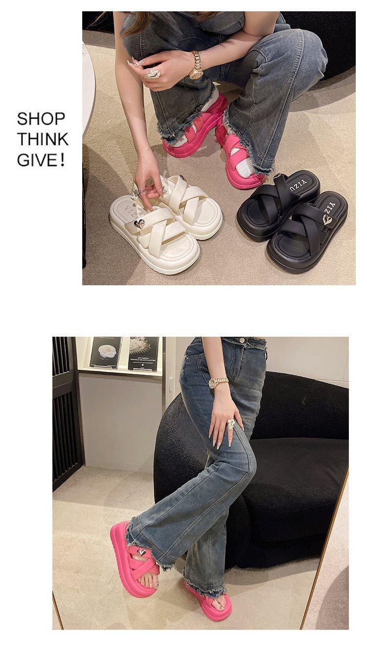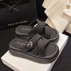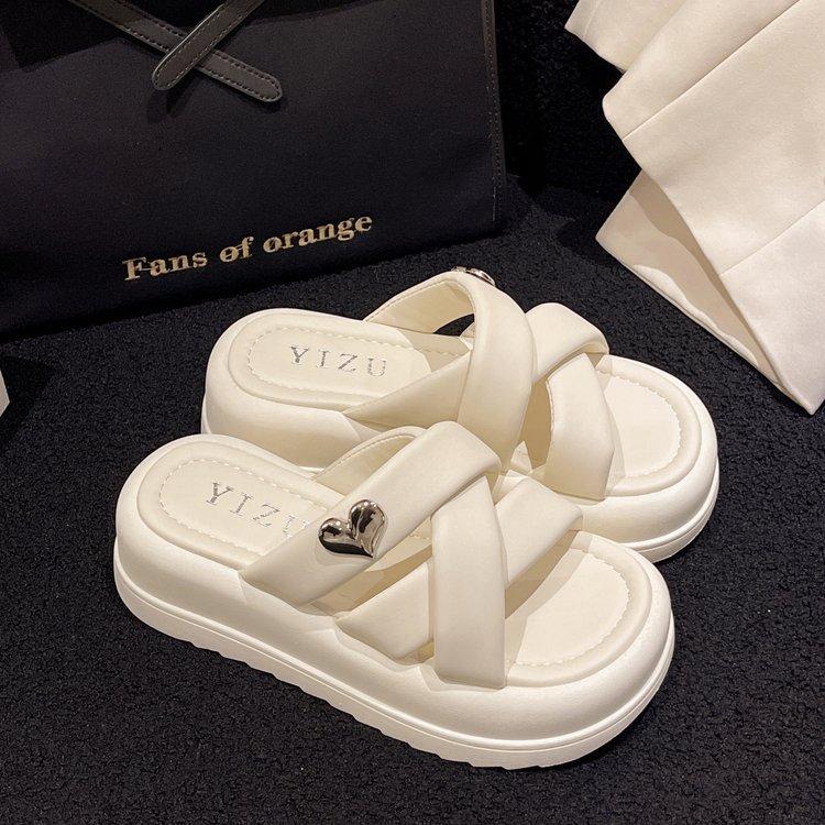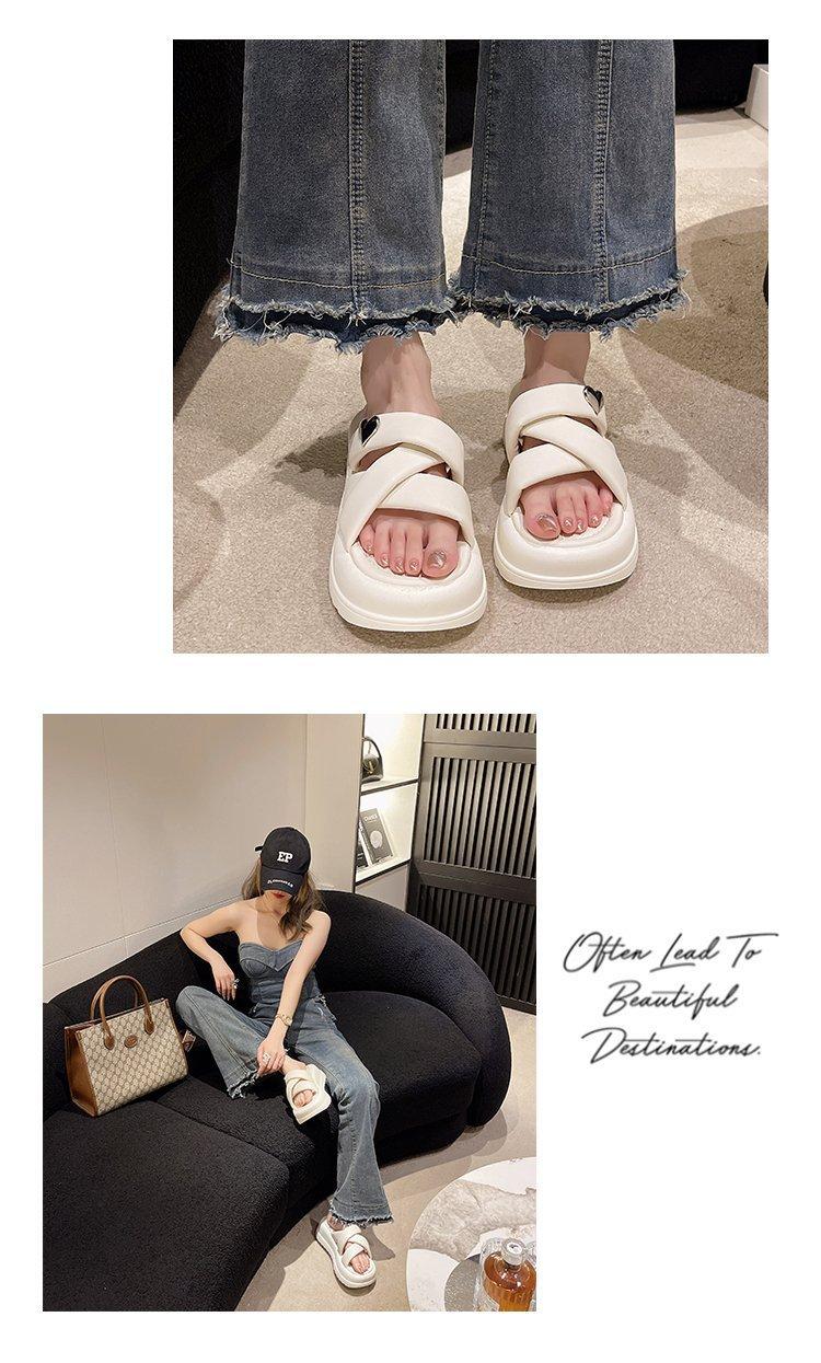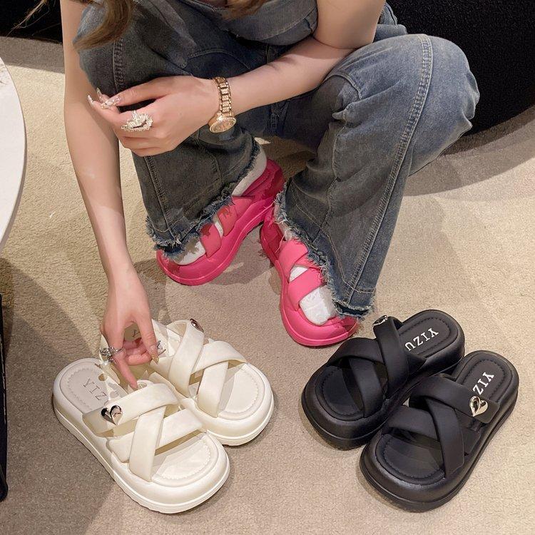 Zapatillas de plataforma de cuero suave para mujer, zapatos de playa con suela suave cruzada, informales, estilo hada, para exteriores, verano 2023