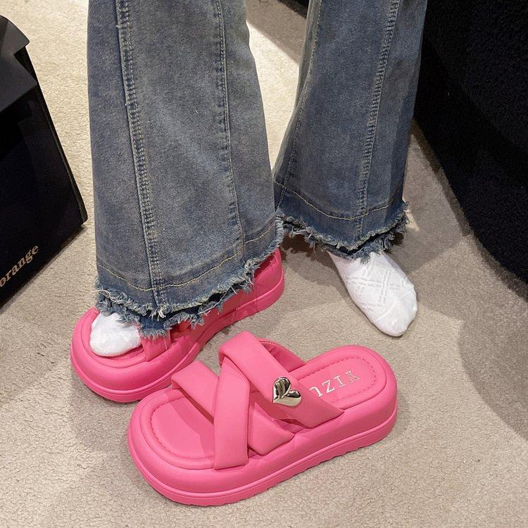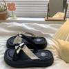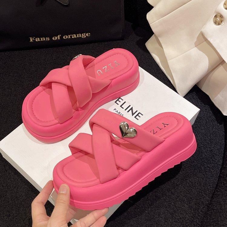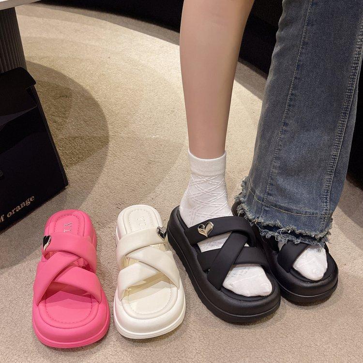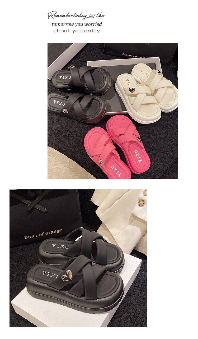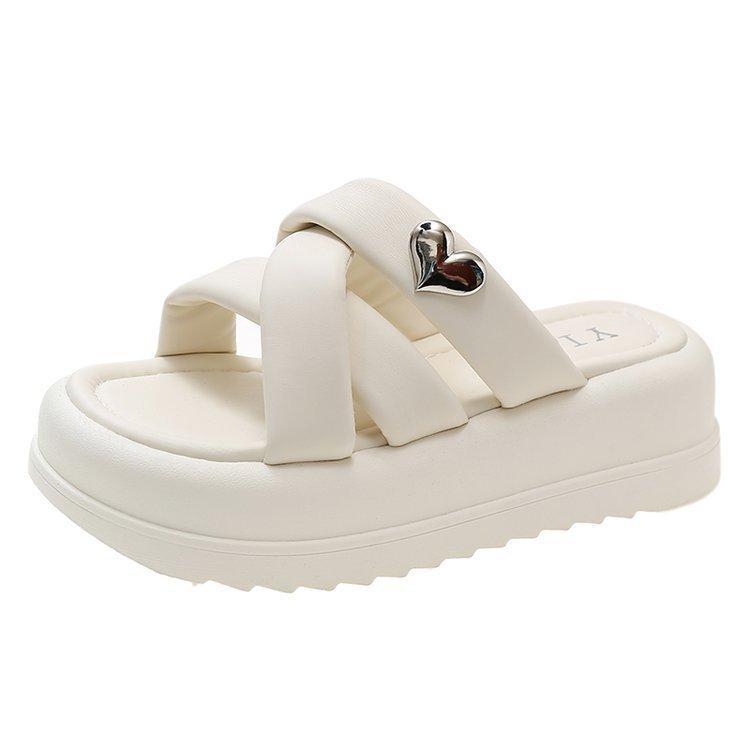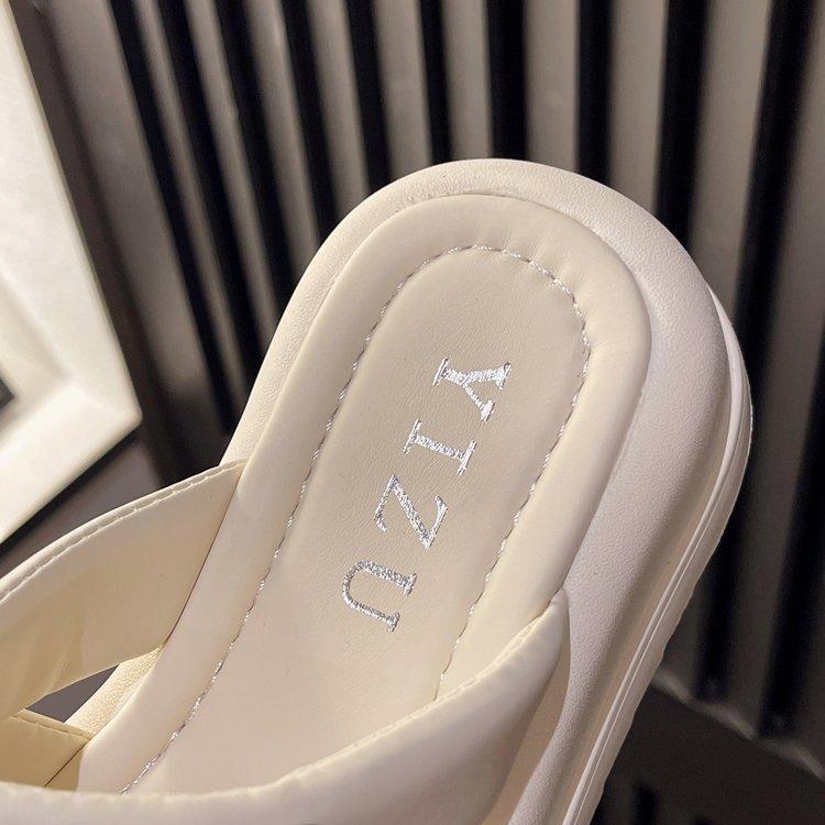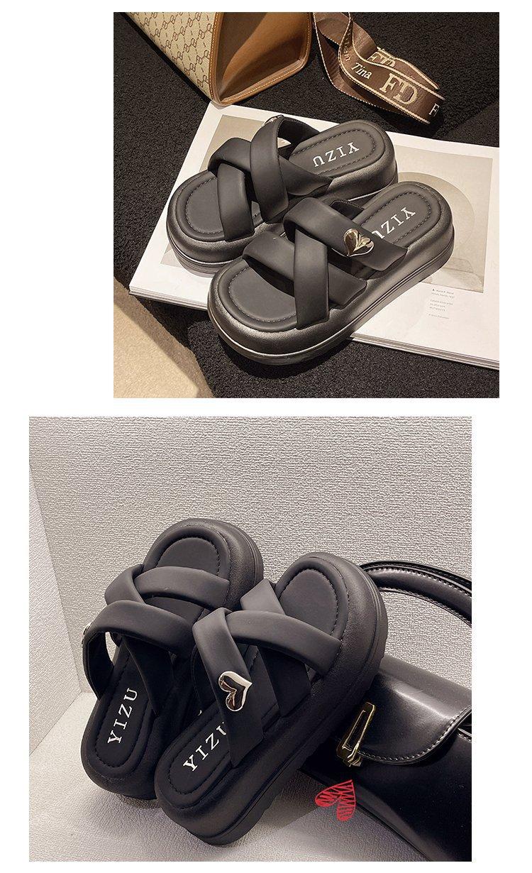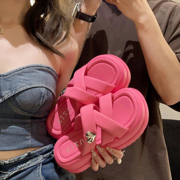 Zapatillas de plataforma de cuero suave para mujer, zapatos de playa con suela suave cruzada, informales, estilo hada, para exteriores, verano 2023