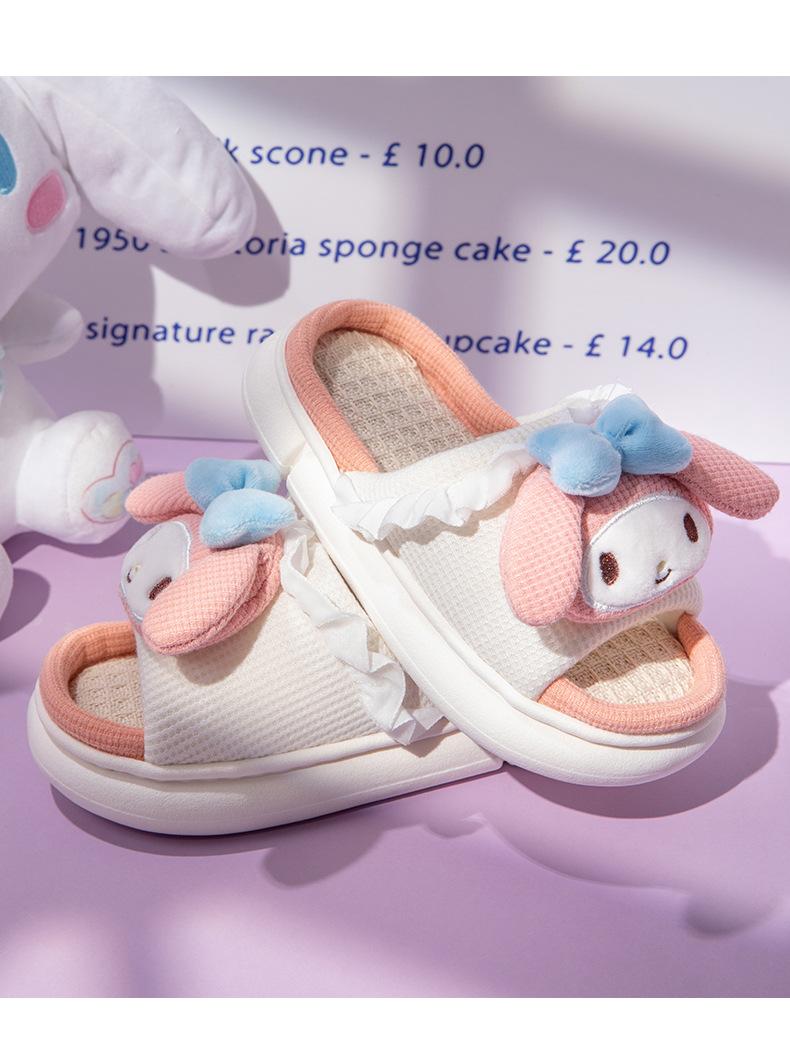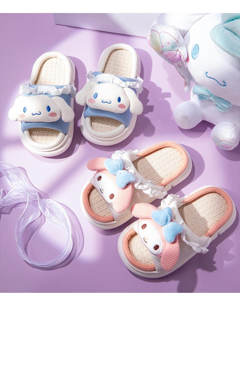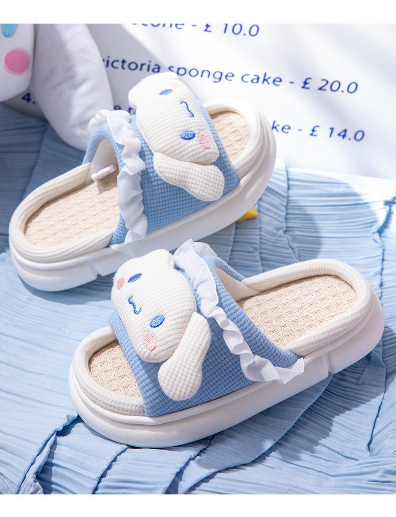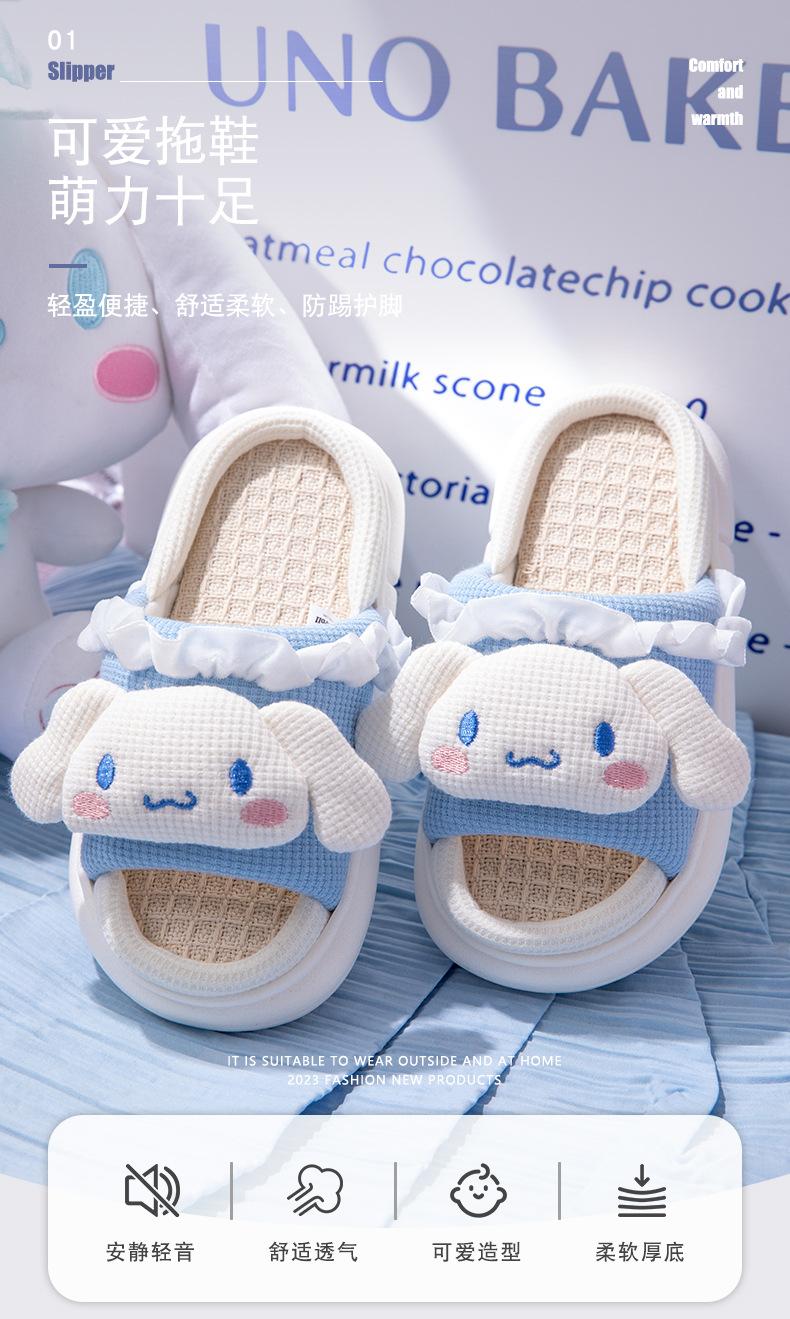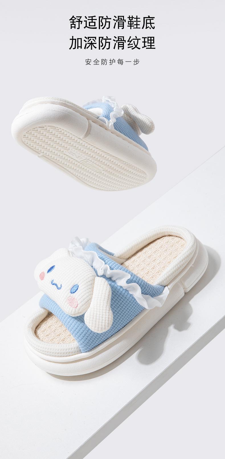 Pantuflas de Lino para Niños Nanbo Sanrio para Mujer, Lindas de Dibujos Animados, Perro de Orejas Grandes, para Interior, Antideslizantes, para las Cuatro Estaciones, para Uso Exterior