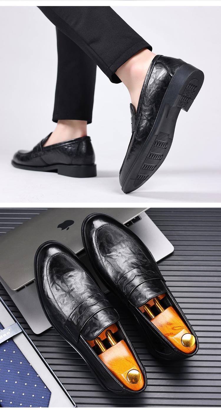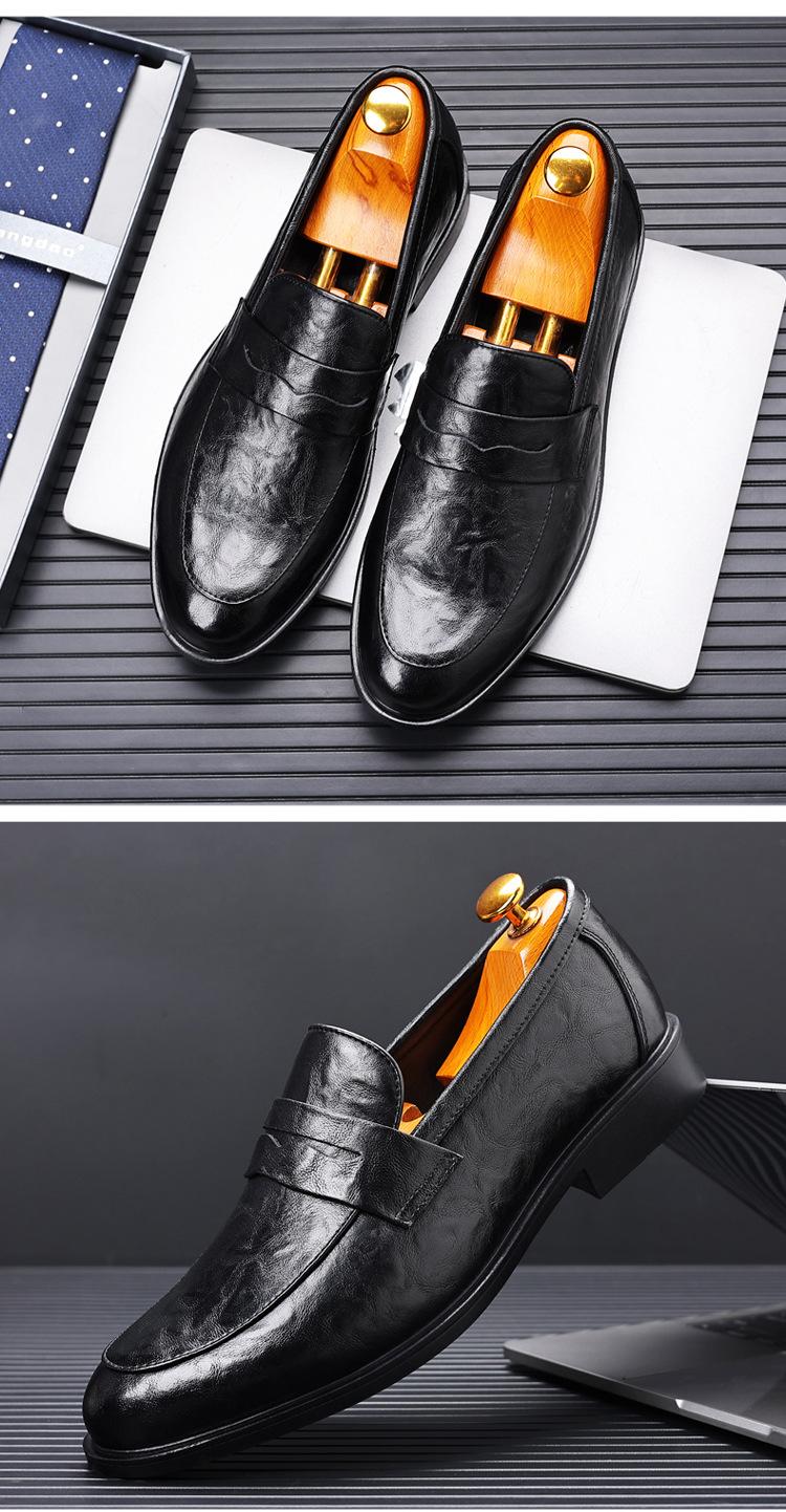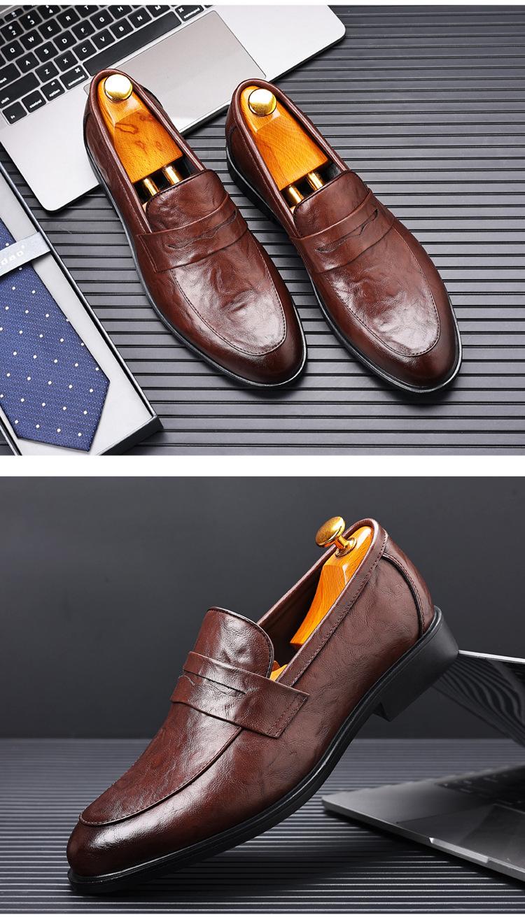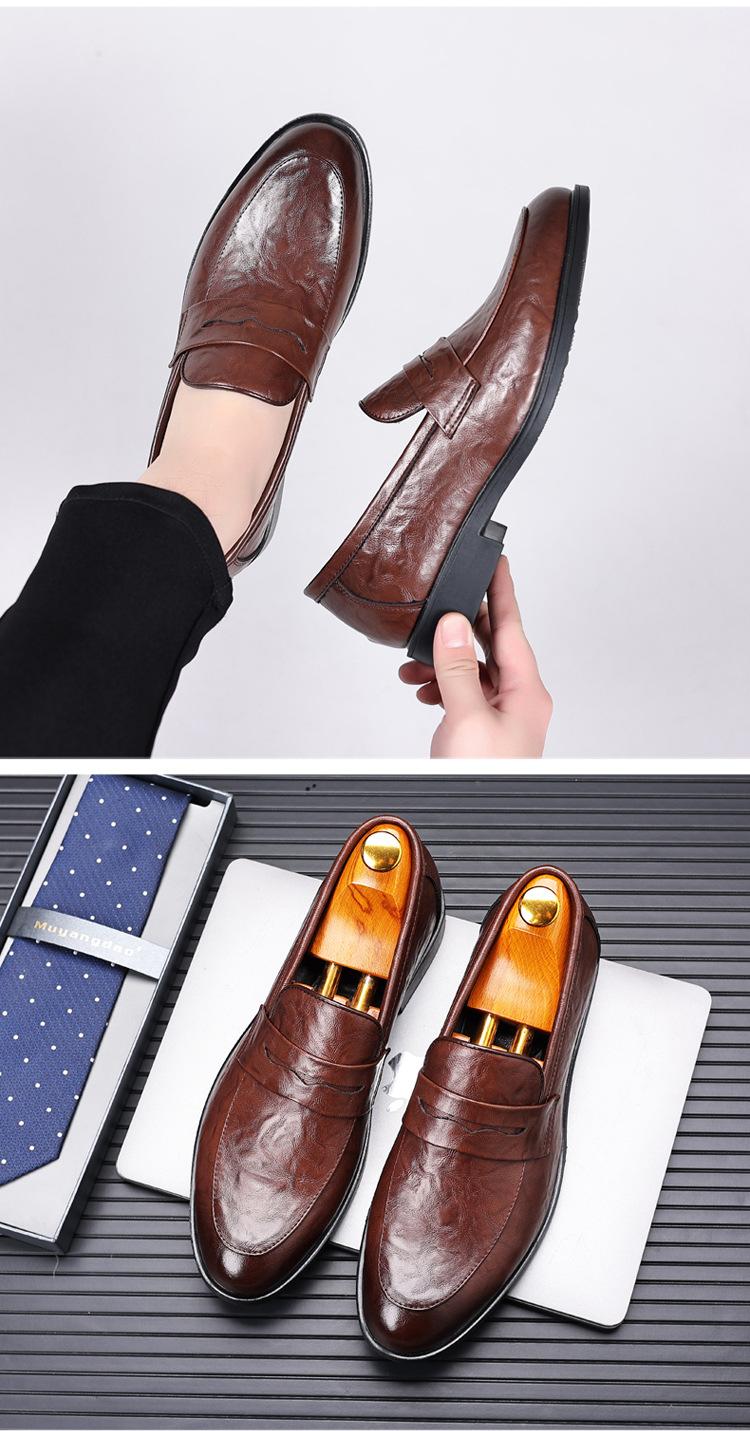 Zapatos de cuero nuevos de primavera para hombre, zapatos formales de boda de estilo británico, zapatos de hombre de suela suave, zapatos de cuero transpirables sin cordones de moda.