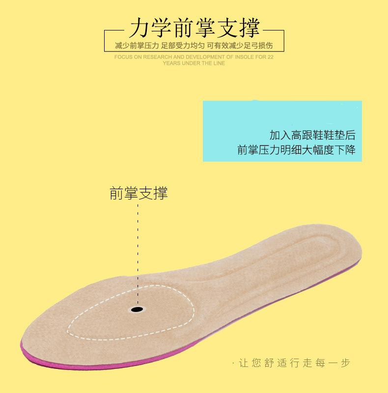 Plantillas de EVA de alta elasticidad y amortiguación al por mayor para tacones altos de piel de cerdo para mujer, plantillas transpirables, desodorantes y absorbentes del sudor.
