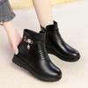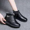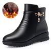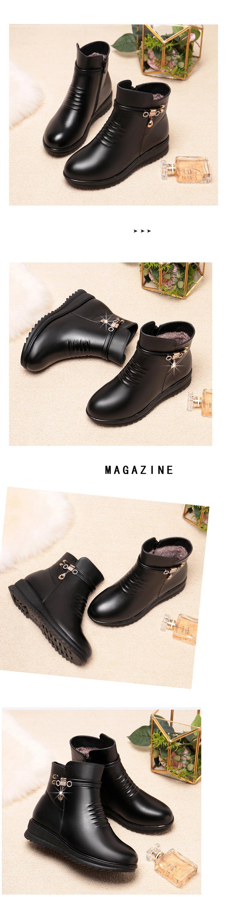 Botines de Invierno con Forro Polar para Edad Media y Adultos Mayores, Suela Plana, Empeine Suave, Talla Grande, Zapatos de Mujer Antideslizantes, Zapatos Cálidos de Algodón para Madre, Zapatos de Cuero para Mujer