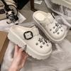 Zapatillas de exterior para mujer, verano 2023, nuevas, estilo hada, tacón grueso, moda, combinables, con puntera sencilla