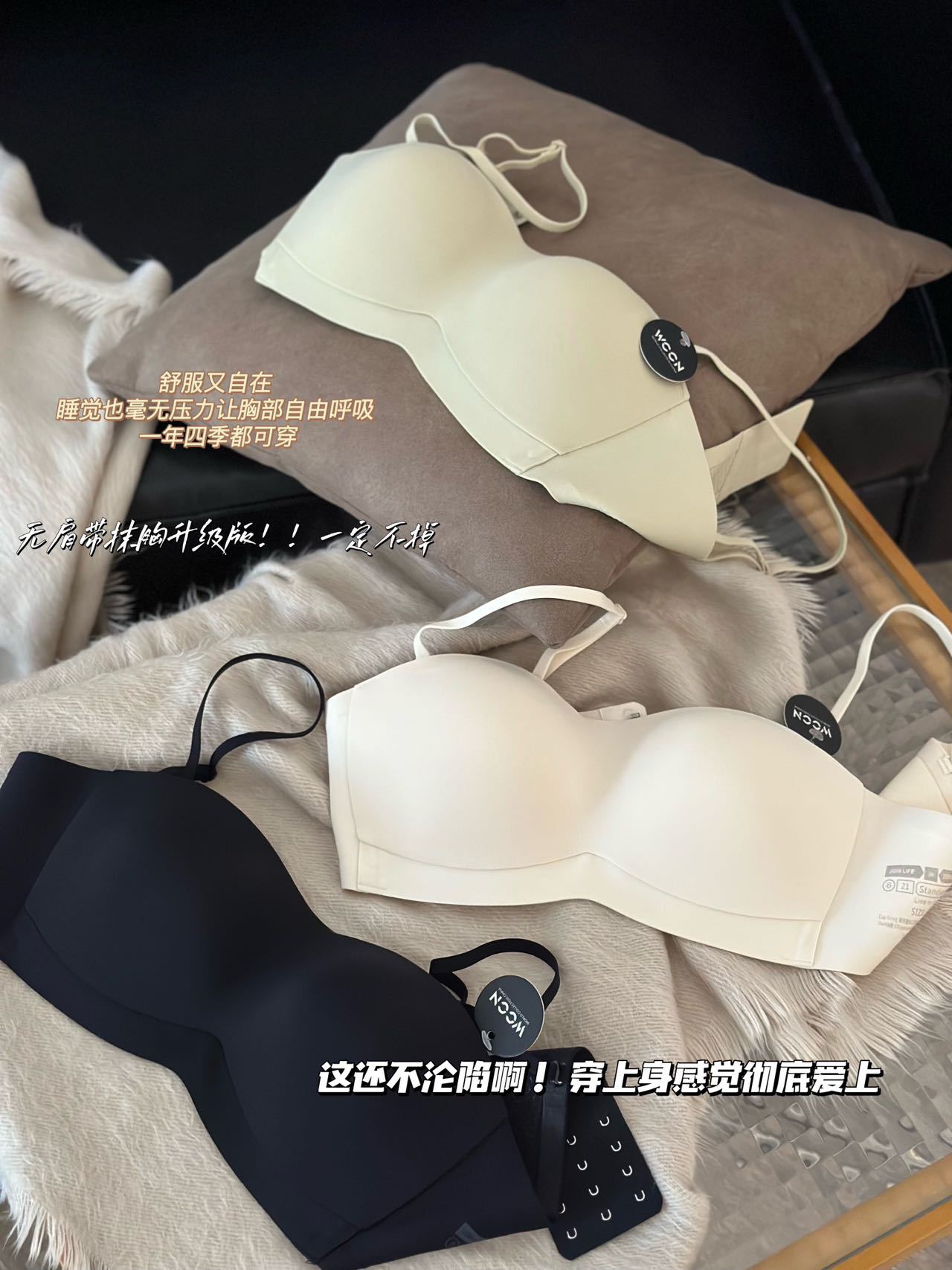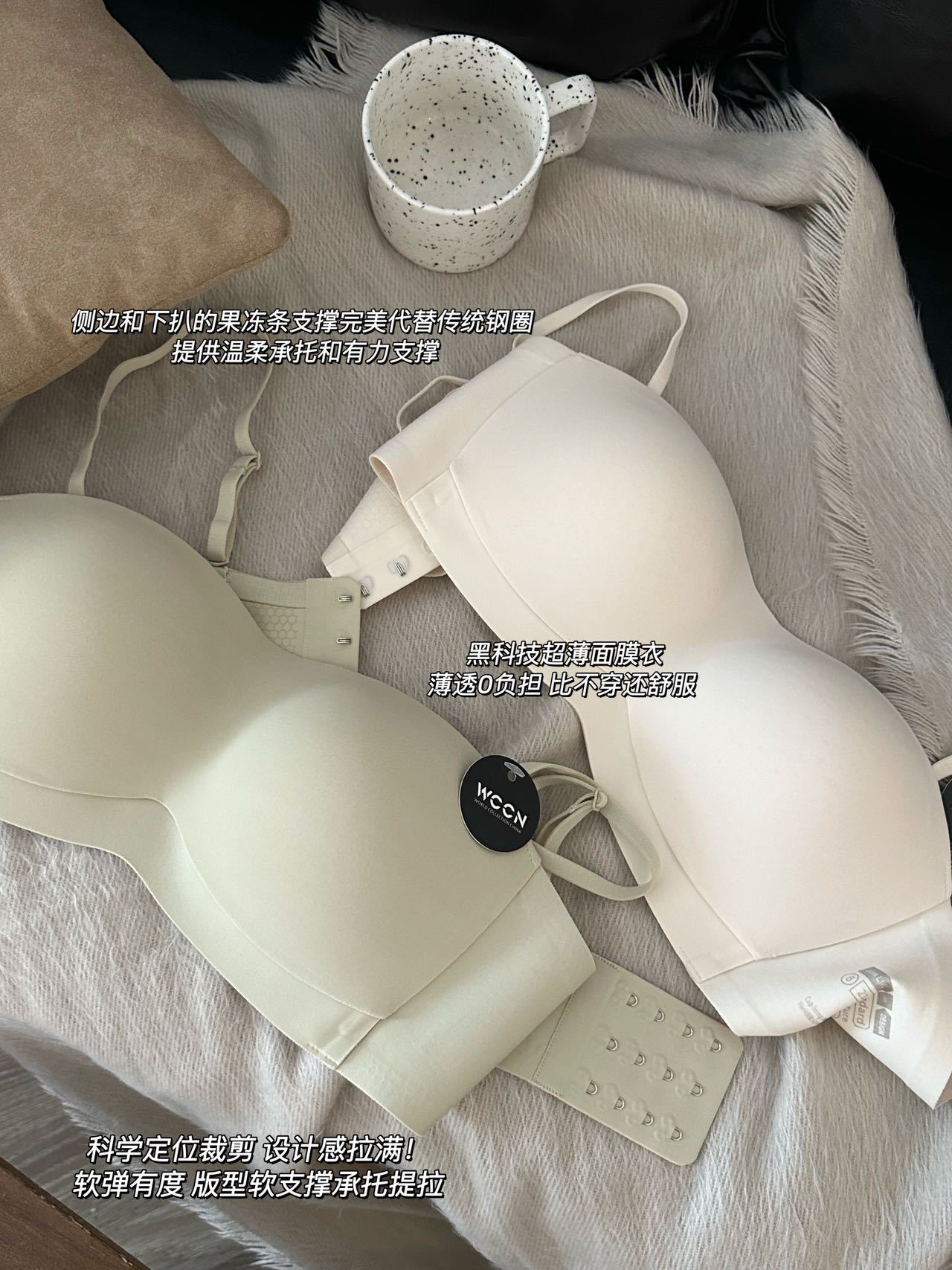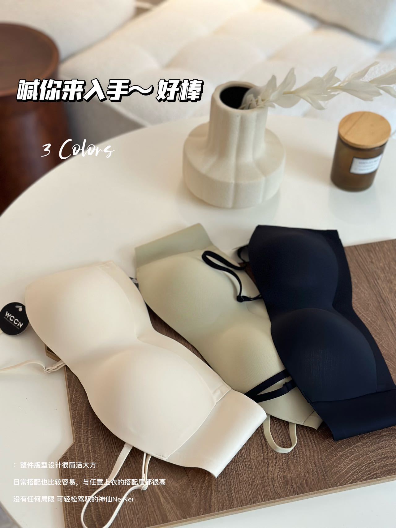 Sujetador push up de una pieza sin tirantes y sin costuras con escote en V, sin aros ni costuras, con aros envolventes para el pecho, 1789