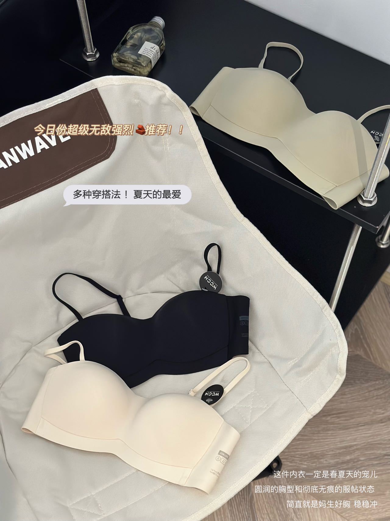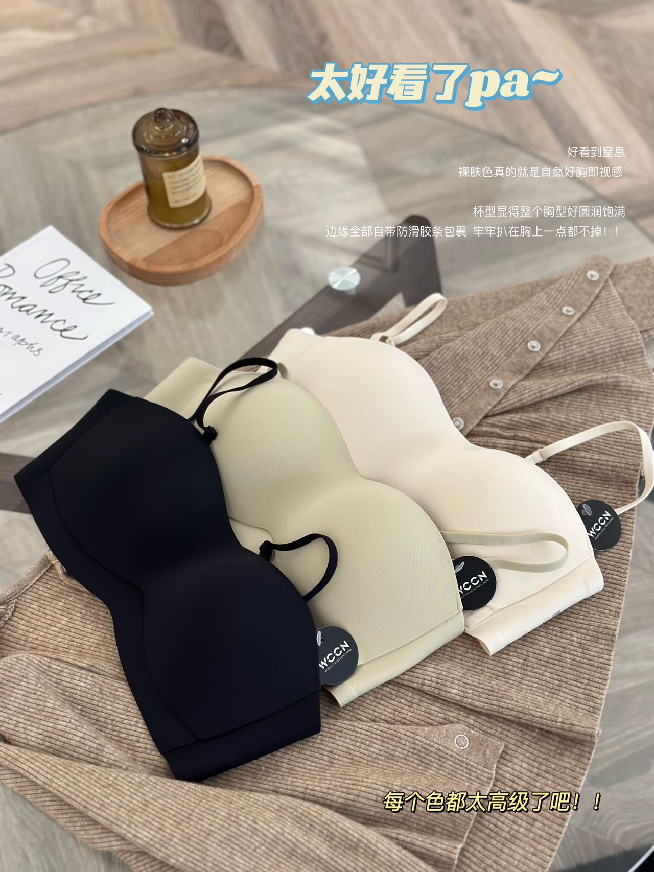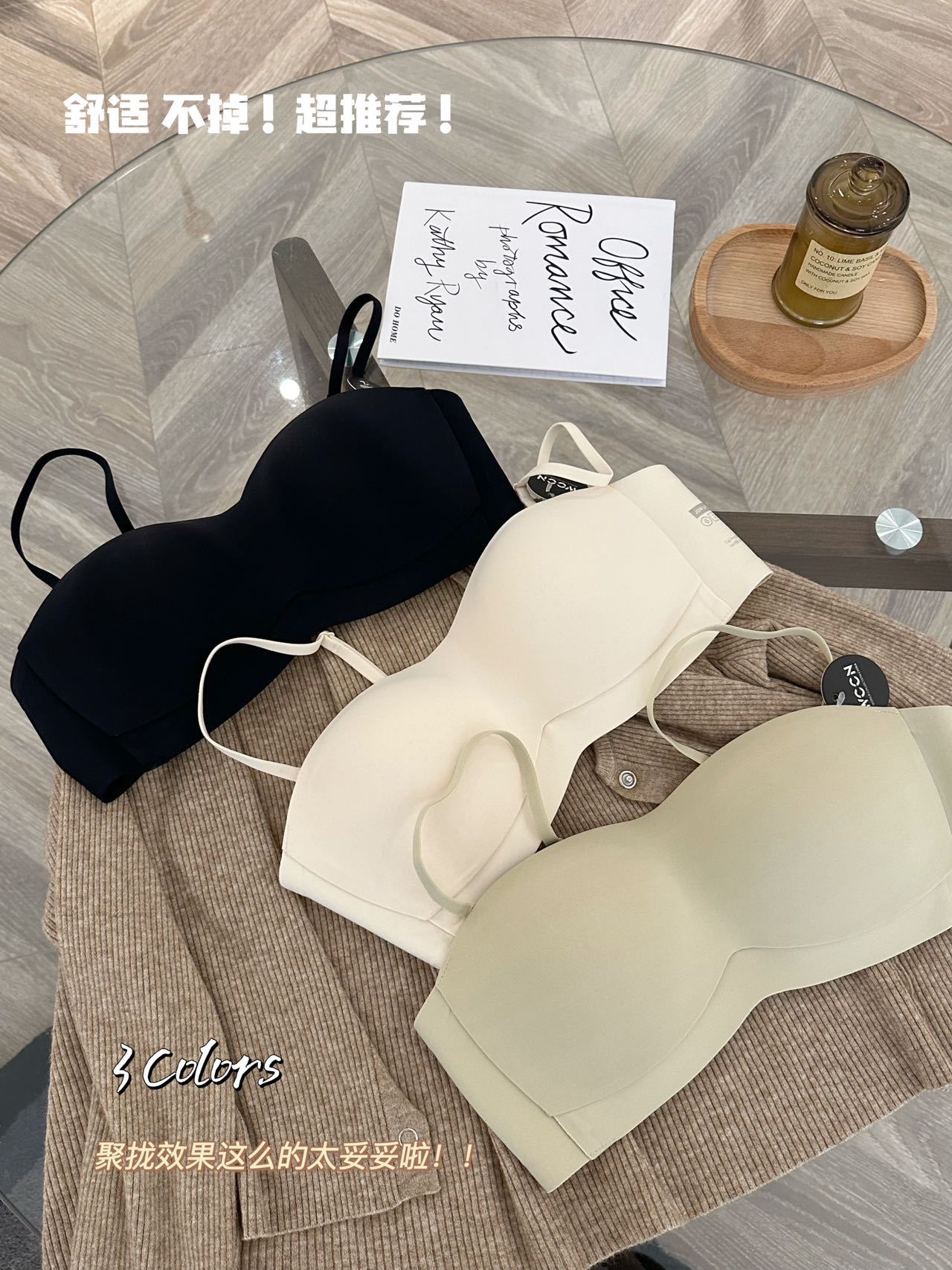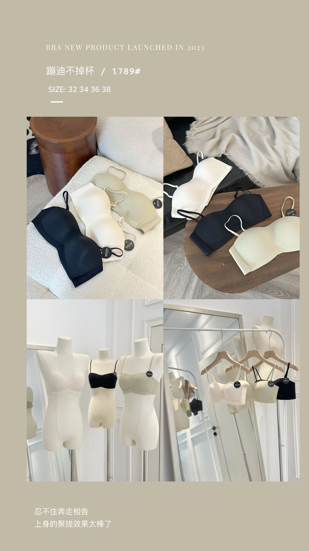 Sujetador push up de una pieza sin tirantes y sin costuras con escote en V, sin aros ni costuras, con aros envolventes para el pecho, 1789