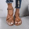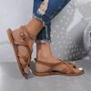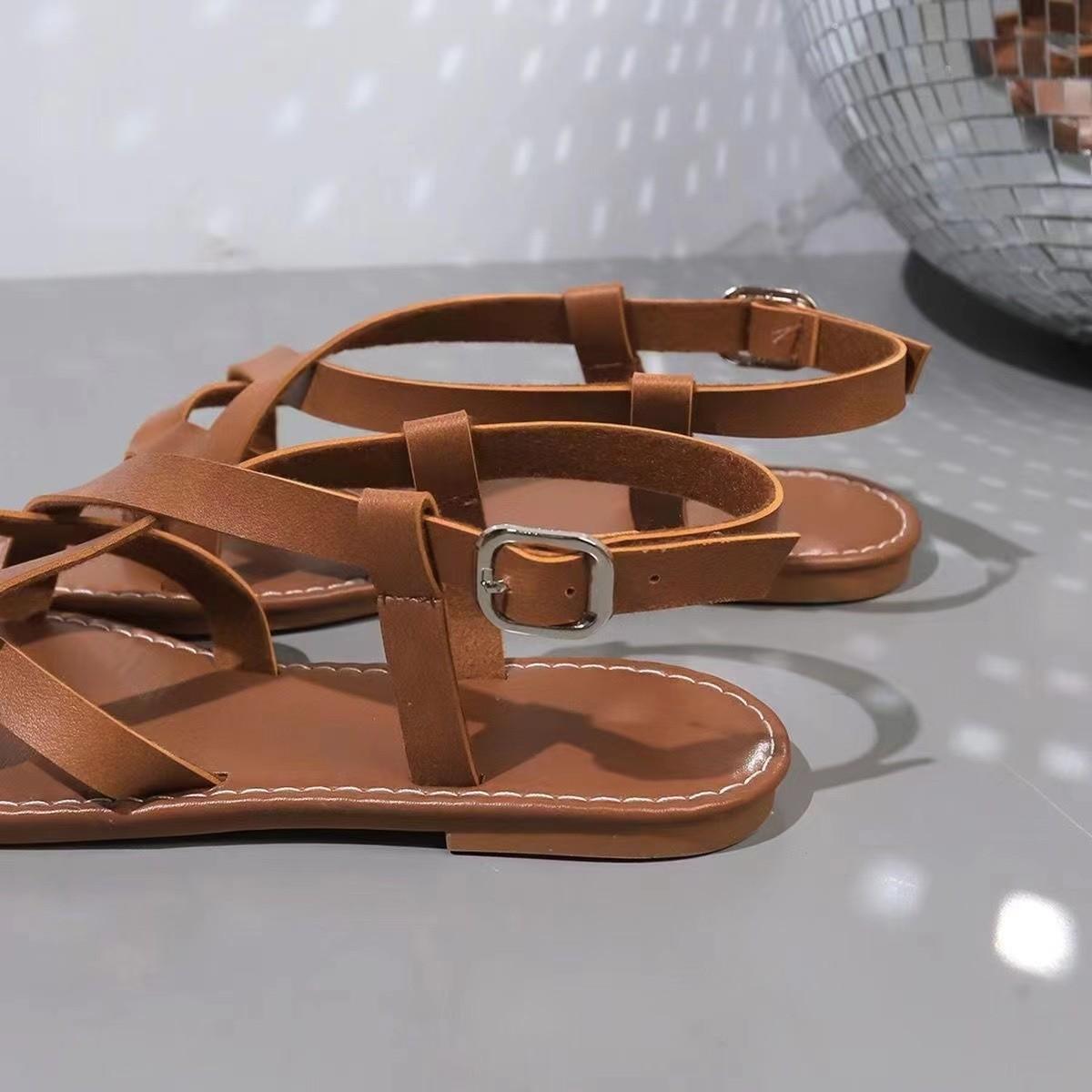 Sandalias planas de comercio exterior para mujer verano 2024 punta redonda punta abierta hebilla moda europea y americana talla grande zapatos de mujer al por mayor