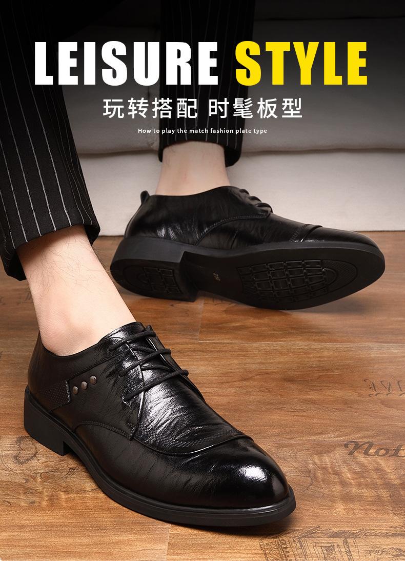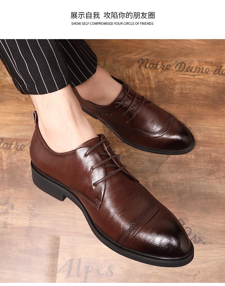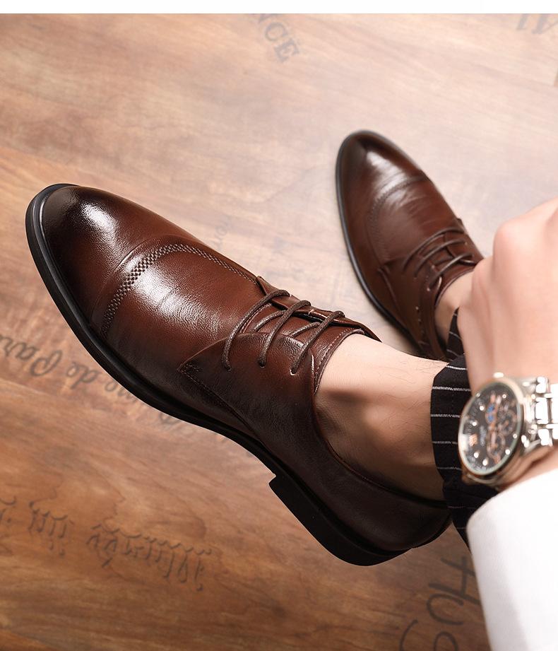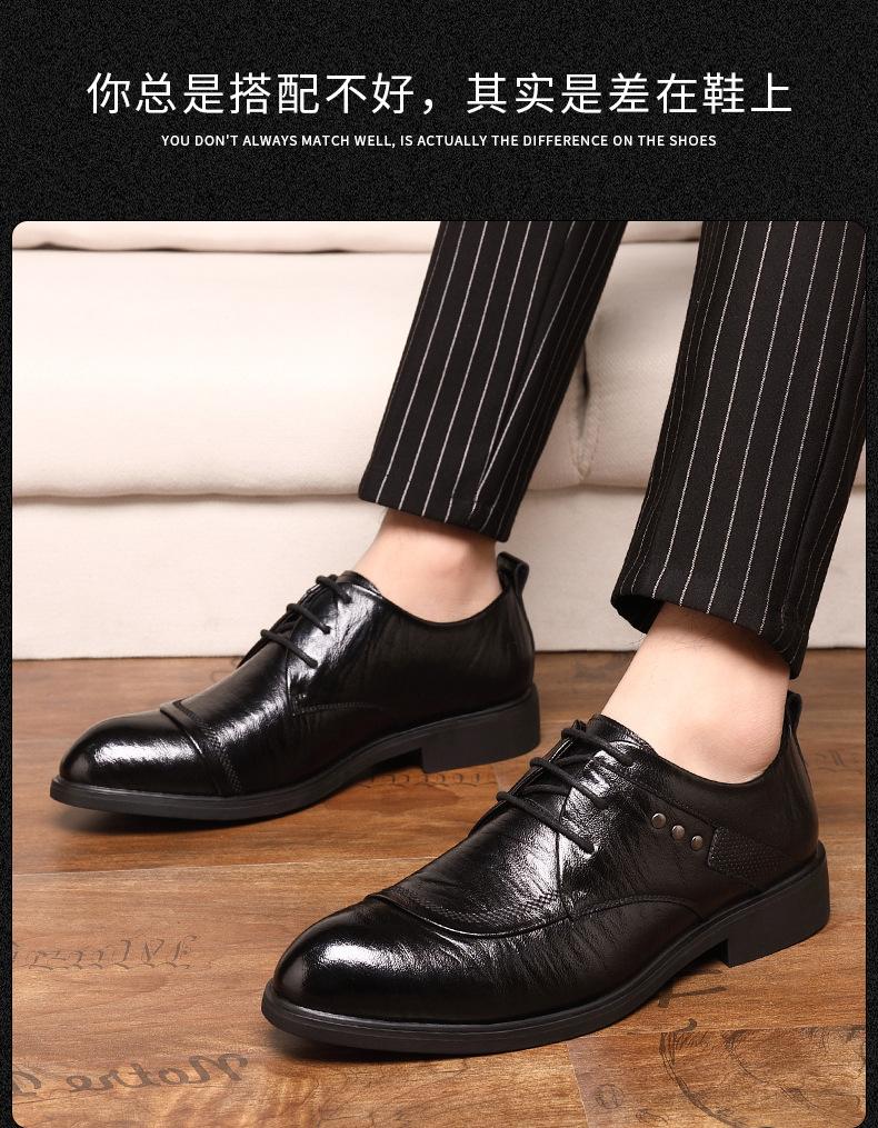 Zapatos de cuero de tendencia para hombre, zapatos de cuero casuales formales de negocios, zapatos de boda de cuero de vaca británico para novios, una generación de cabello