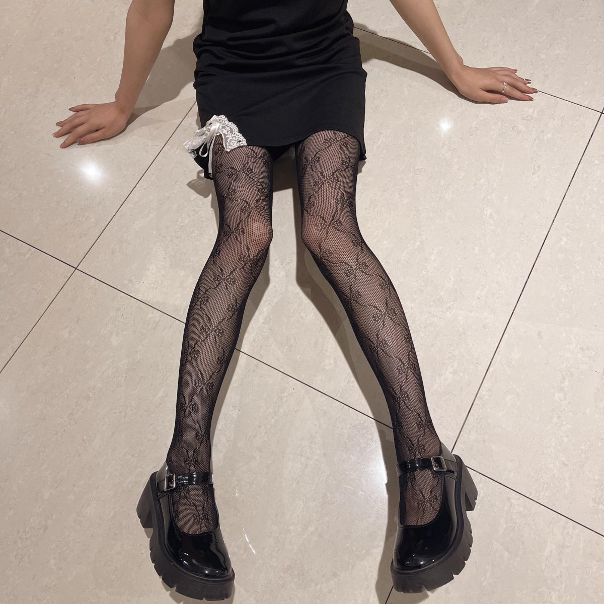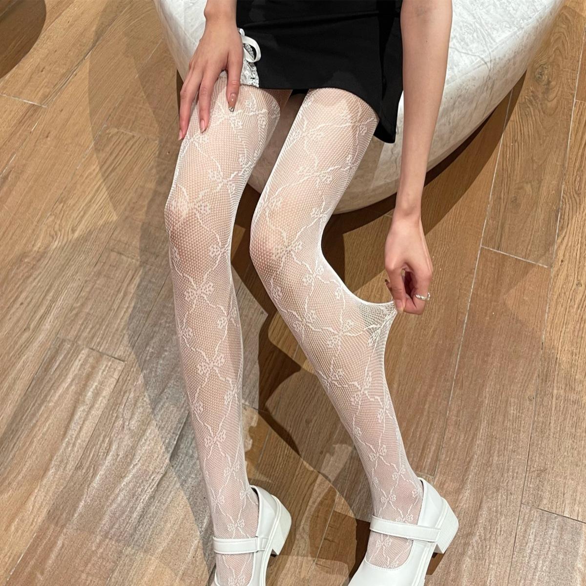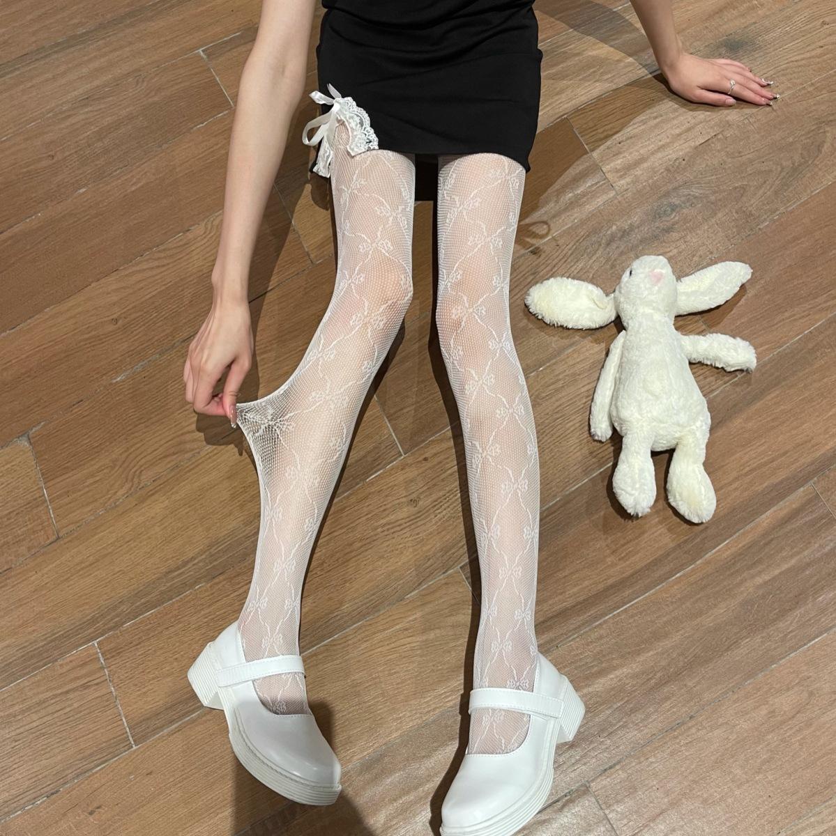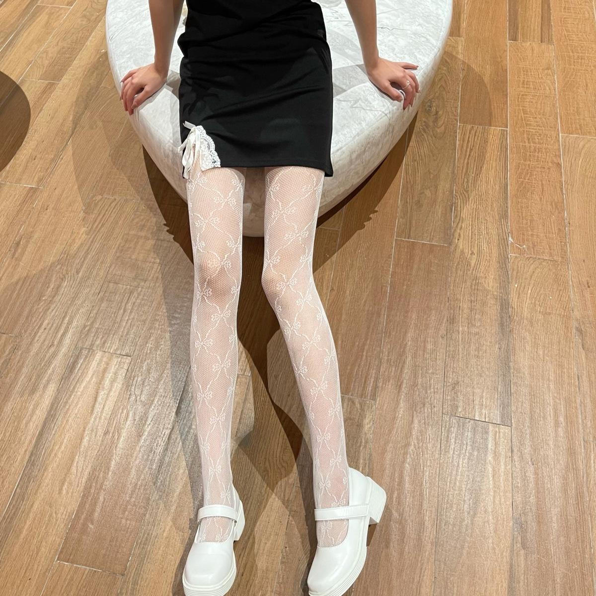 Compra Estilo Japonés ins Medias de Red Caladas con Jacquard de Lazo Blanco para Niña Negro Seda Ajustado Pantimedias Finas al por mayor en Joom.pro