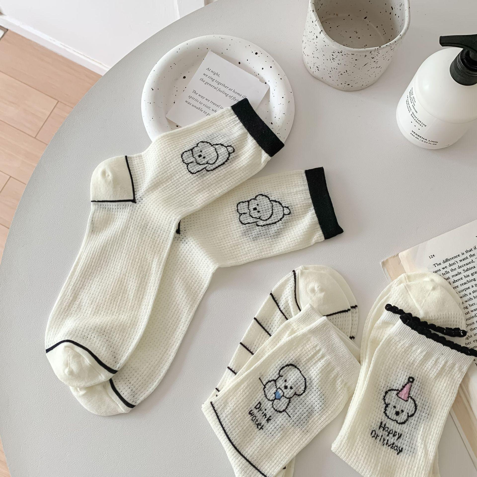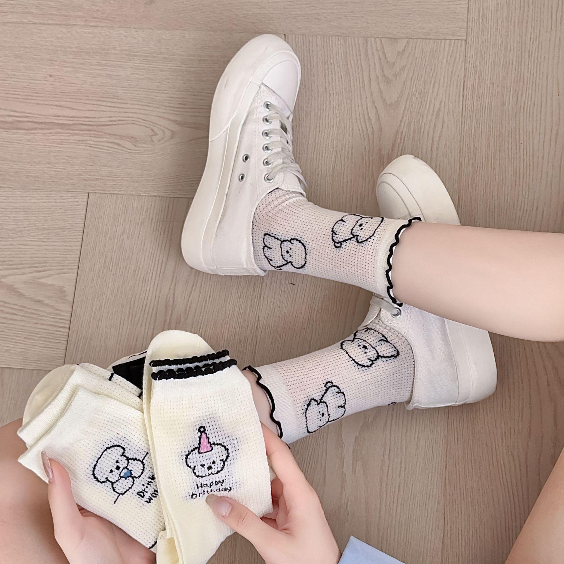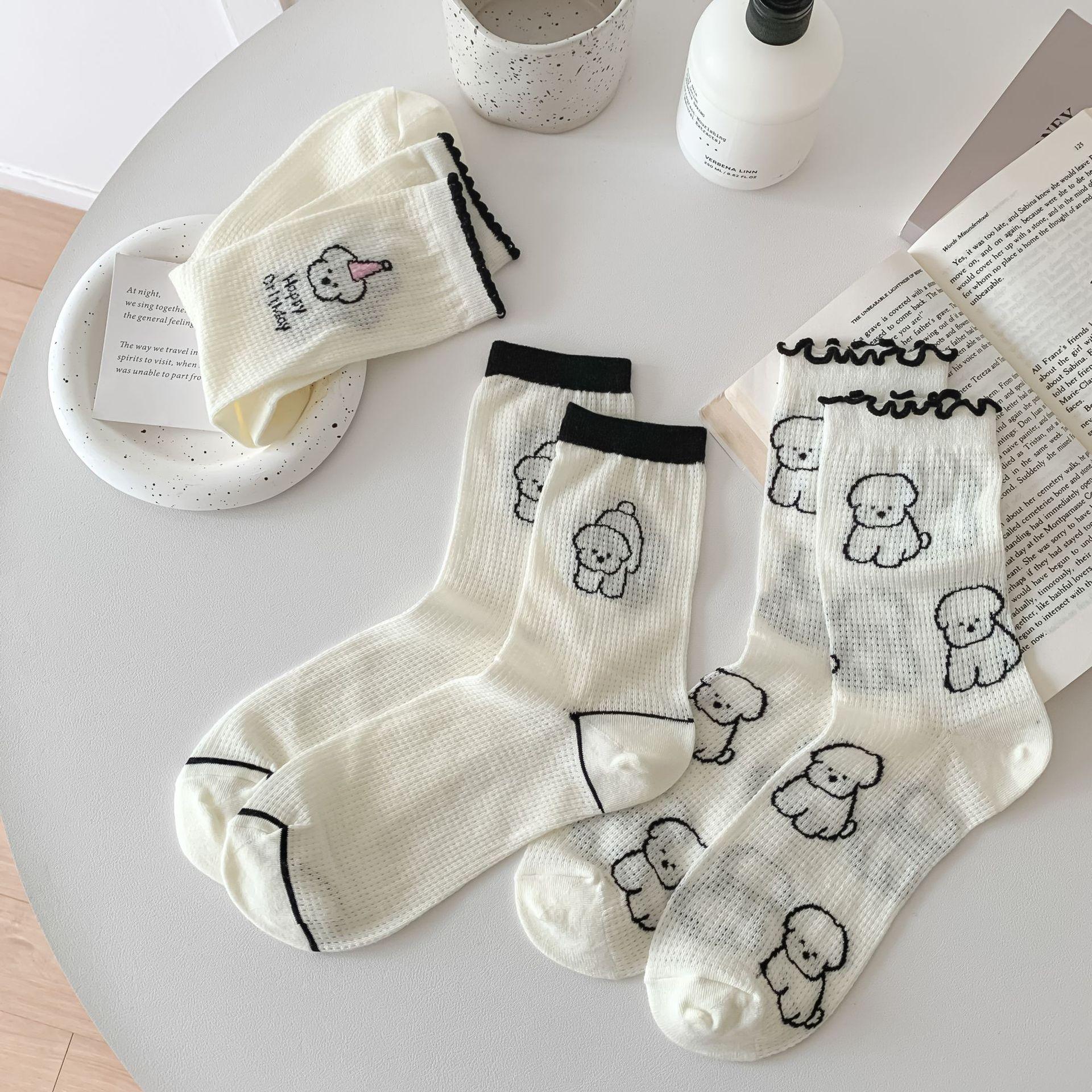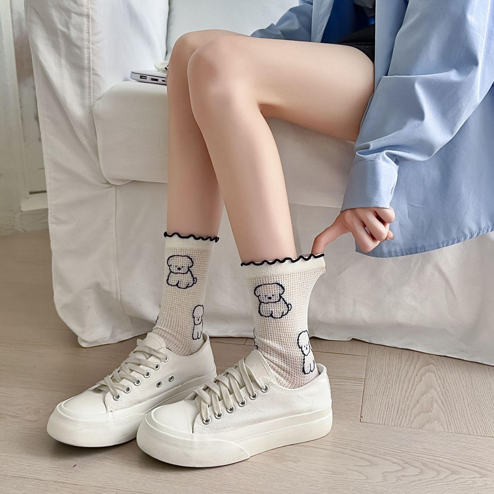 Calcetines blancos de cachorro para mujer, de verano, finos, japoneses, bonitos, de malla de encaje, para verano