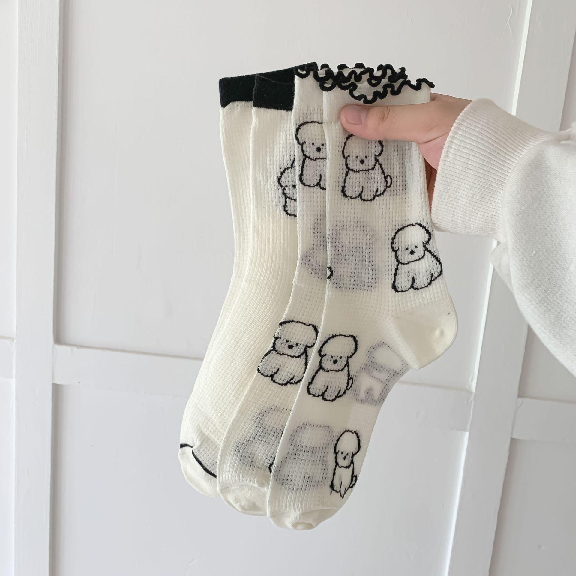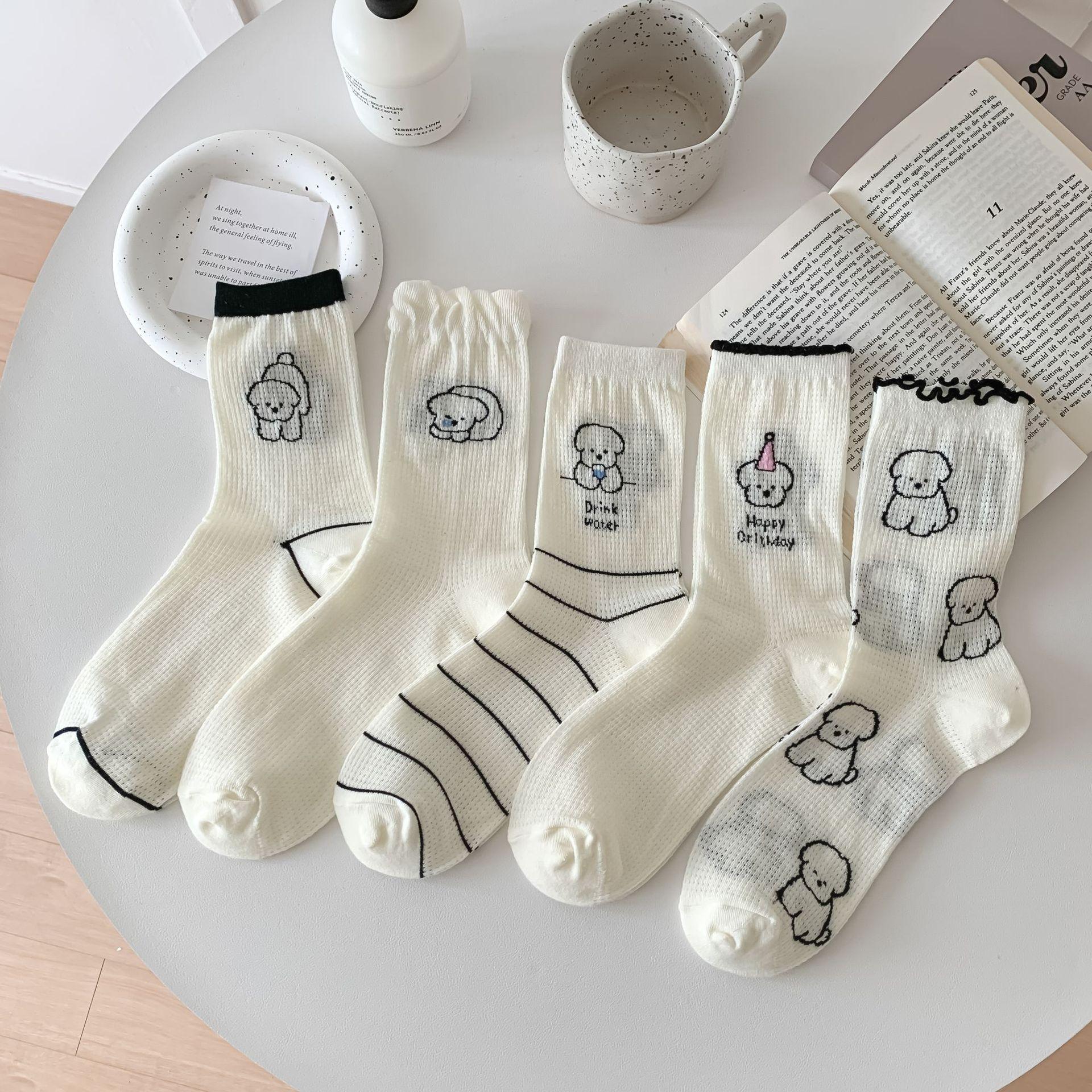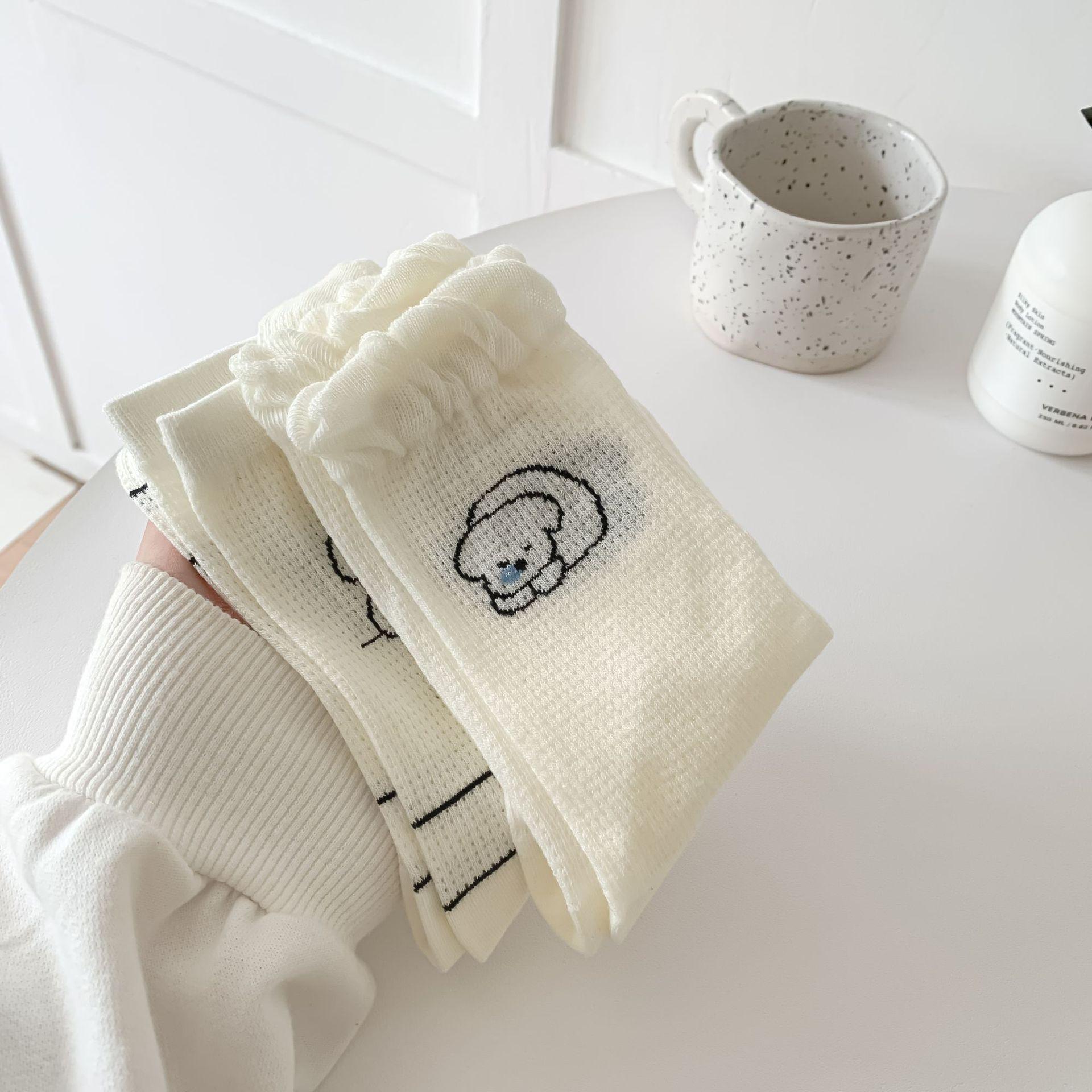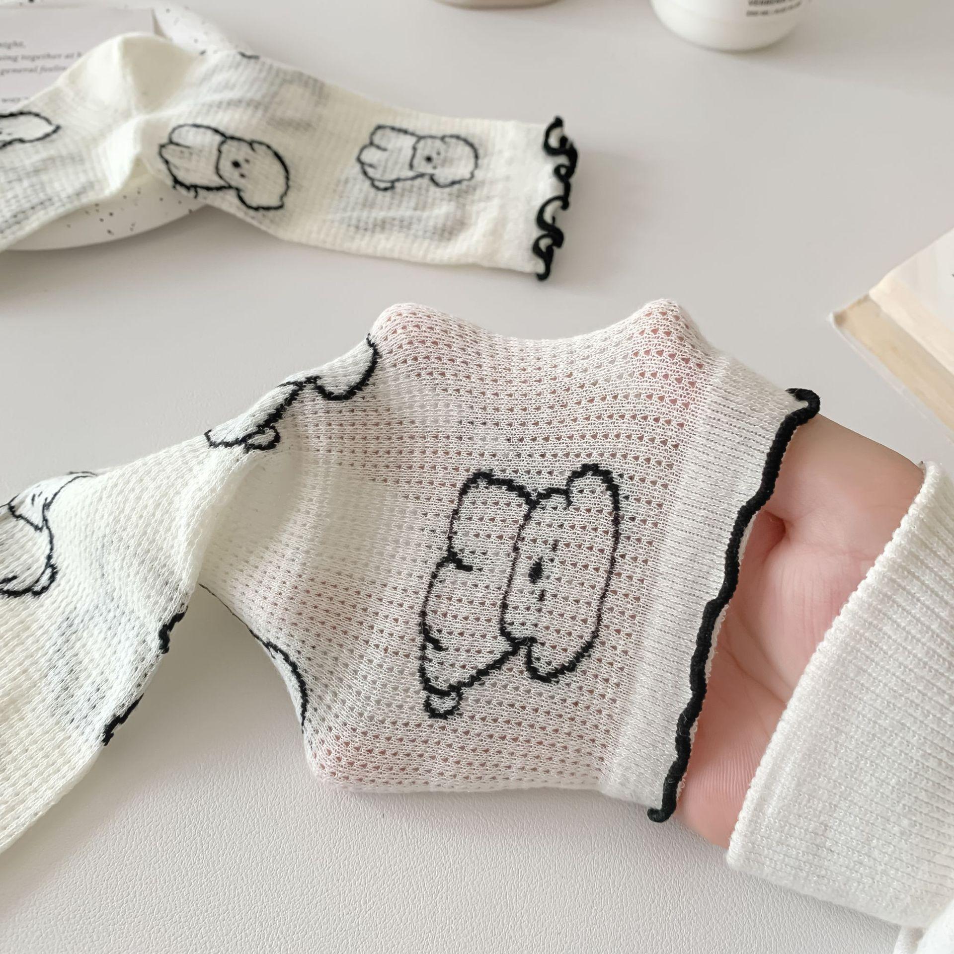Calcetines blancos de cachorro para mujer, de verano, finos, japoneses, bonitos, de malla de encaje, para verano