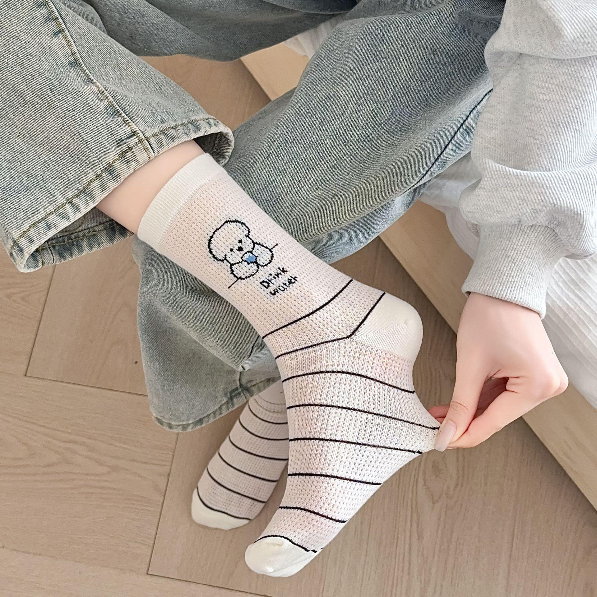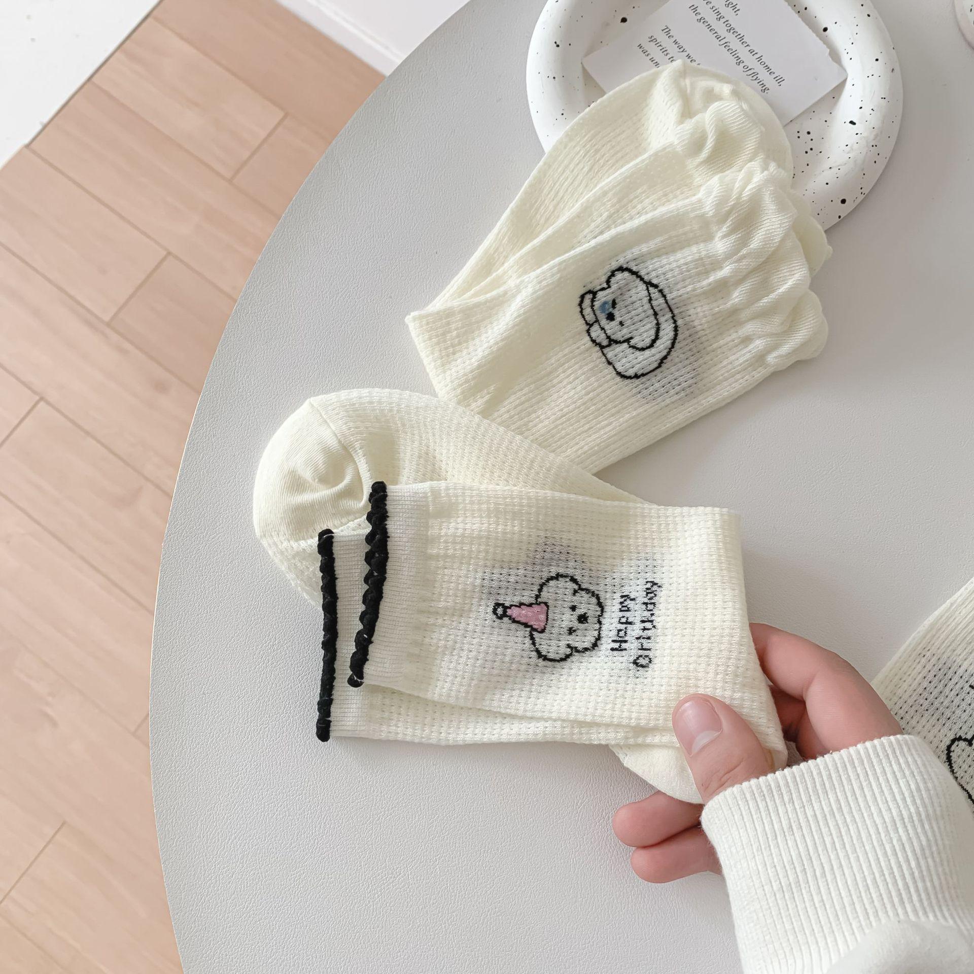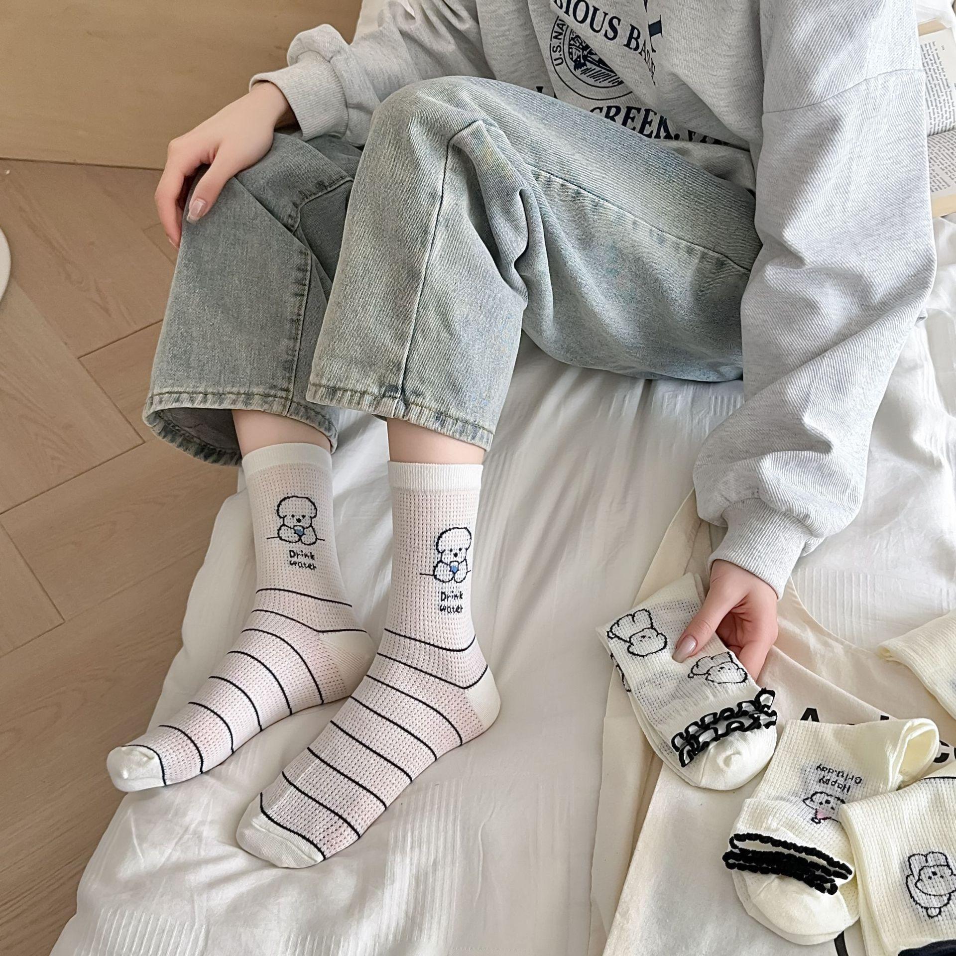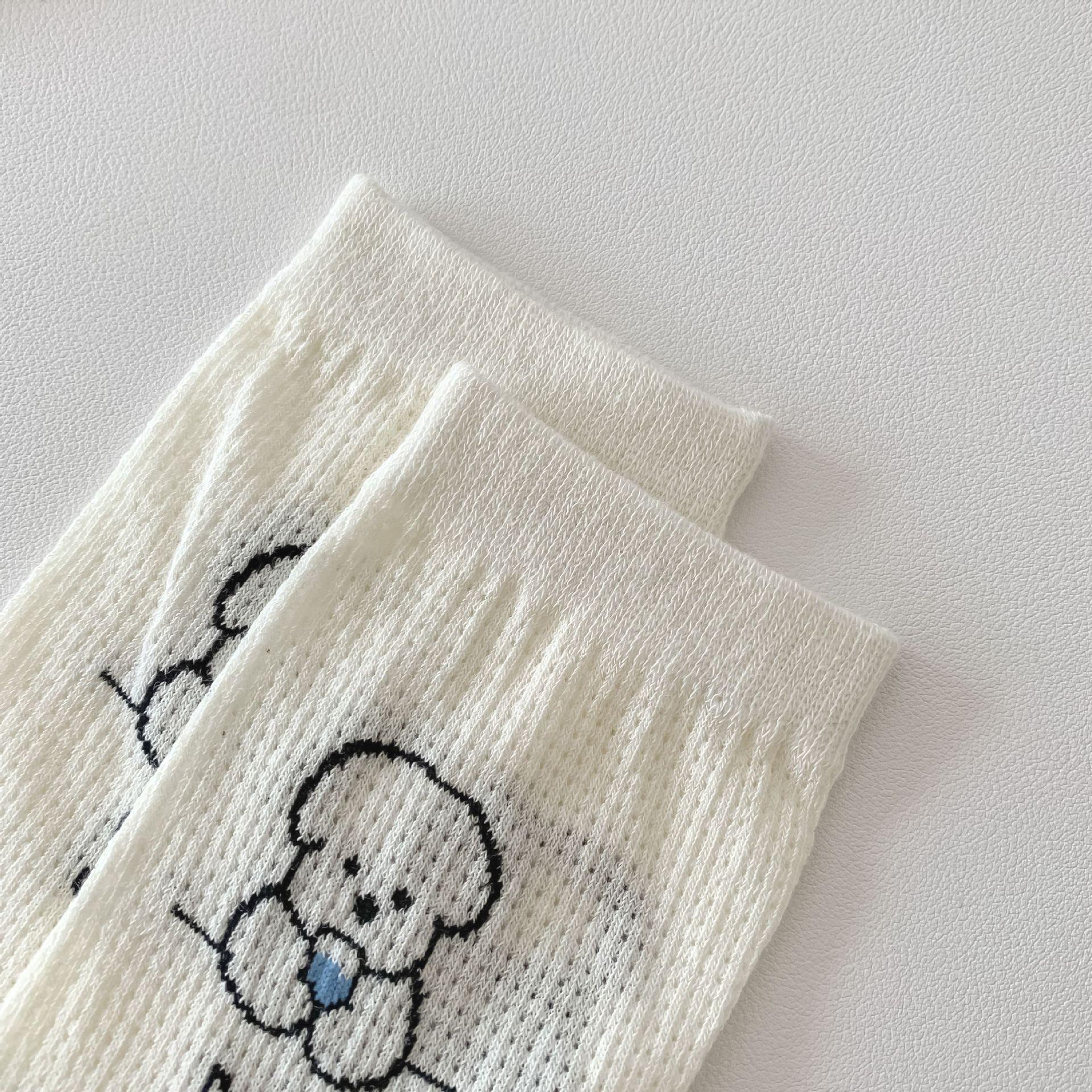 Calcetines blancos de cachorro para mujer, de verano, finos, japoneses, bonitos, de malla de encaje, para verano