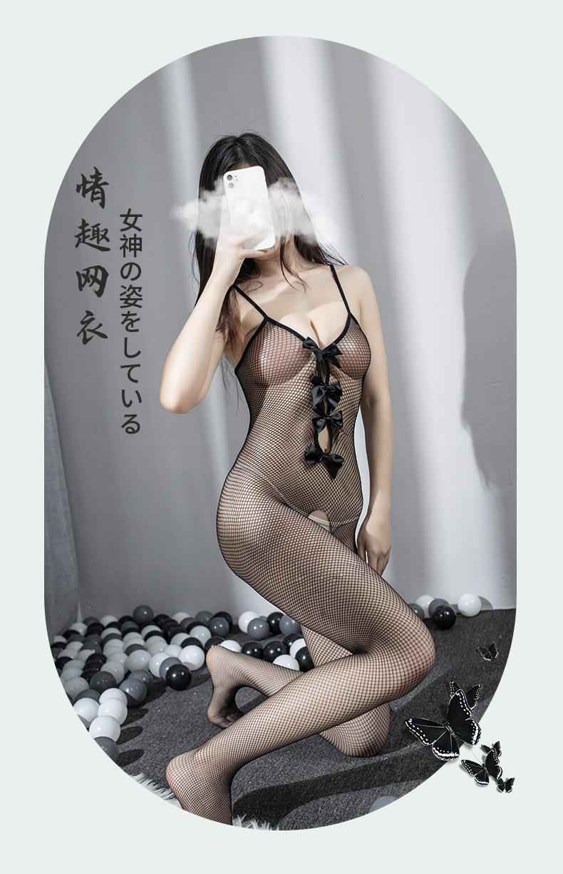 Ropa Interior Sexy Lazo Abierto Jacquard Medias de Red Traje Enterizo