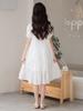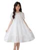 Ropa para Padres e Hijos Vestido de Manga Corta para Niñas Vestido de Princesa para Escuela Primaria Verano 2025 Estilo Chino Vestido Blanco para Niños Medianos y Grandes