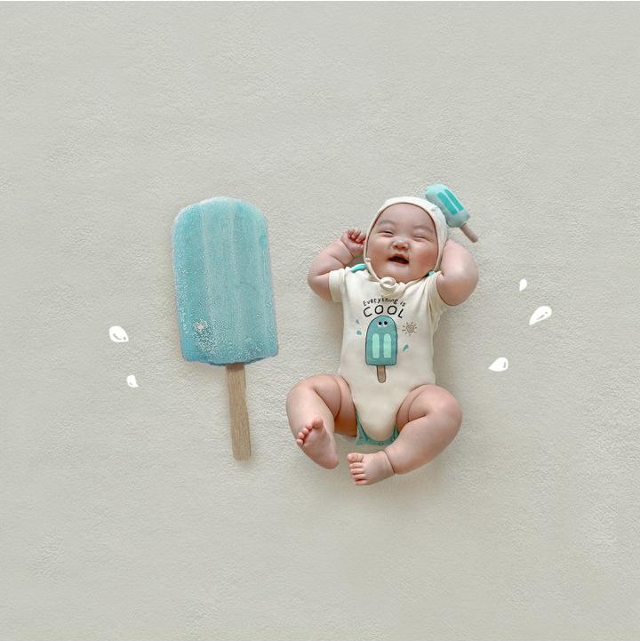 25 Nuevo Mameluco de Verano para Bebé Estilo Coreano Estampado de Helado Forma de Bolsa para Bebé Traje de Pedos