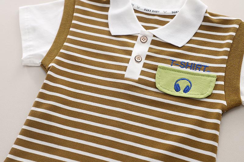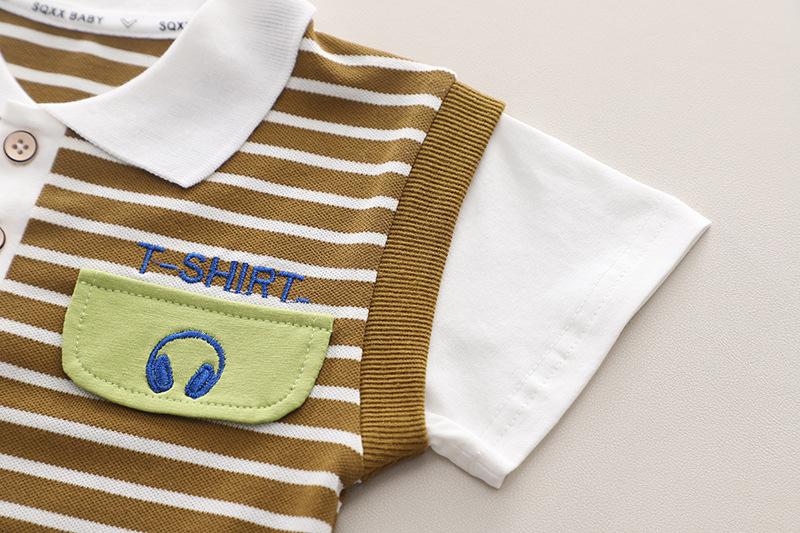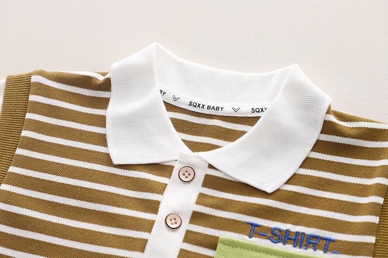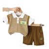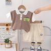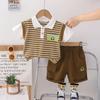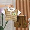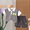 Traje de verano para niño 2024, nueva ropa de verano para bebés, traje de dos piezas de moda de manga corta a rayas de estilo occidental para niños