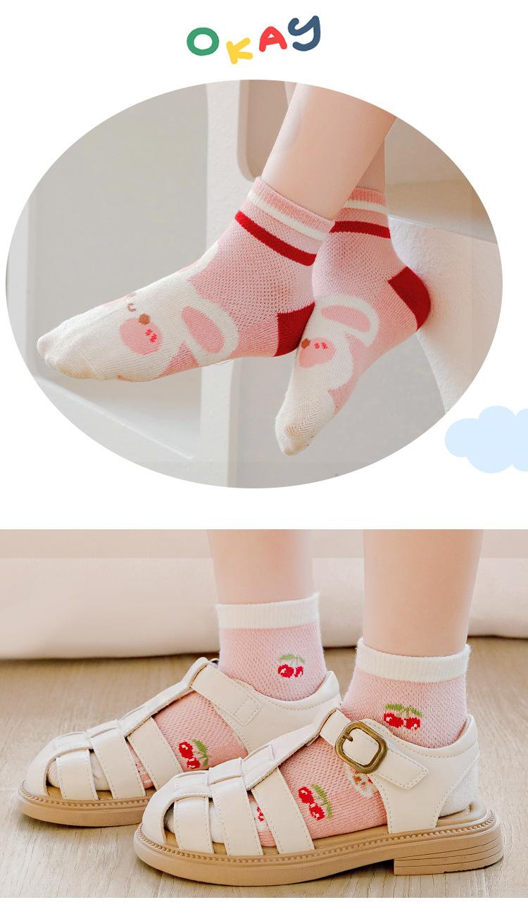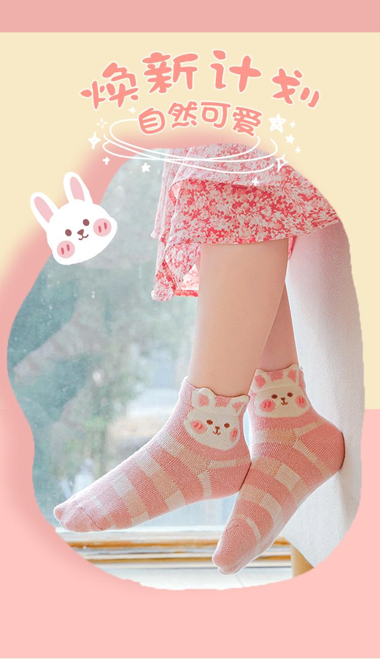 | Calcetines de verano para niñas, finos, de algodón con dibujos animados, de malla, para primavera y verano, con bonitos conejitos, transpirables, venta al por mayor |