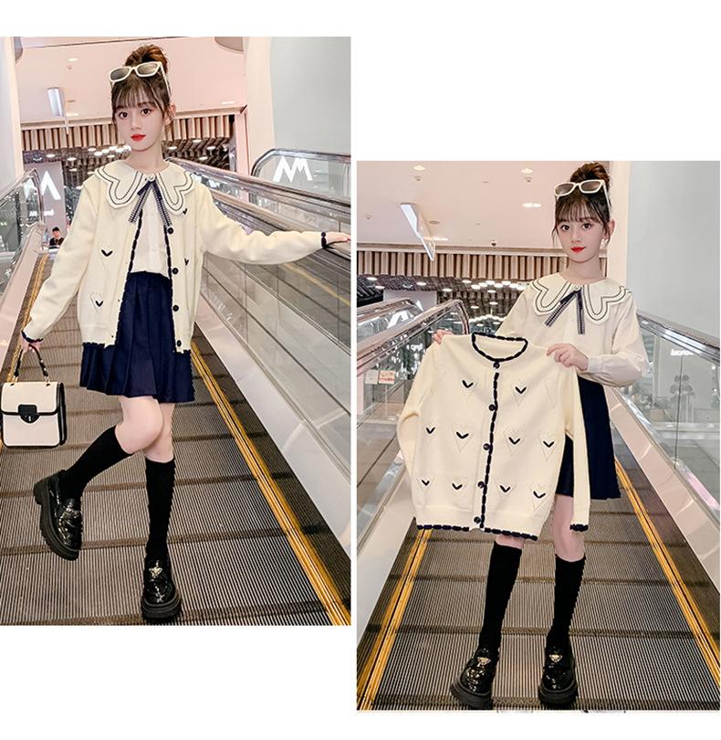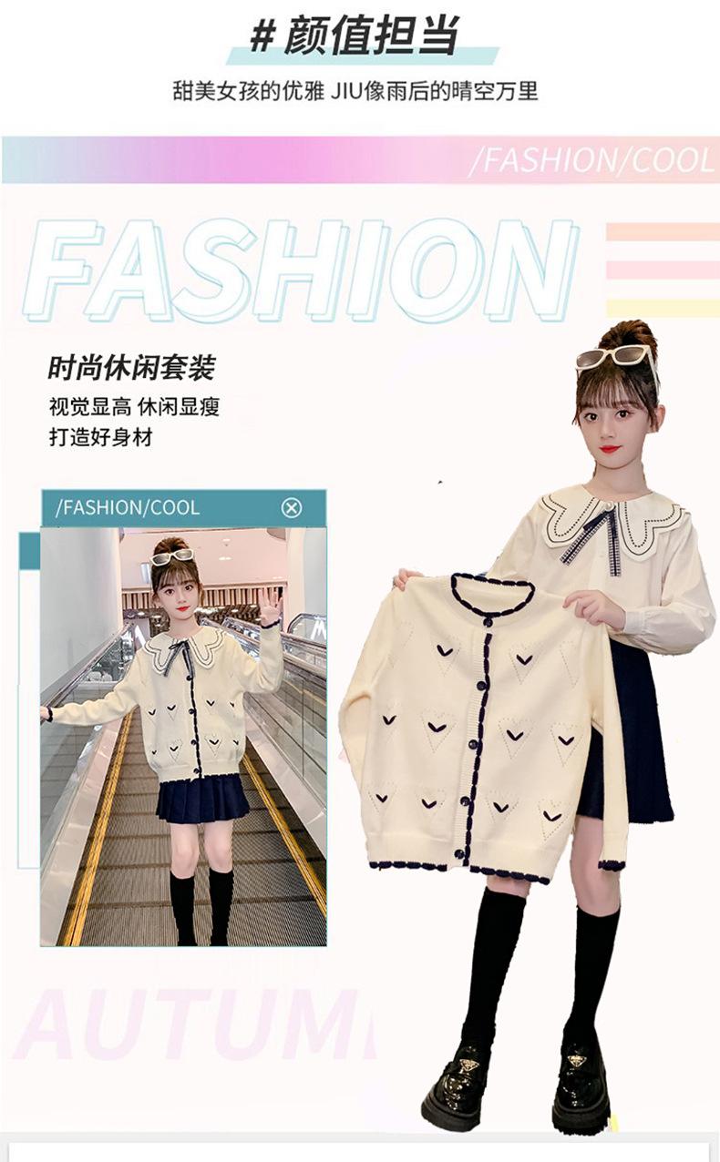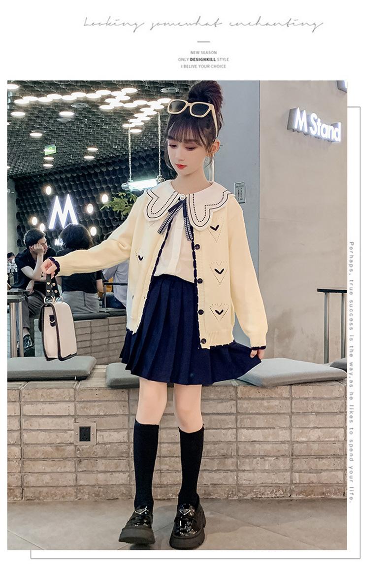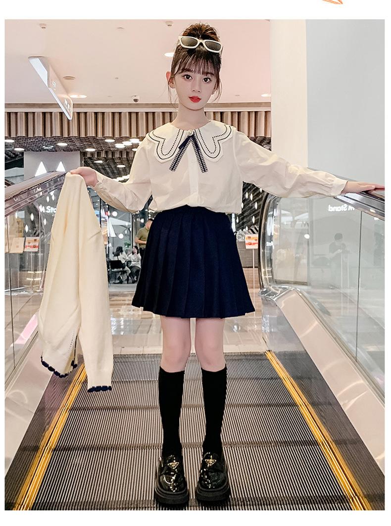 Shirt and skirt, Single cardigan, Sweater three-piece set
