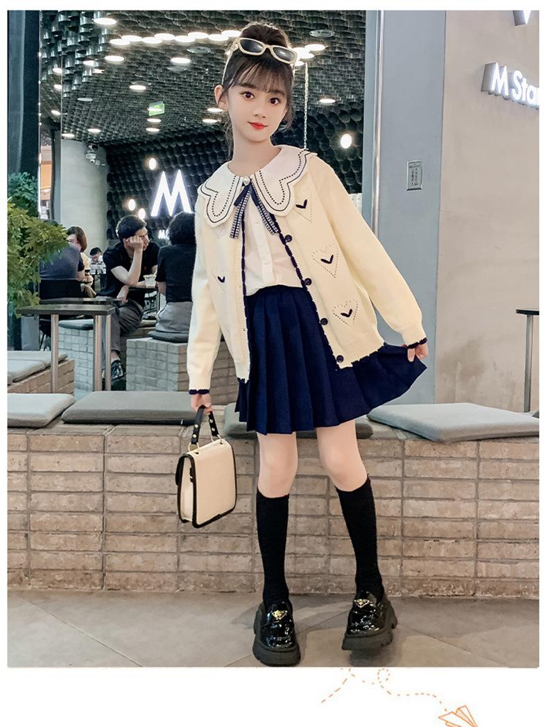 Traje JK para niñas Primavera y otoño 2023 nuevo estilo universitario para niños ropa de otoño falda plisada para niñas traje de tres piezas estilo occidental