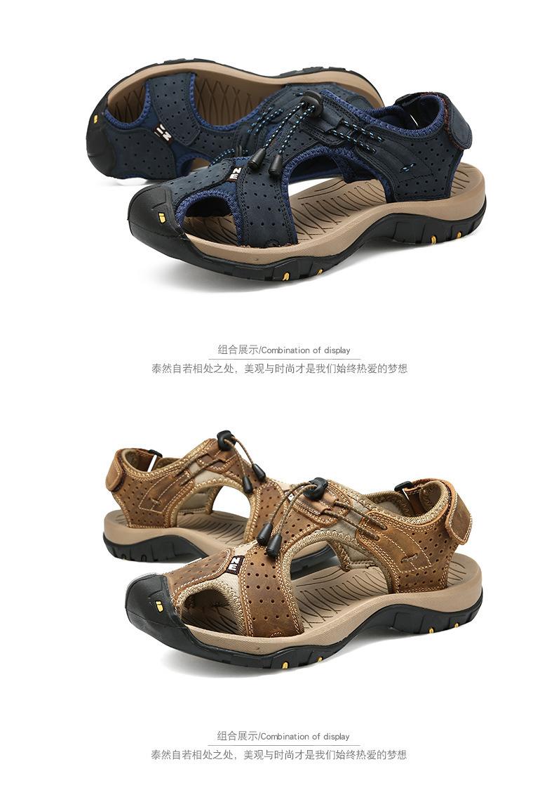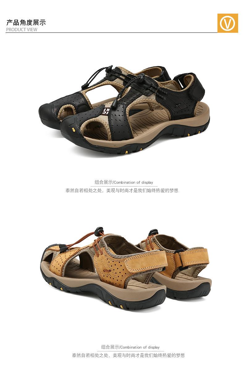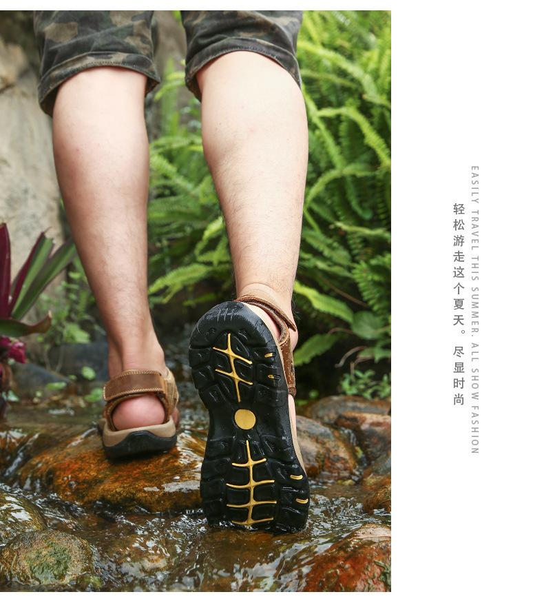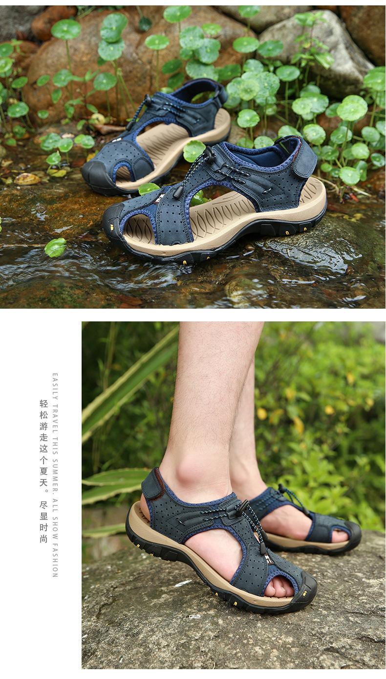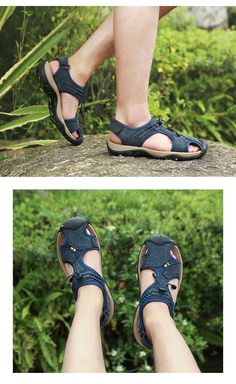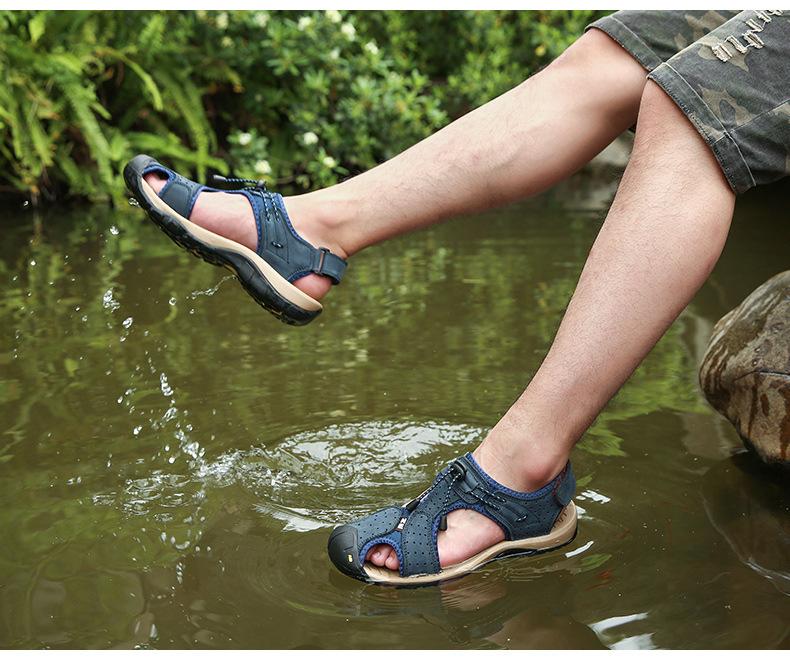 7236 Sandalias de cuero para hombre, zapatos de playa con puntera cosidos a mano, de gran tamaño, para deportes al aire libre, ocio, montañismo, zapatos con agujeros para hombres