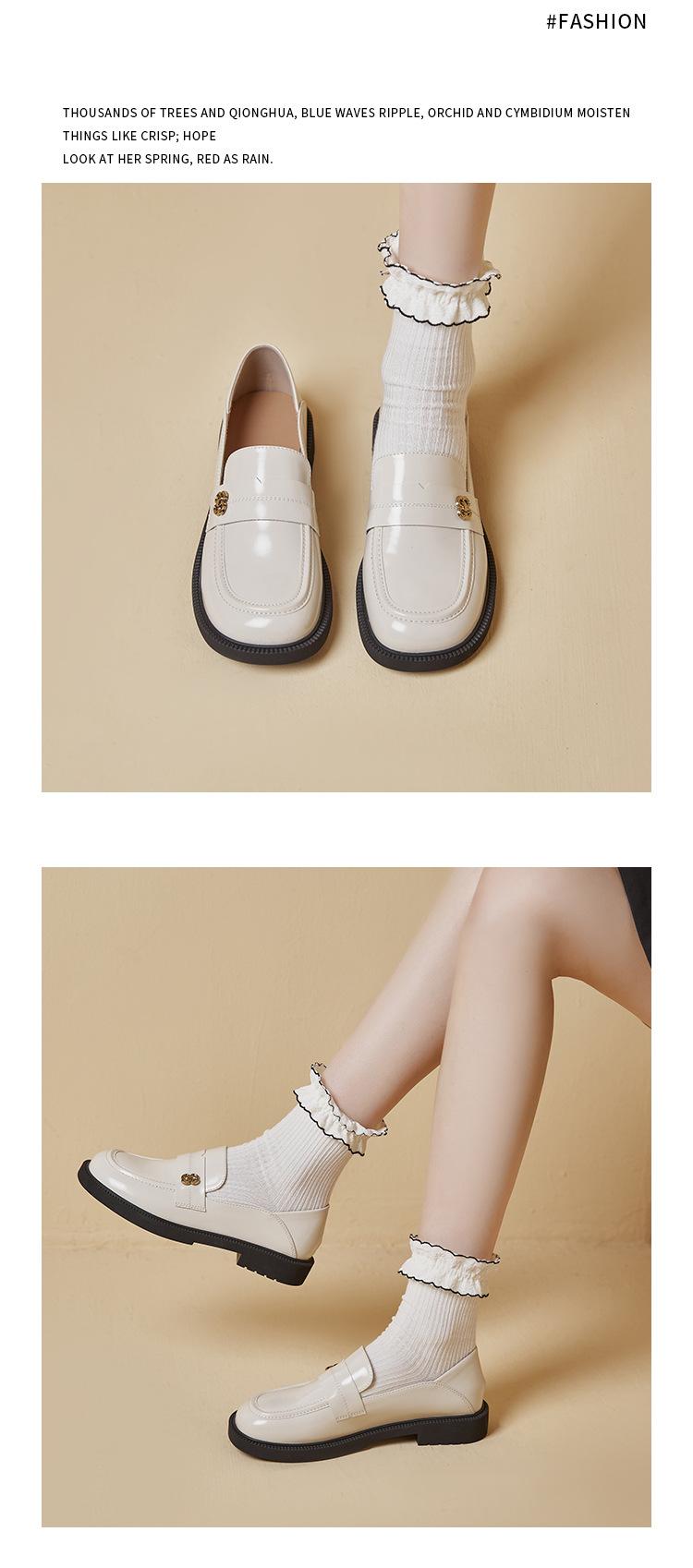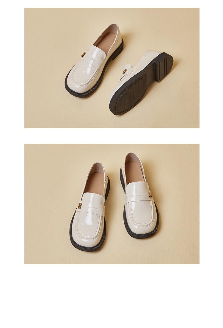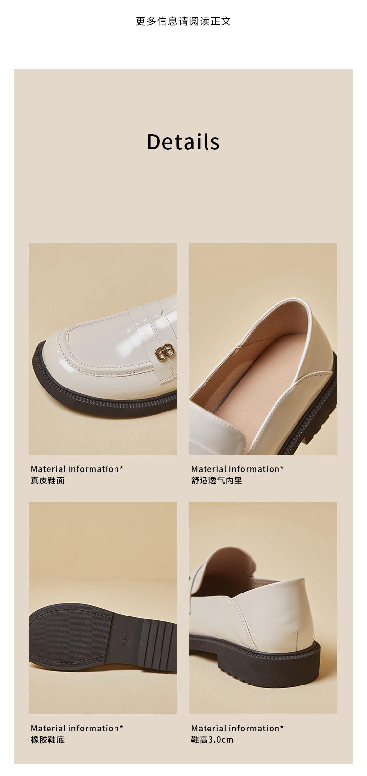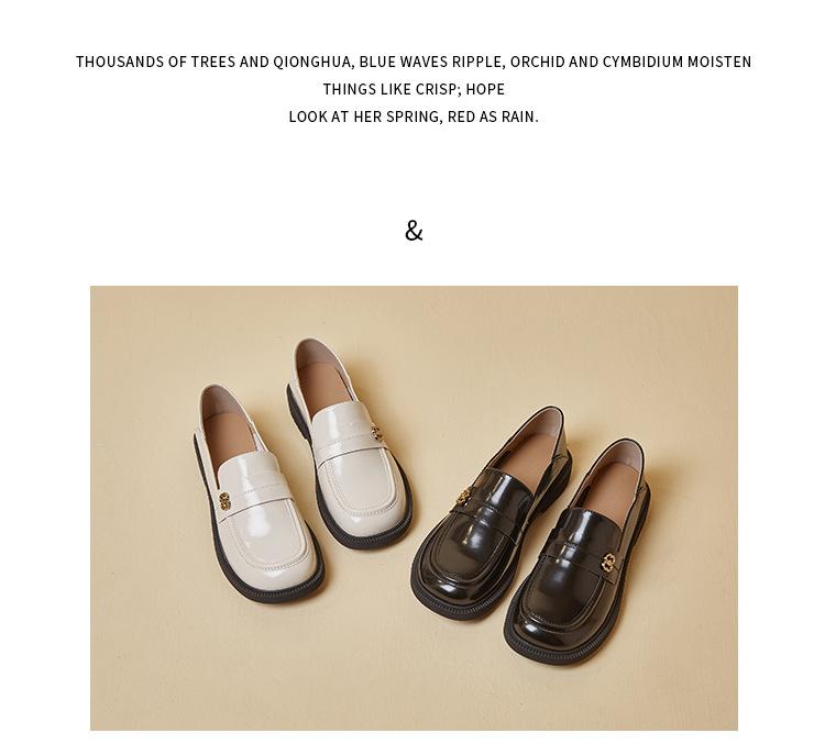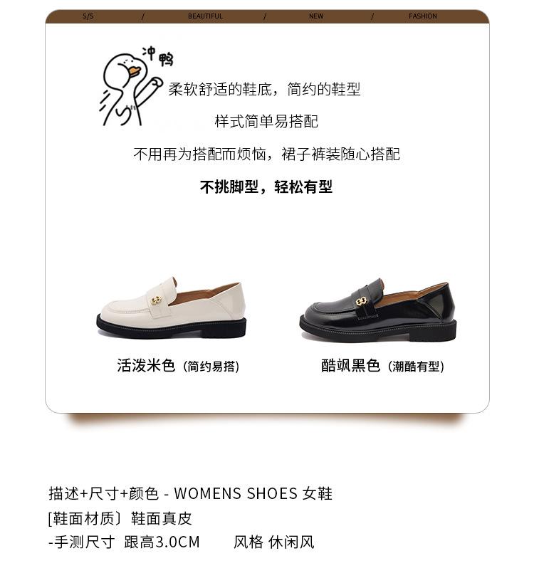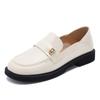 Flats Loafers de Cuero Genuino 2024 Primavera Nuevo Estilo Británico Blanco Zapatos Pequeños de Cuero Flats de Una Pierna Suela Suave Zapatos de Mujer