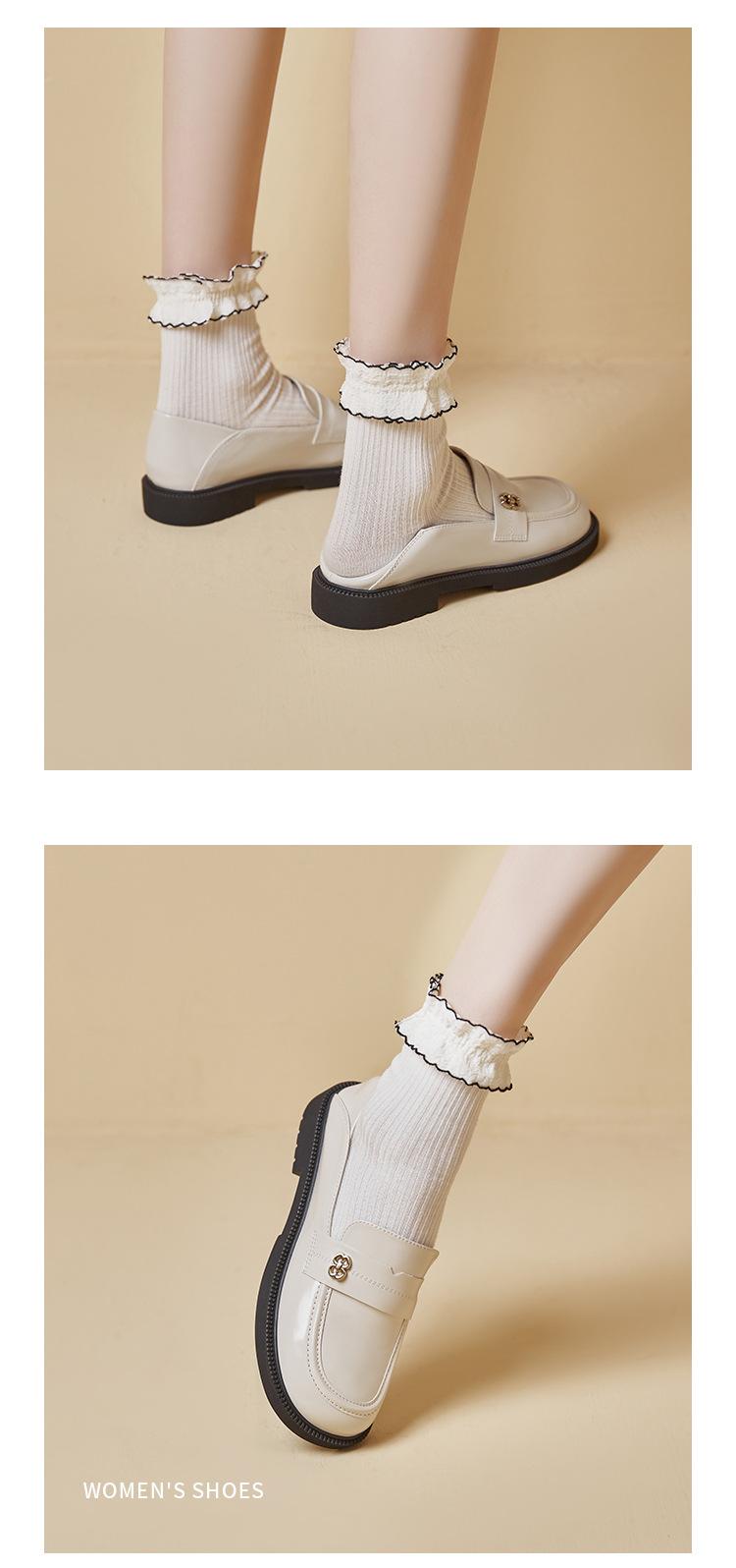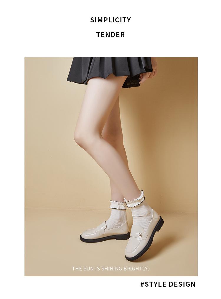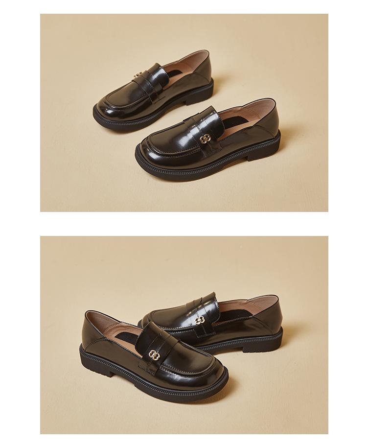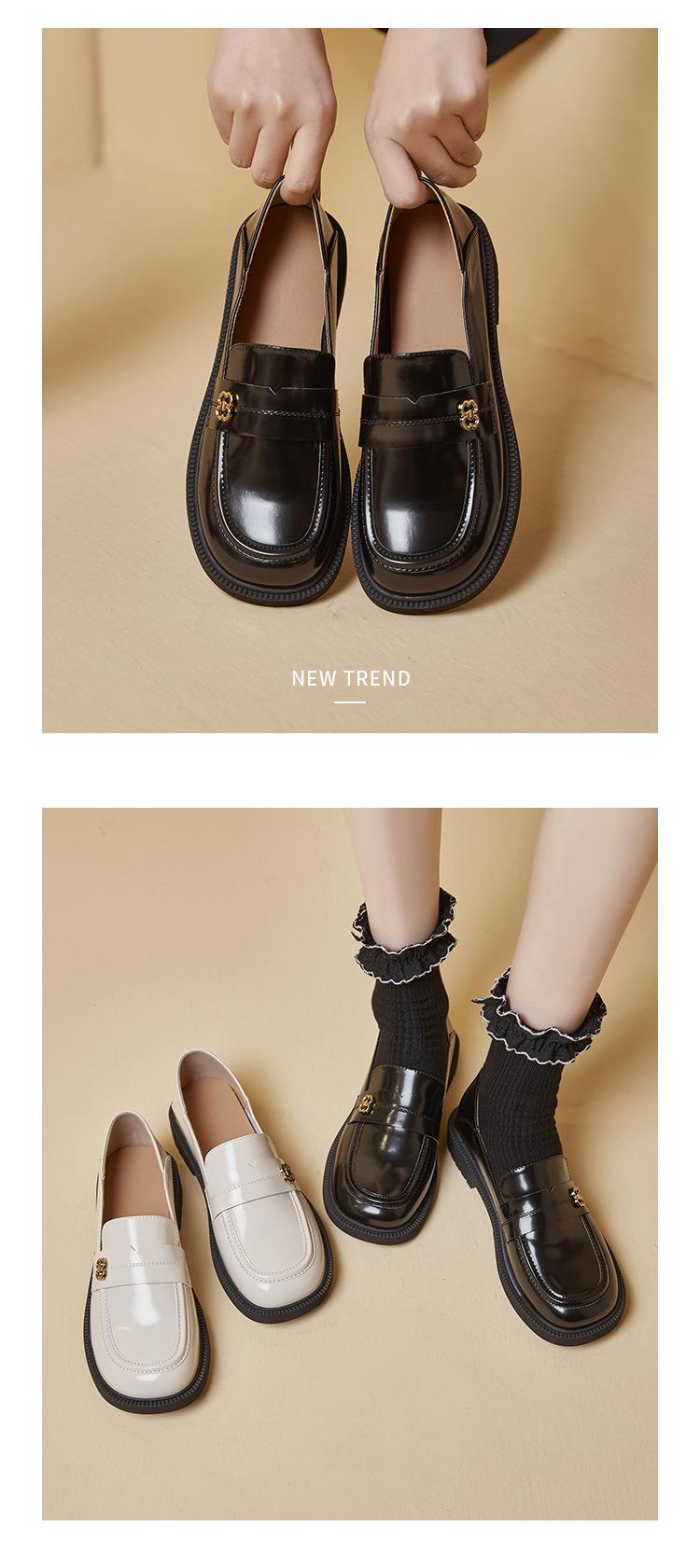 Flats Loafers de Cuero Genuino 2024 Primavera Nuevo Estilo Británico Blanco Zapatos Pequeños de Cuero Flats de Una Pierna Suela Suave Zapatos de Mujer