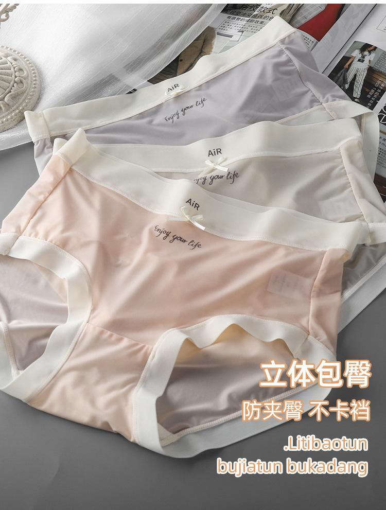 Ropa Interior de Seda de Hielo para Mujer Verano Delgada Sin Costuras Cintura Media Transpirable Sedosidad Desnuda Secado Rápido Estilo Chica Shorts Malla Máscara