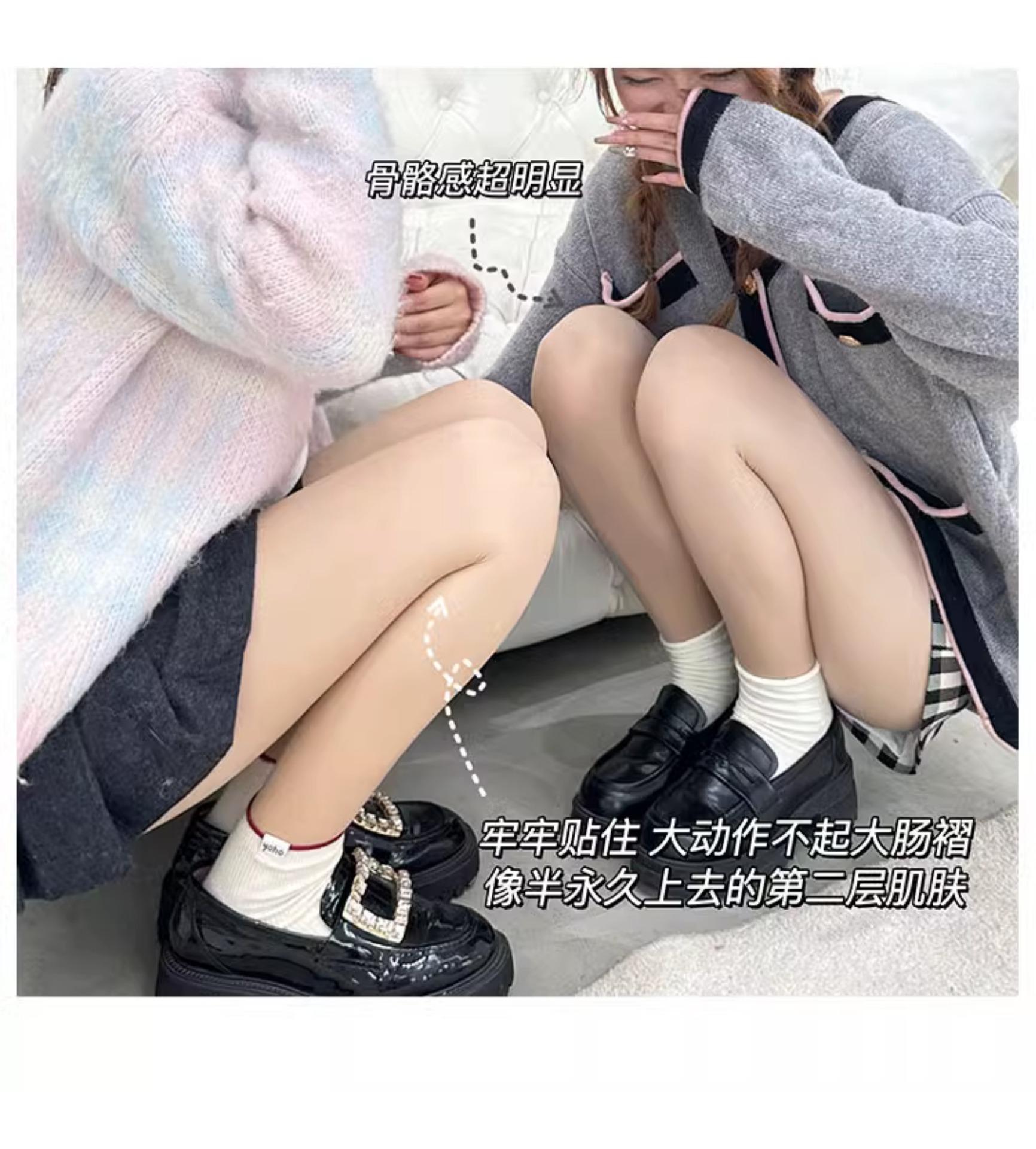 Medias para Mujer, Artefacto Color Carne para Piernas Desnudas, Calcetines Nettle con Brillo de Agua, Leggings Nude de Doble Capa, Forrados con Felpa, Pantimedias de Otoño e Invierno