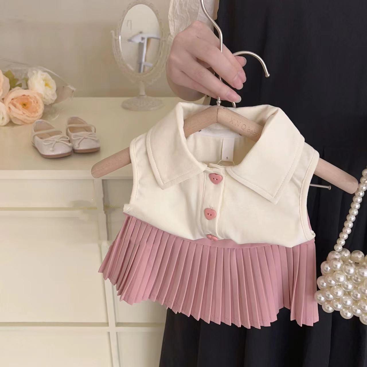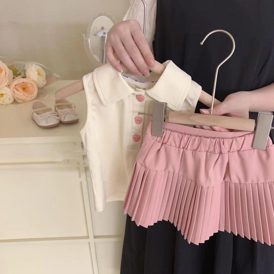 Traje de Verano para Niñas 2025 Nuevo Chaleco Polo para Bebé Niña Falda Plisada de Moda para Niños Conjunto Casual de Dos Piezas