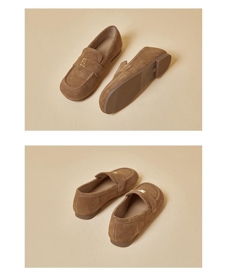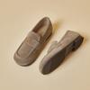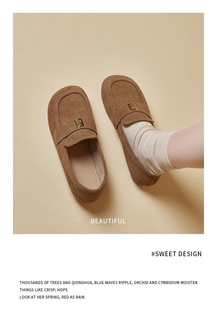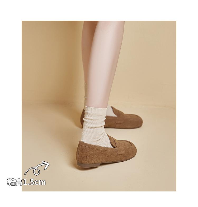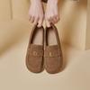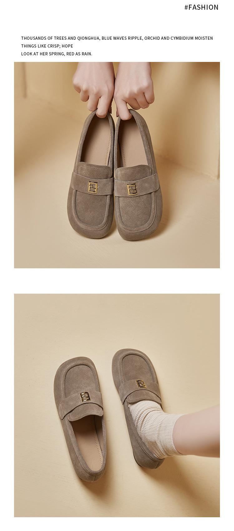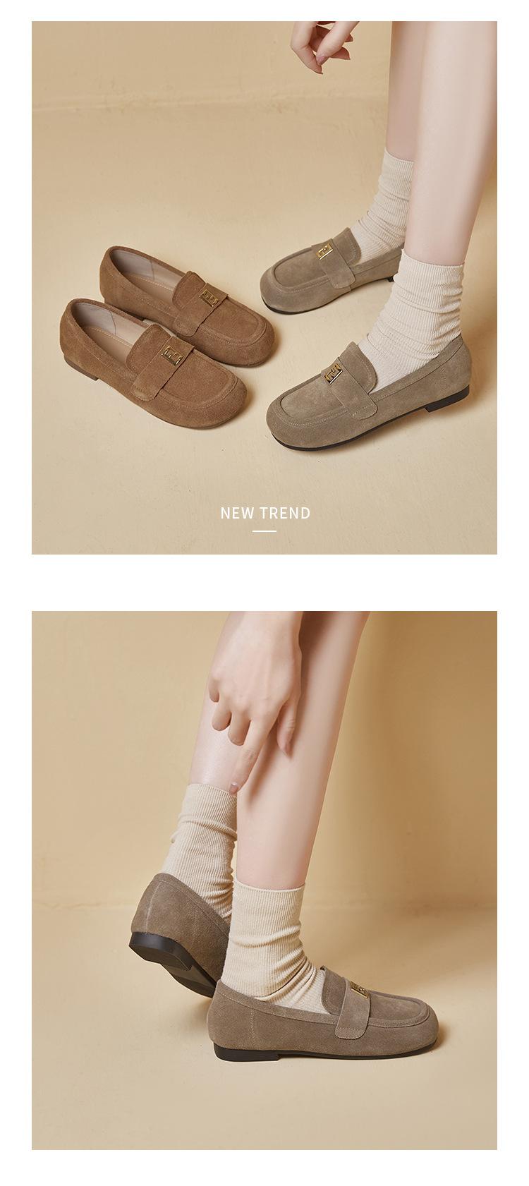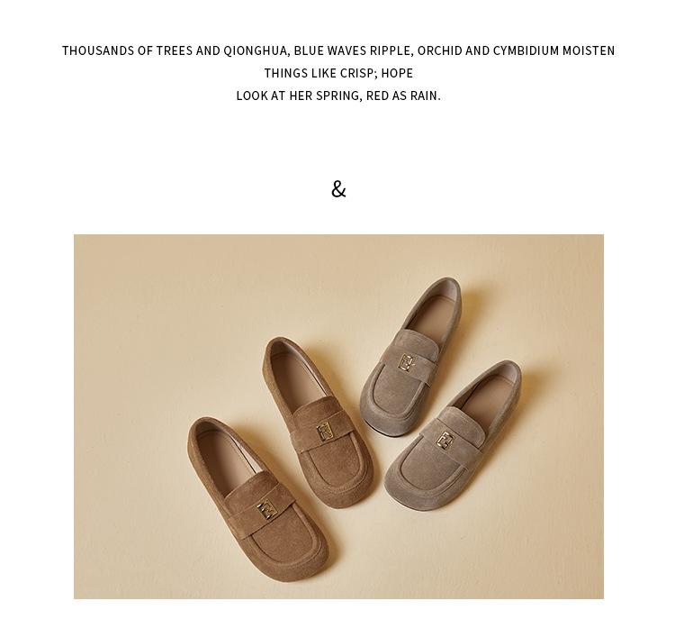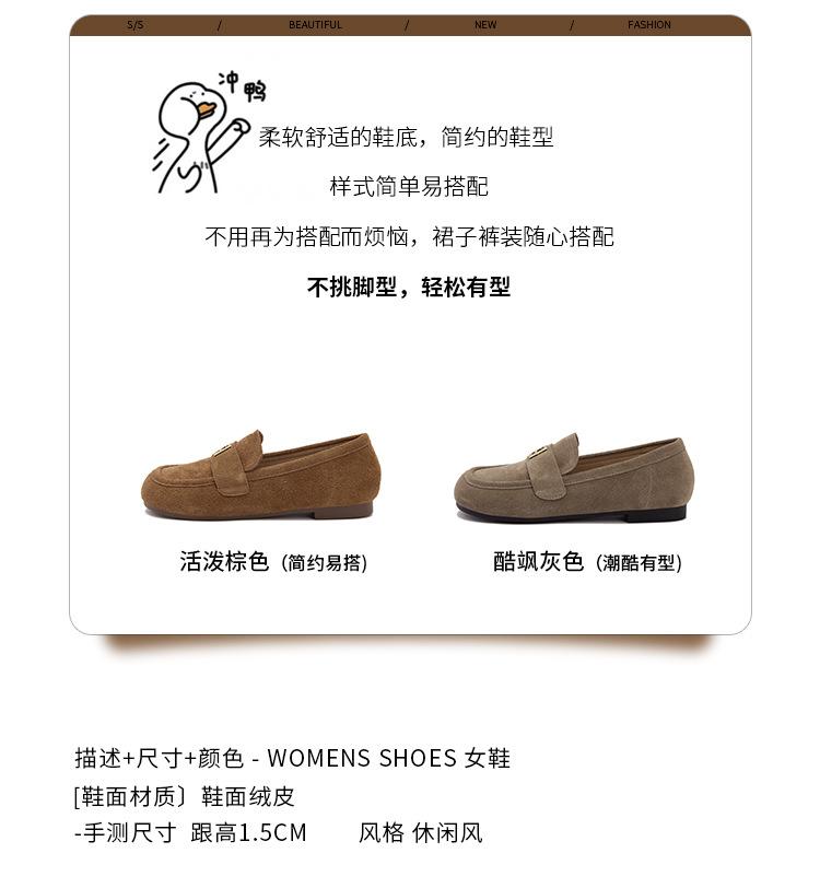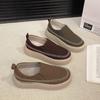Zapatos tipo gorro de cuero genuino para mujer 2024 Primavera Nuevo estilo Slip-On Suela plana Versátiles Zapatos casuales de ante