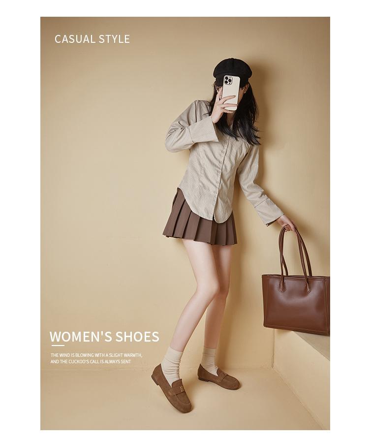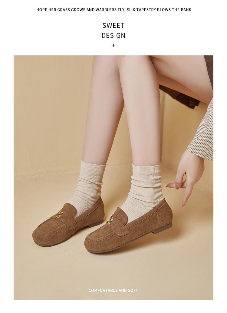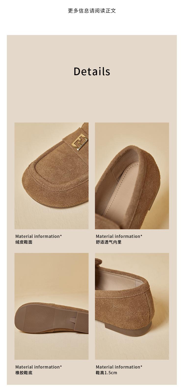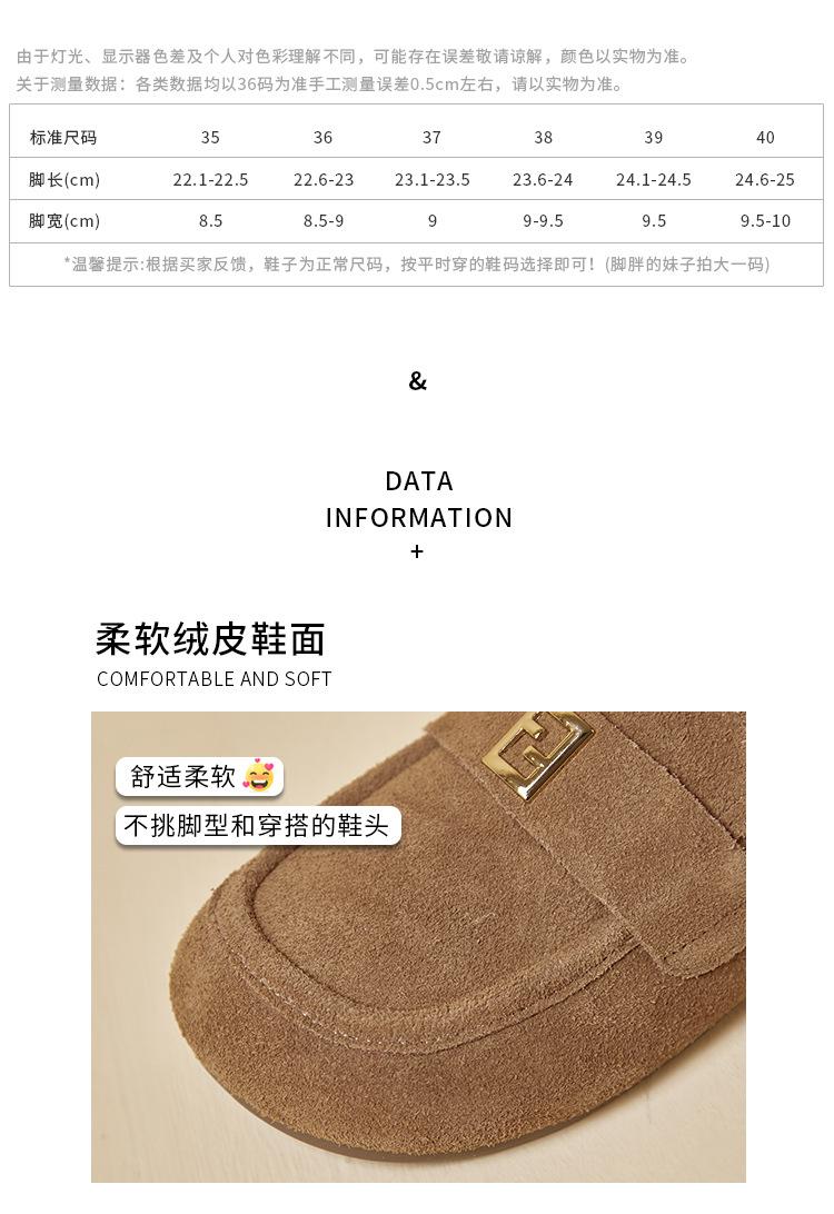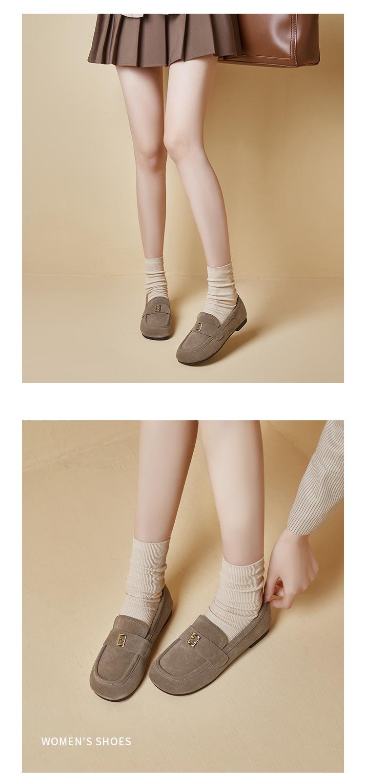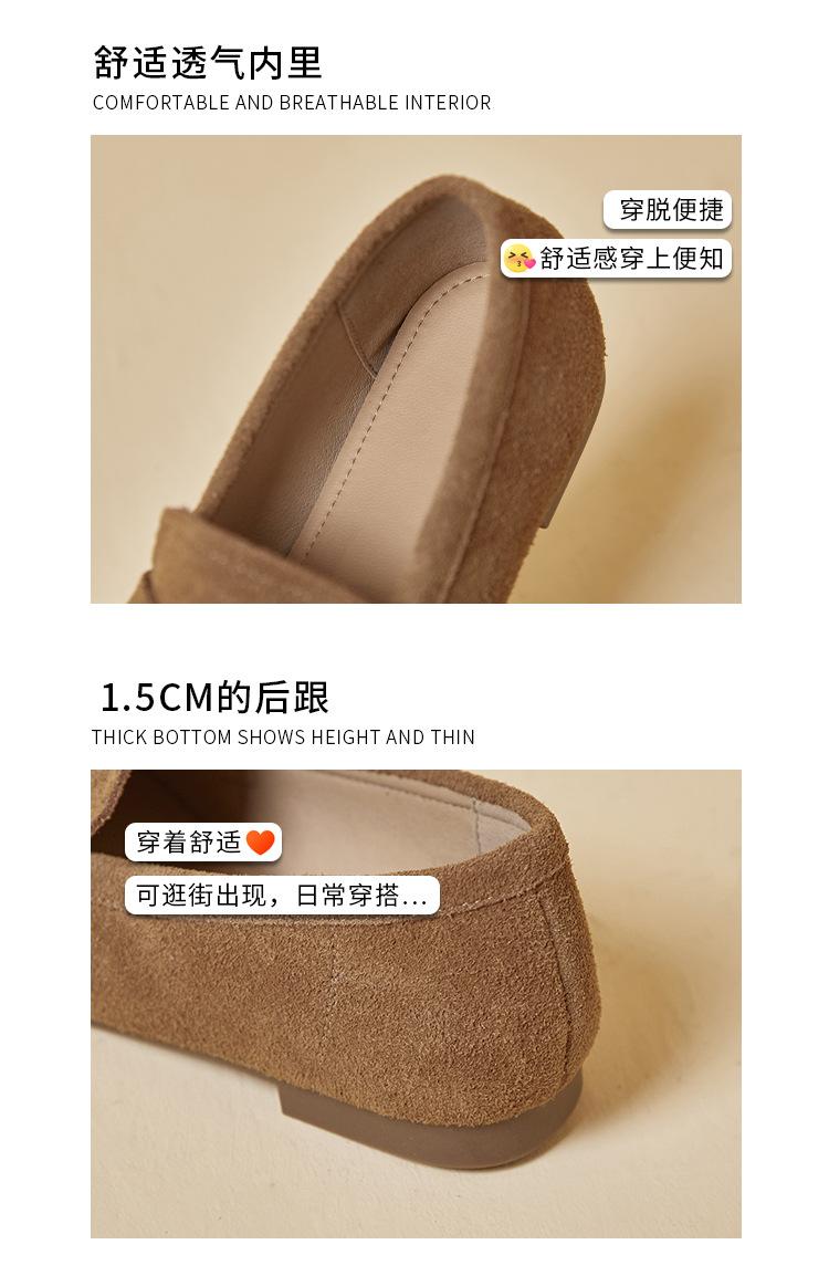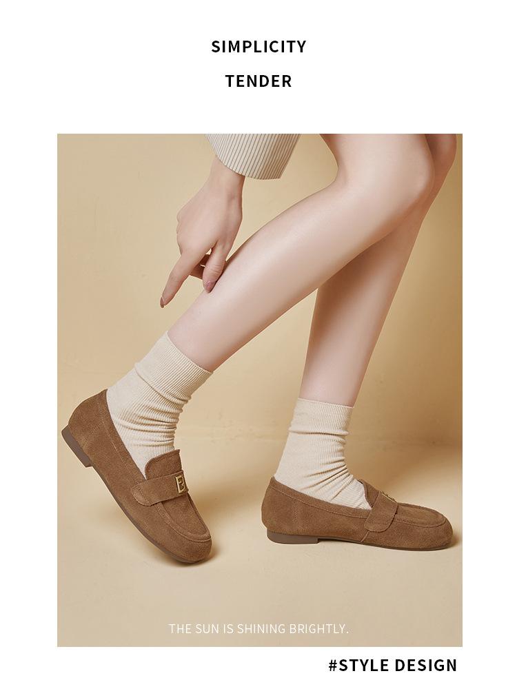 Zapatos tipo gorro de cuero genuino para mujer 2024 Primavera Nuevo estilo Slip-On Suela plana Versátiles Zapatos casuales de ante