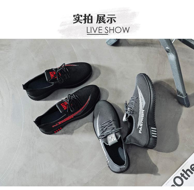 Zapatos para hombre, otoño 2002, nuevos zapatos deportivos casuales transpirables de encaje tejido volador de comercio exterior transfronterizo para hombre, venta al por mayor.