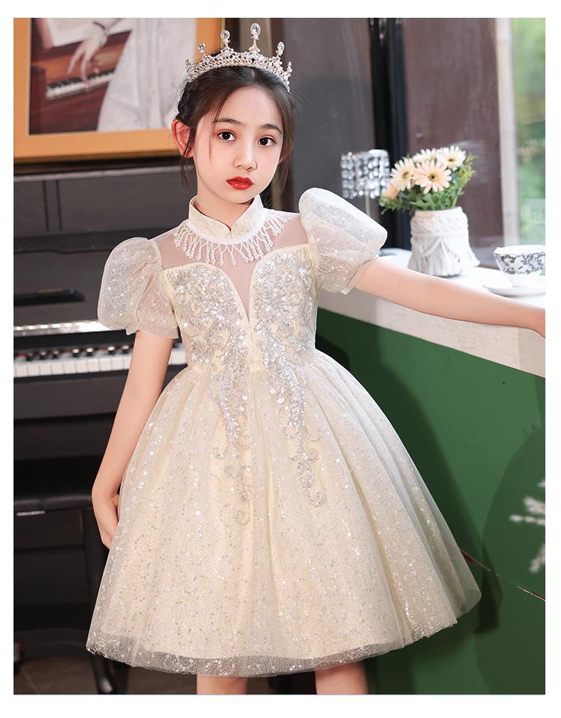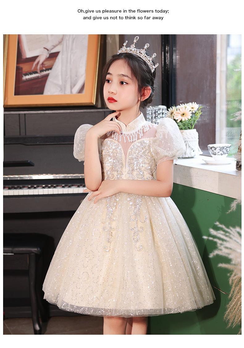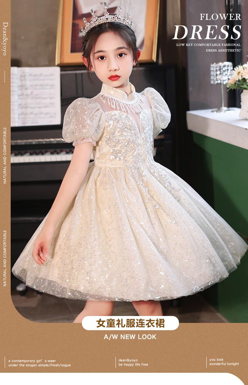 Vestido de Niña Vestido de Princesa 2025 Verano Nuevo Ropa para Niños Vestido Elegante Falda Ropa para Actuación de Piano para Niña