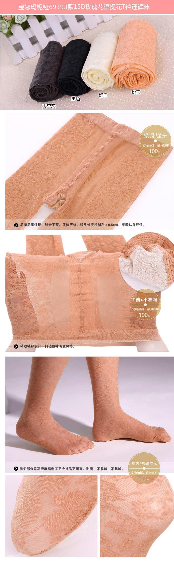Medias de jacquard con entrepierna en T y diseño de flores rosas Baona Mania con franqueo completo de 100 yuanes B69193