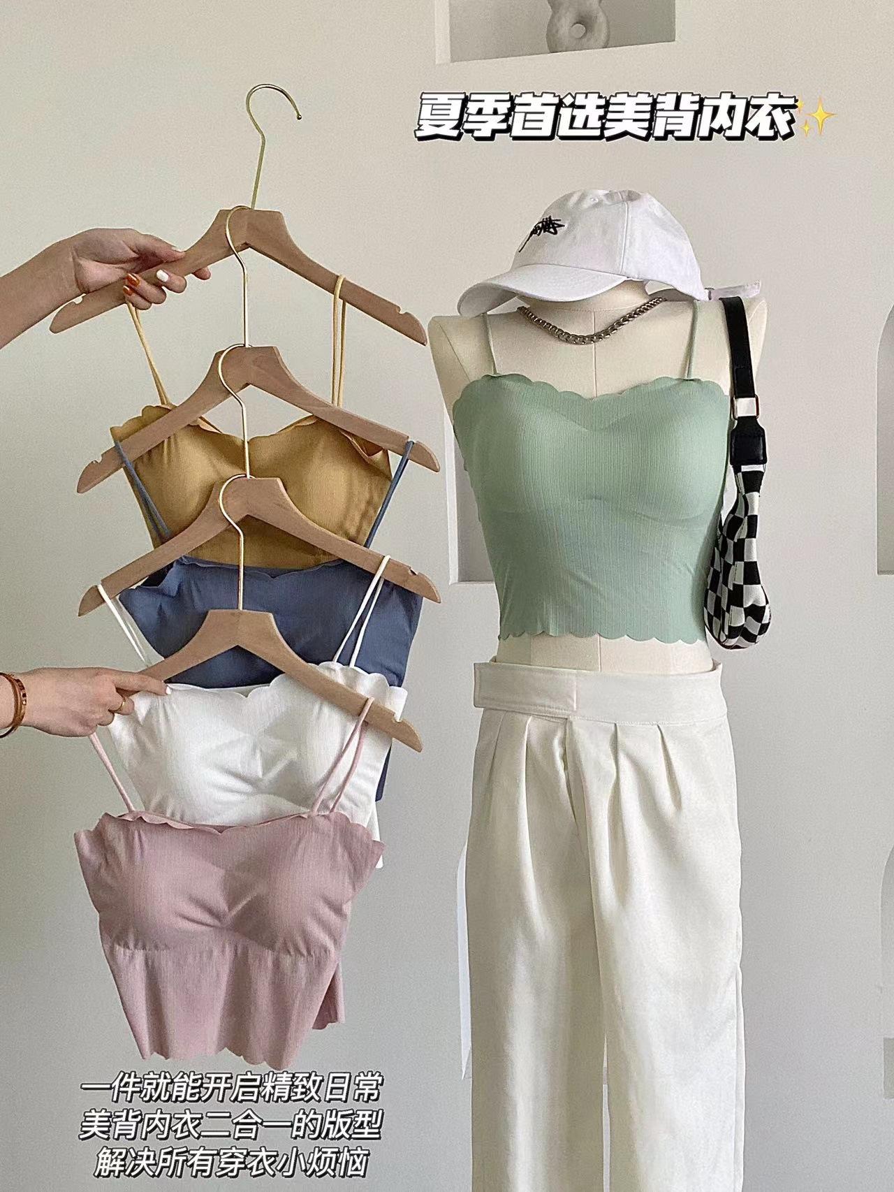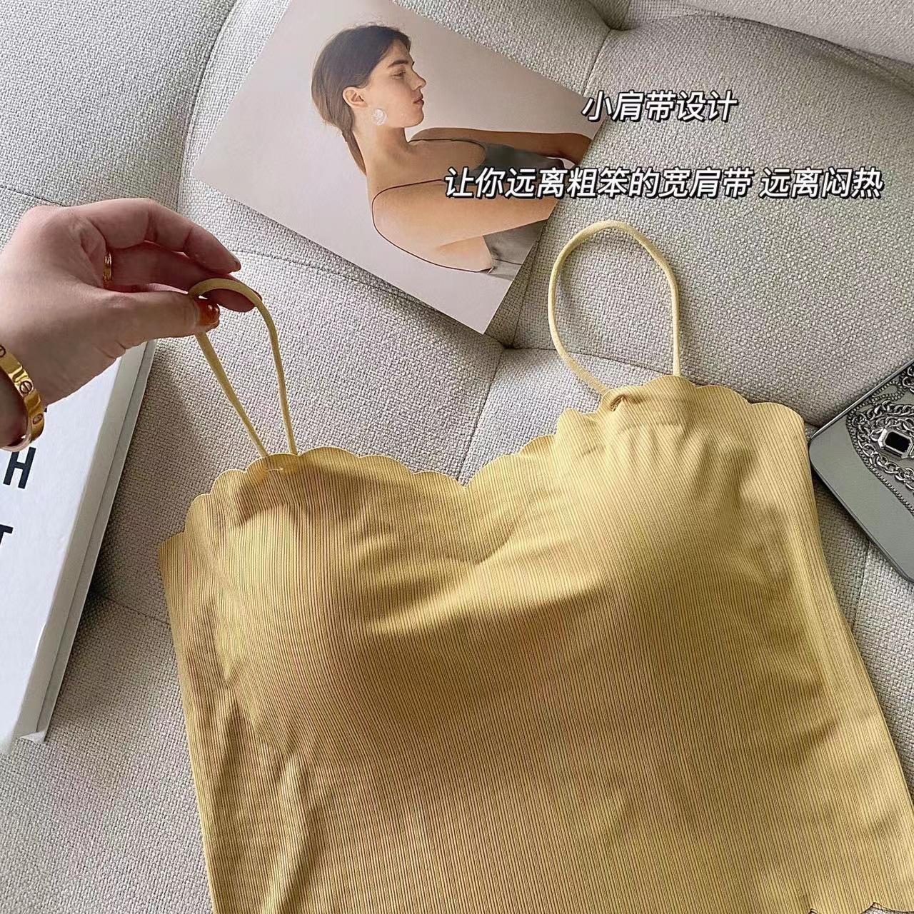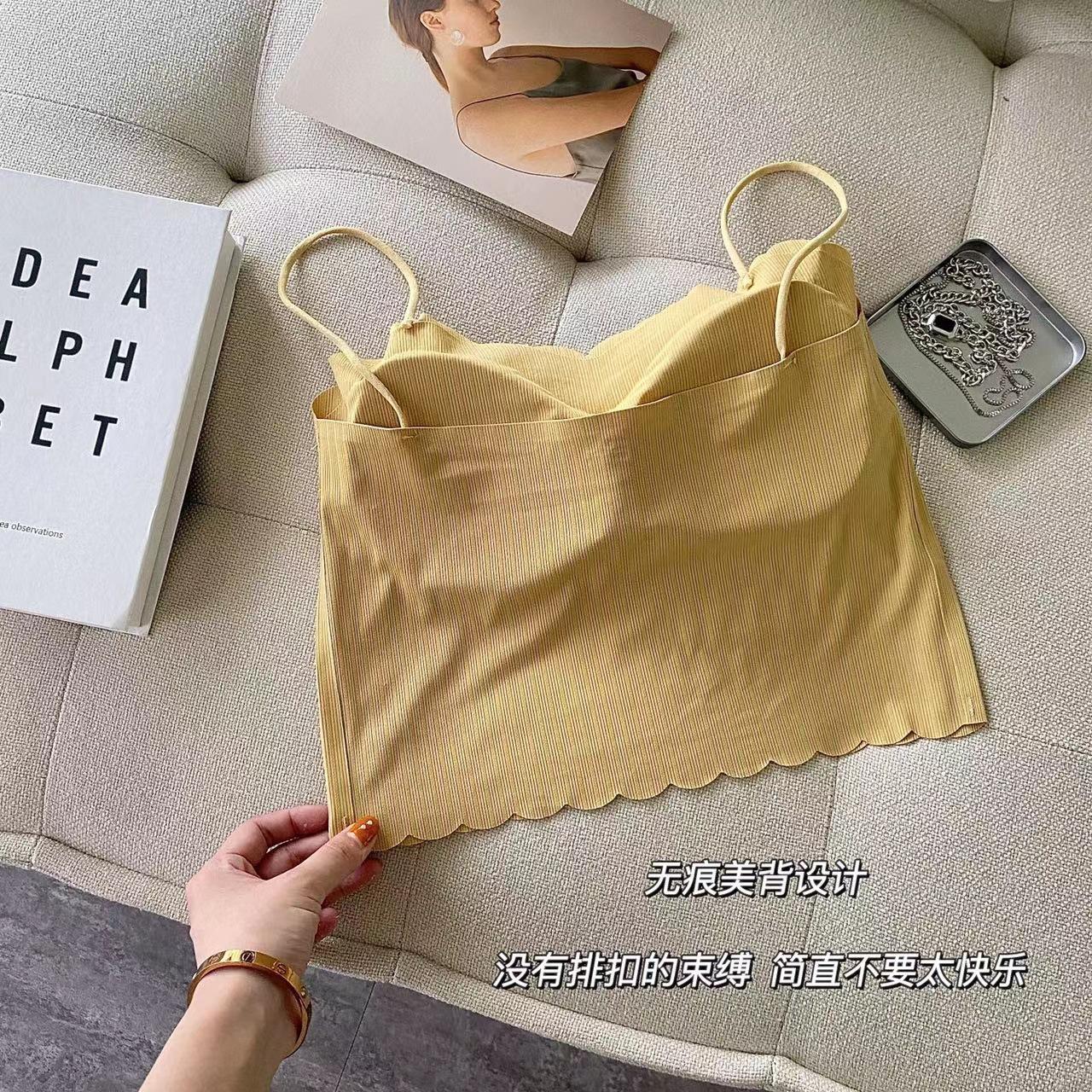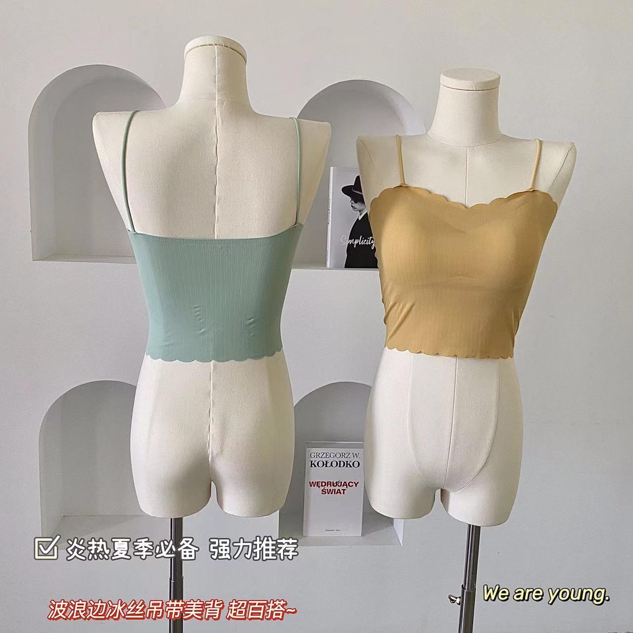 Camisola de seda de hielo sin marcas para mujer, con espalda hermosa, tirantes finos, transpirable, ligera y antideslizamiento, con almohadilla para el pecho.